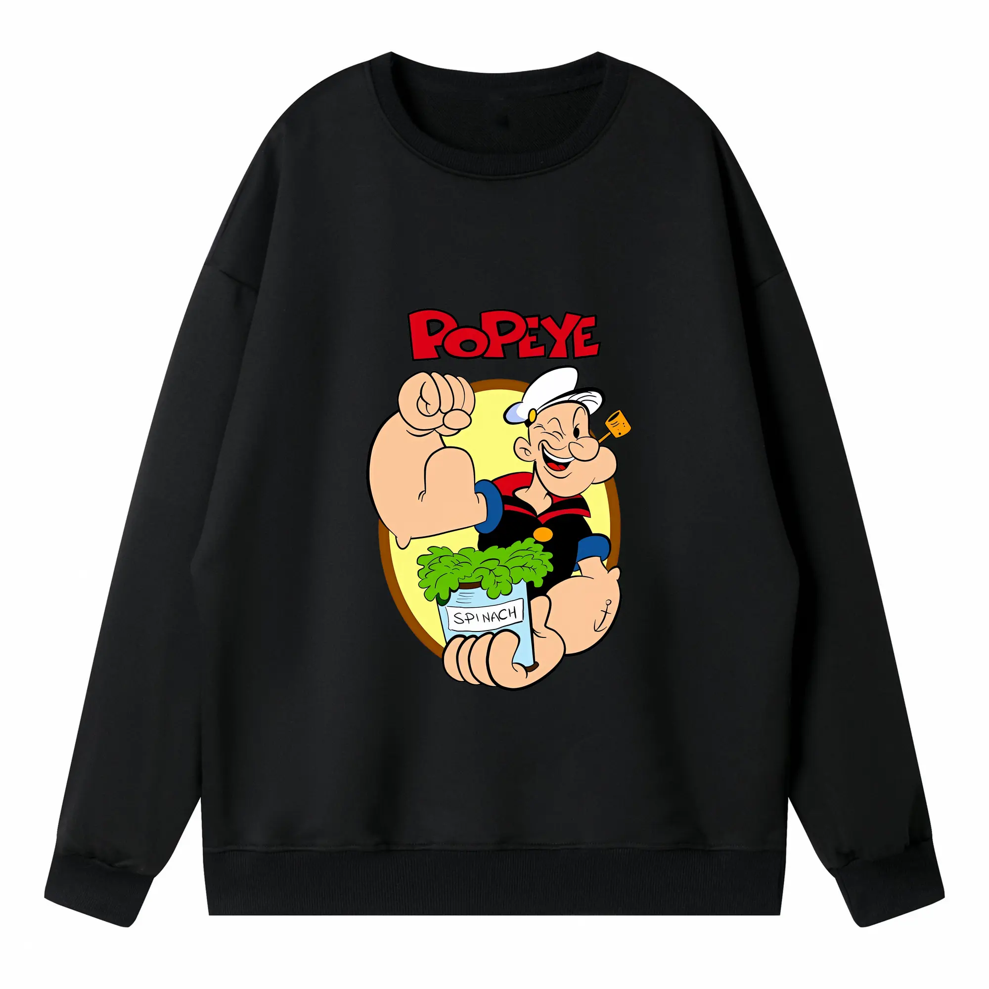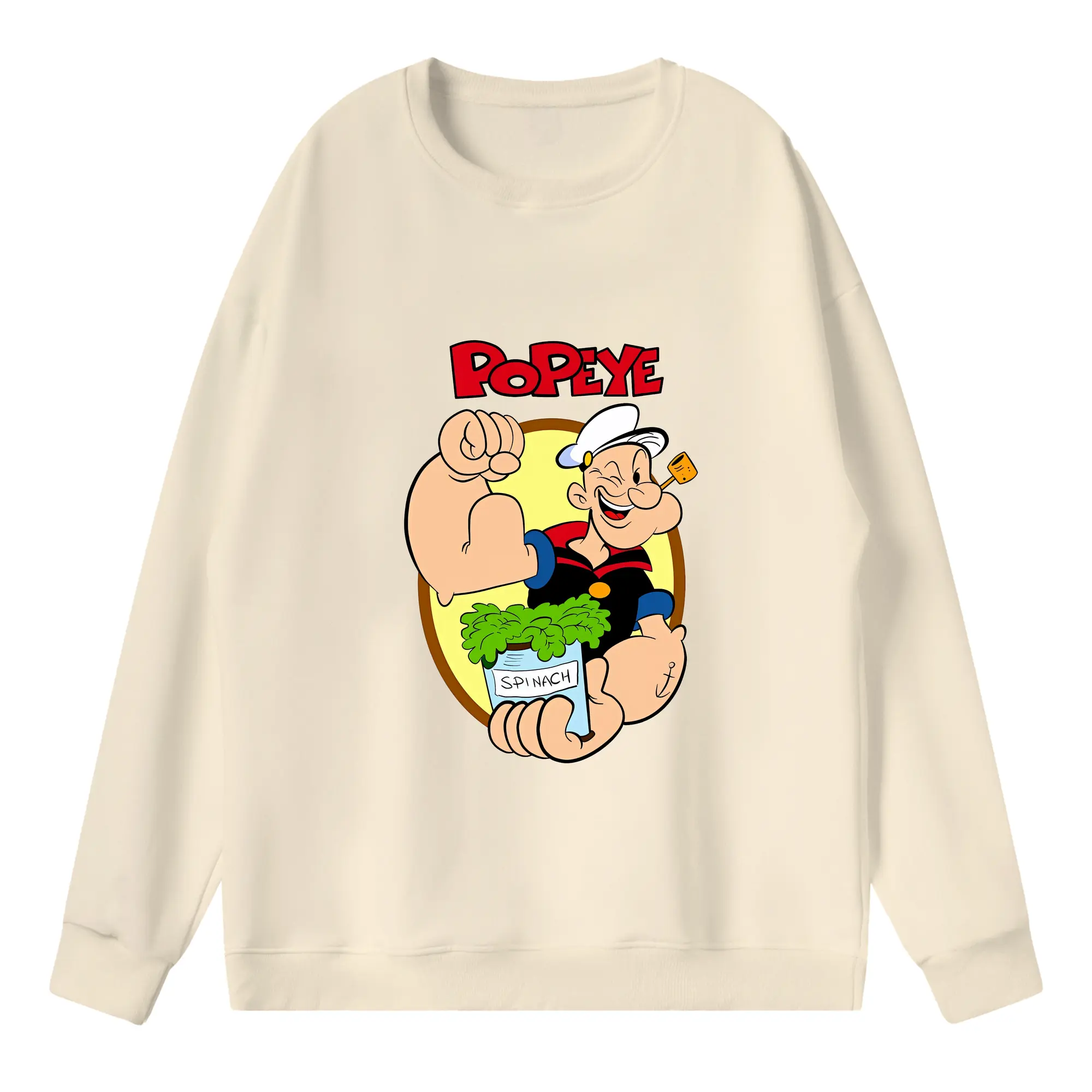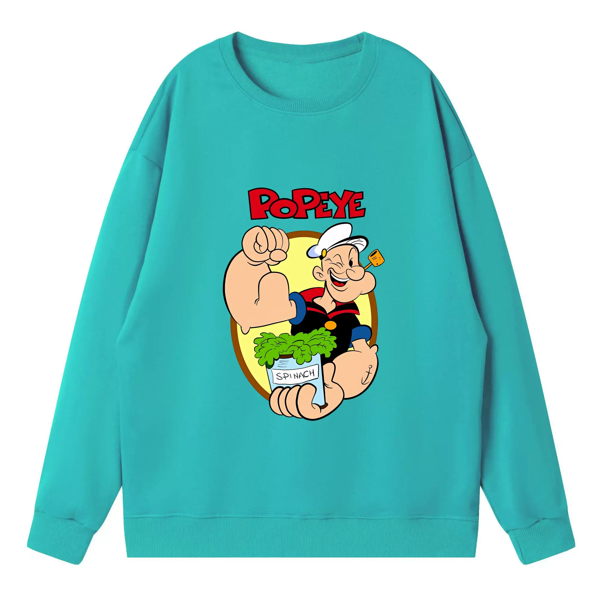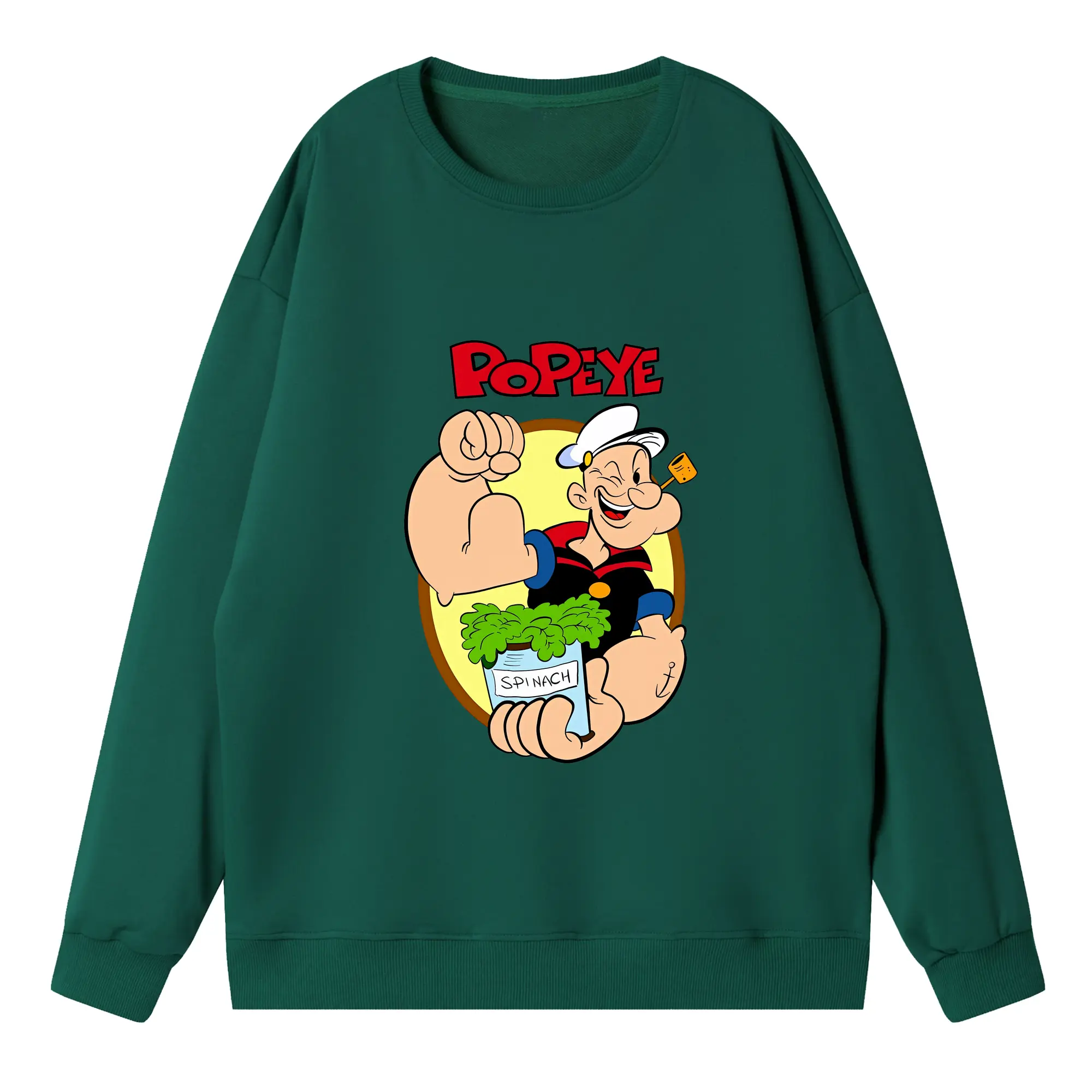 ポパイ グッズ ポパイ - 高品質 クルーネック スウェット ・ コットン59% ポリエステル41% ・ ユニセックス 長袖 トレーナー ・ カジュアル デイリー スポーツ 散歩用