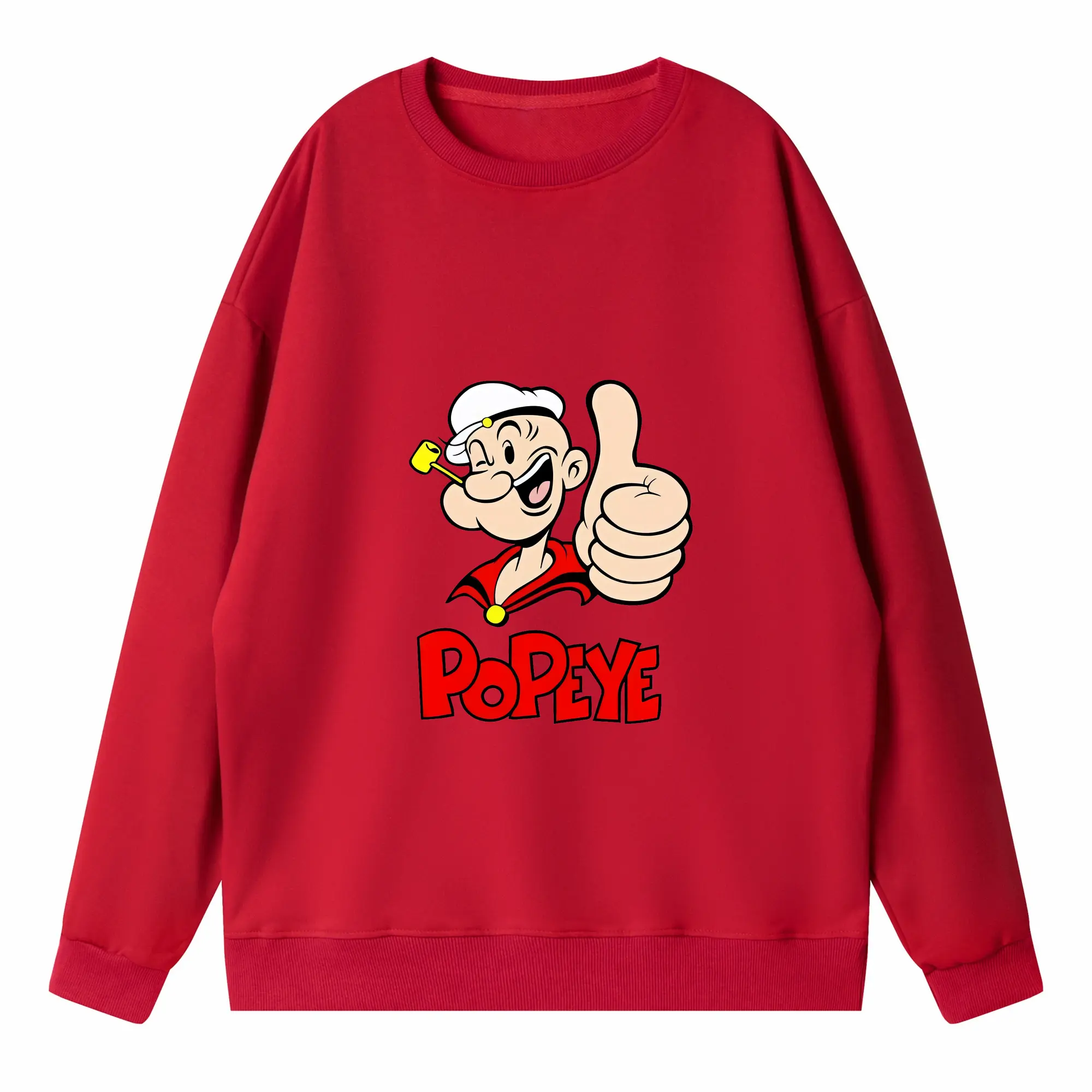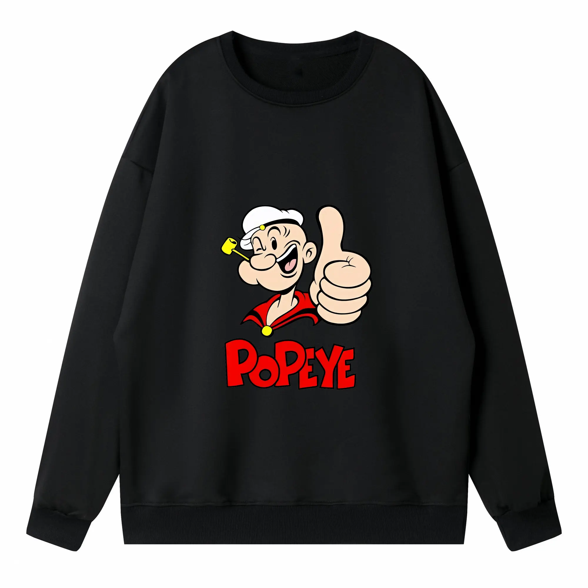 ポパイ グッズ ポパイ - 高品質 クルーネック スウェット ・ コットン59% ポリエステル41% ・ ユニセックス 長袖 トレーナー ・ カジュアル デイリー スポーツ 散歩用