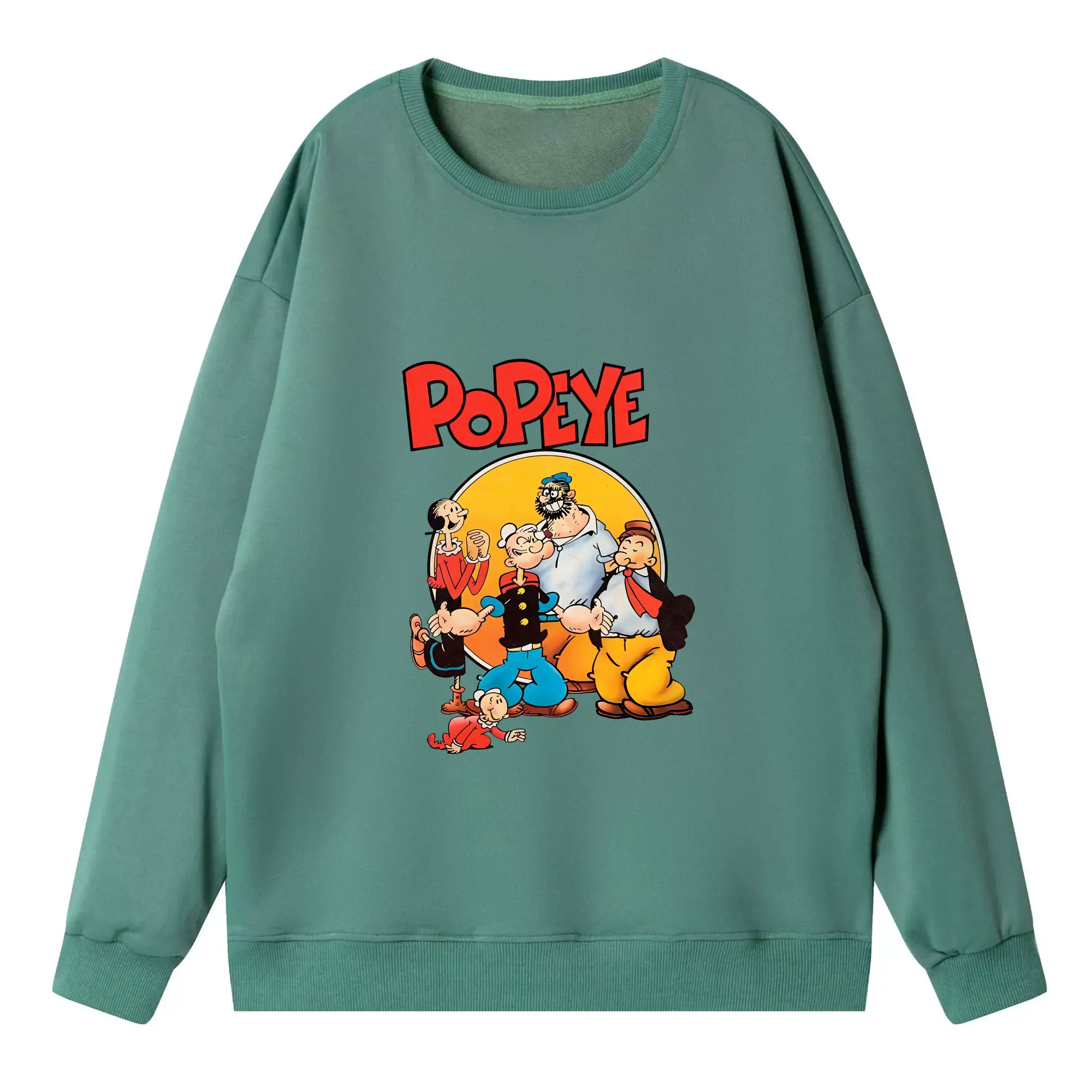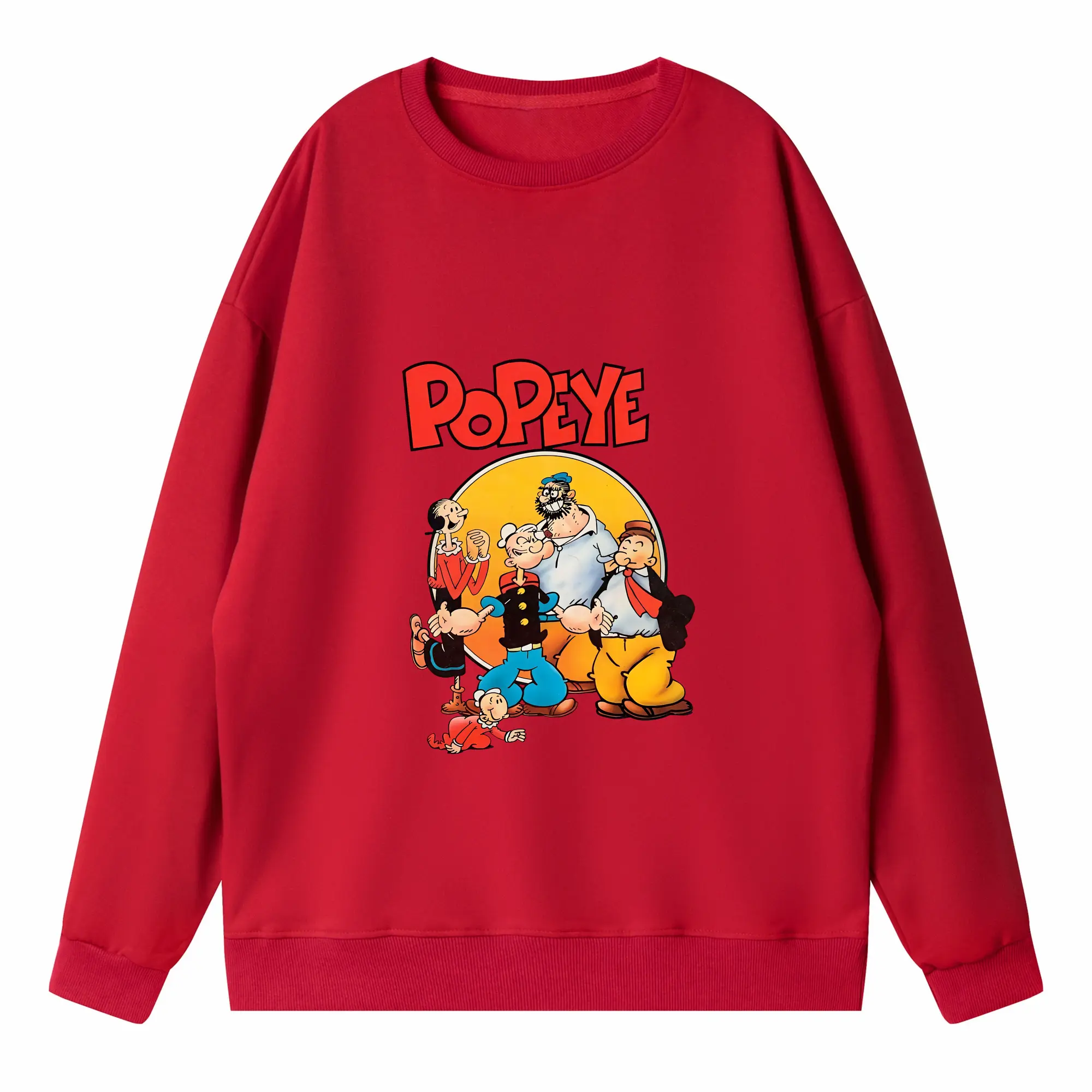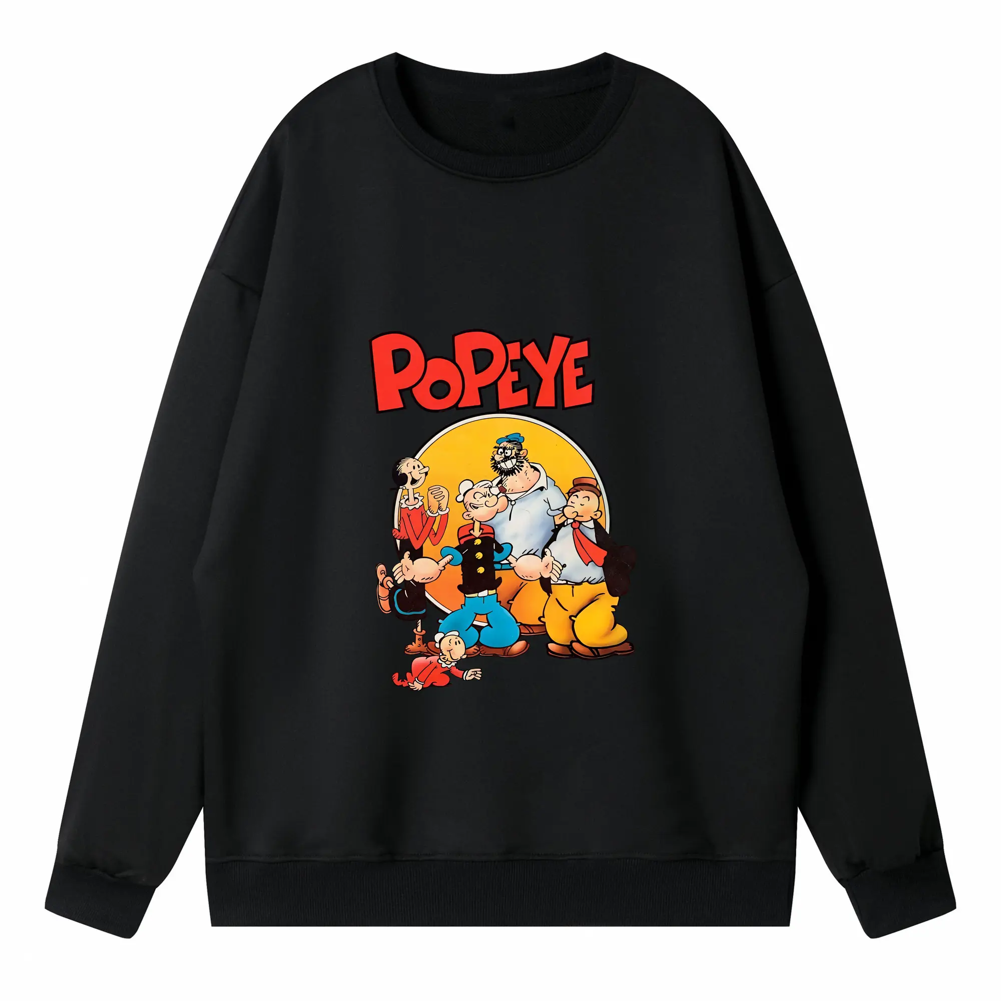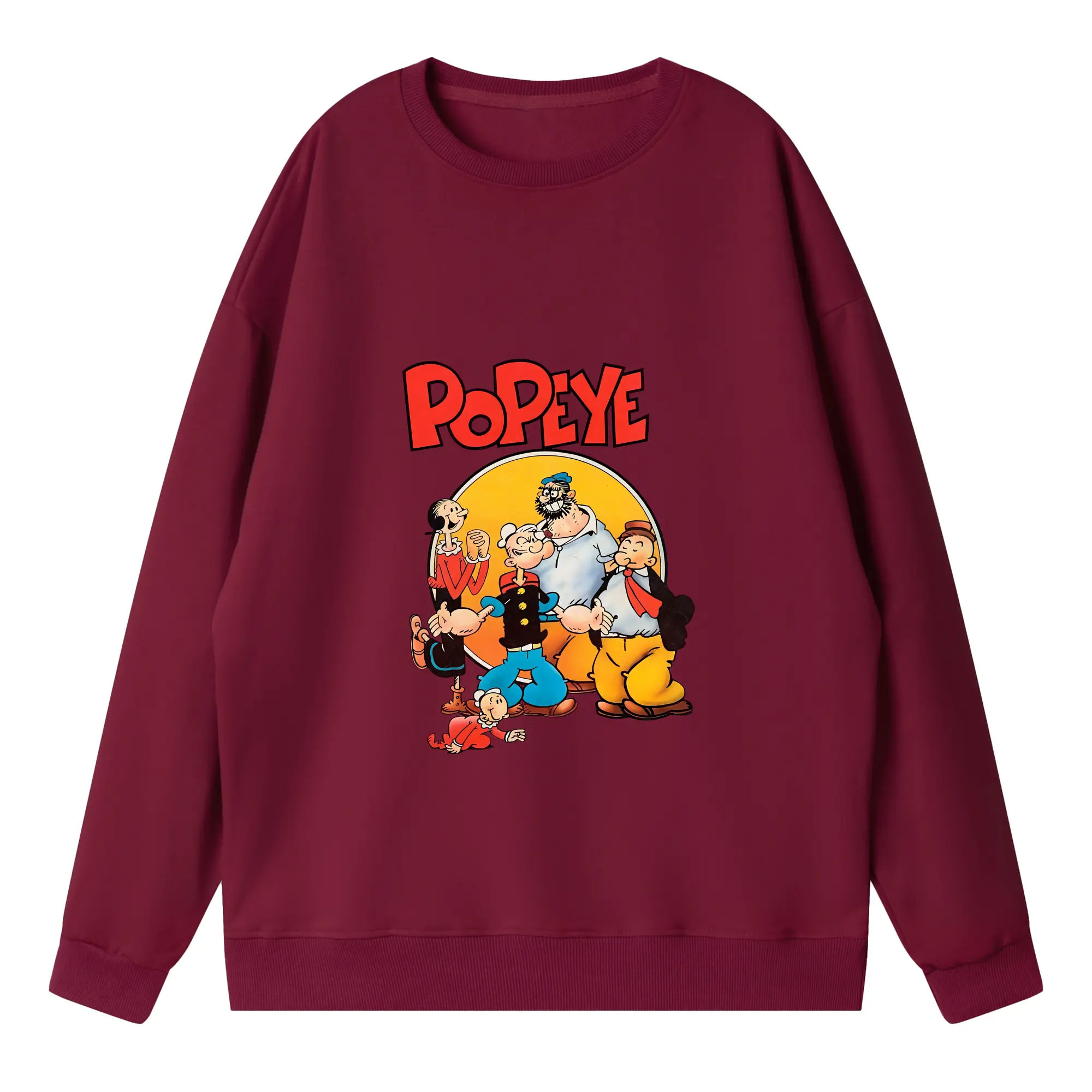 ポパイ グッズ ポパイ - 高品質 クルーネック スウェット ・ コットン59% ポリエステル41% ・ ユニセックス 長袖 トレーナー ・ カジュアル デイリー スポーツ 散歩用
