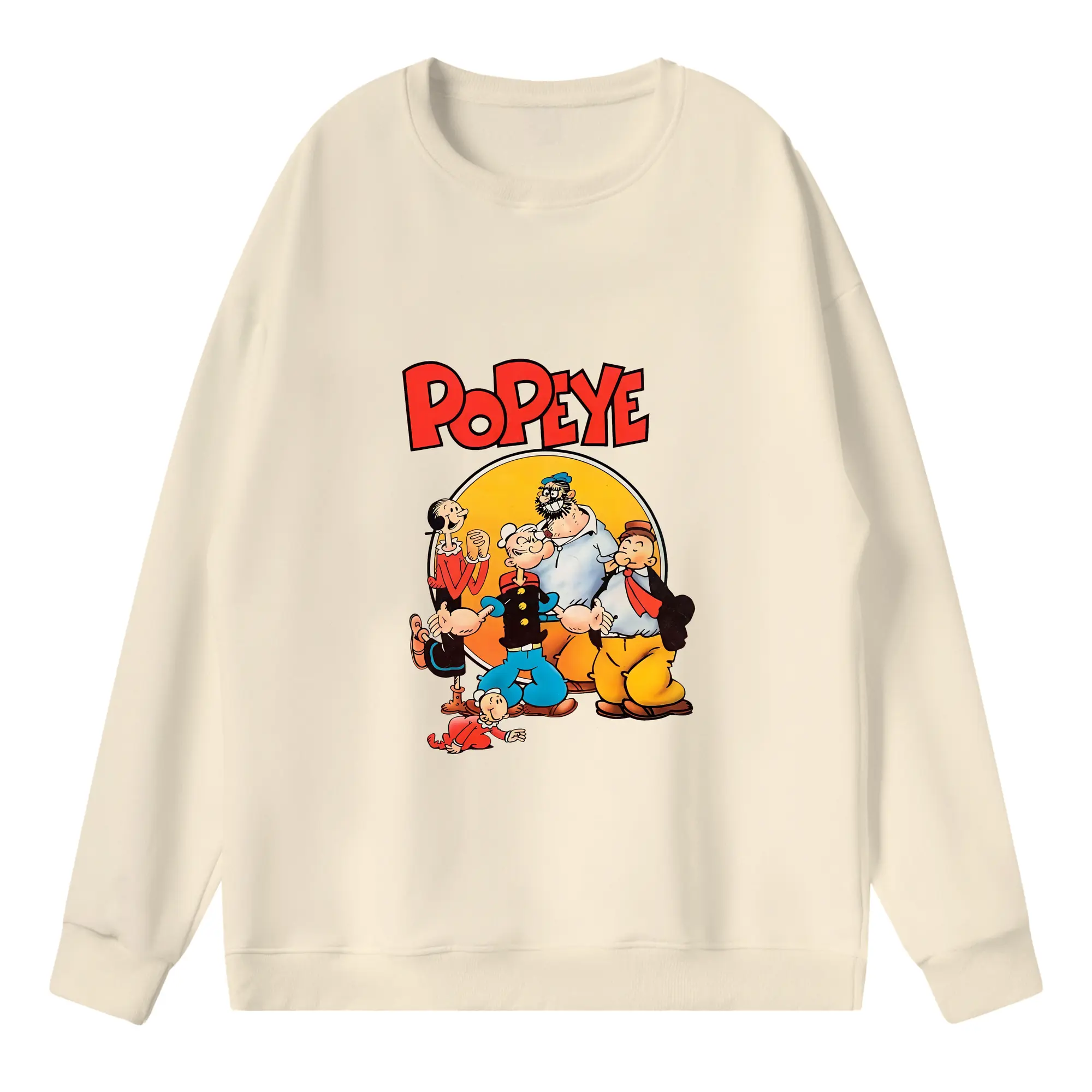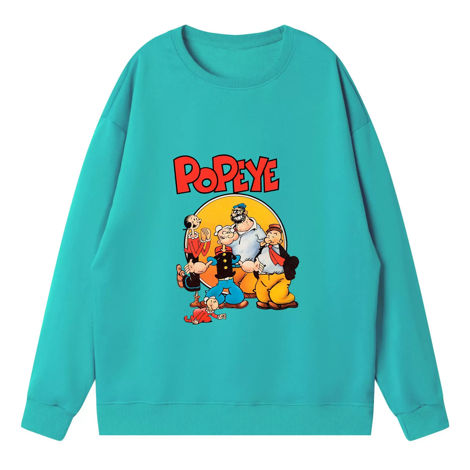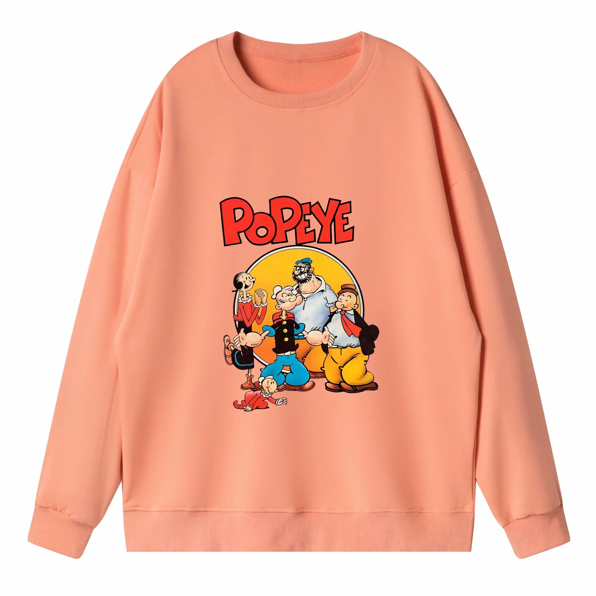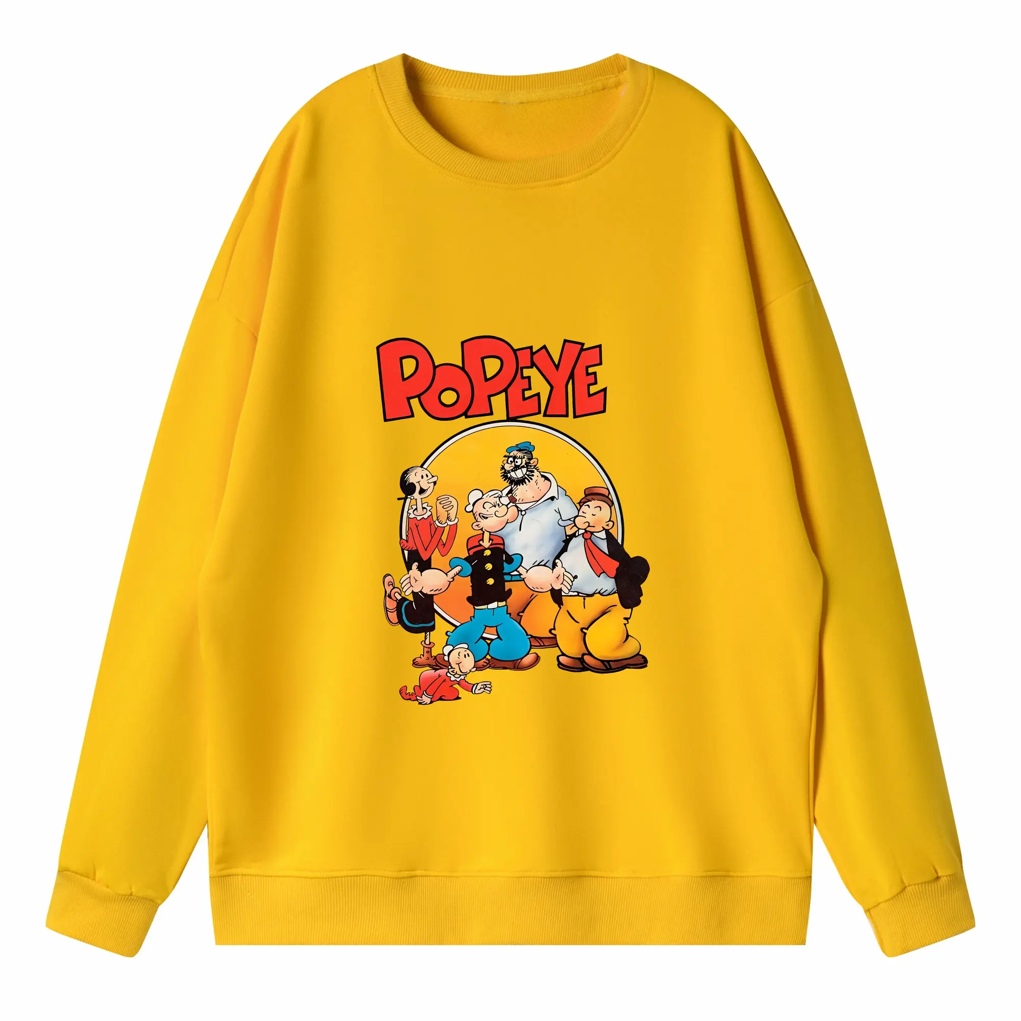 ポパイ グッズ ポパイ - 高品質 クルーネック スウェット ・ コットン59% ポリエステル41% ・ ユニセックス 長袖 トレーナー ・ カジュアル デイリー スポーツ 散歩用