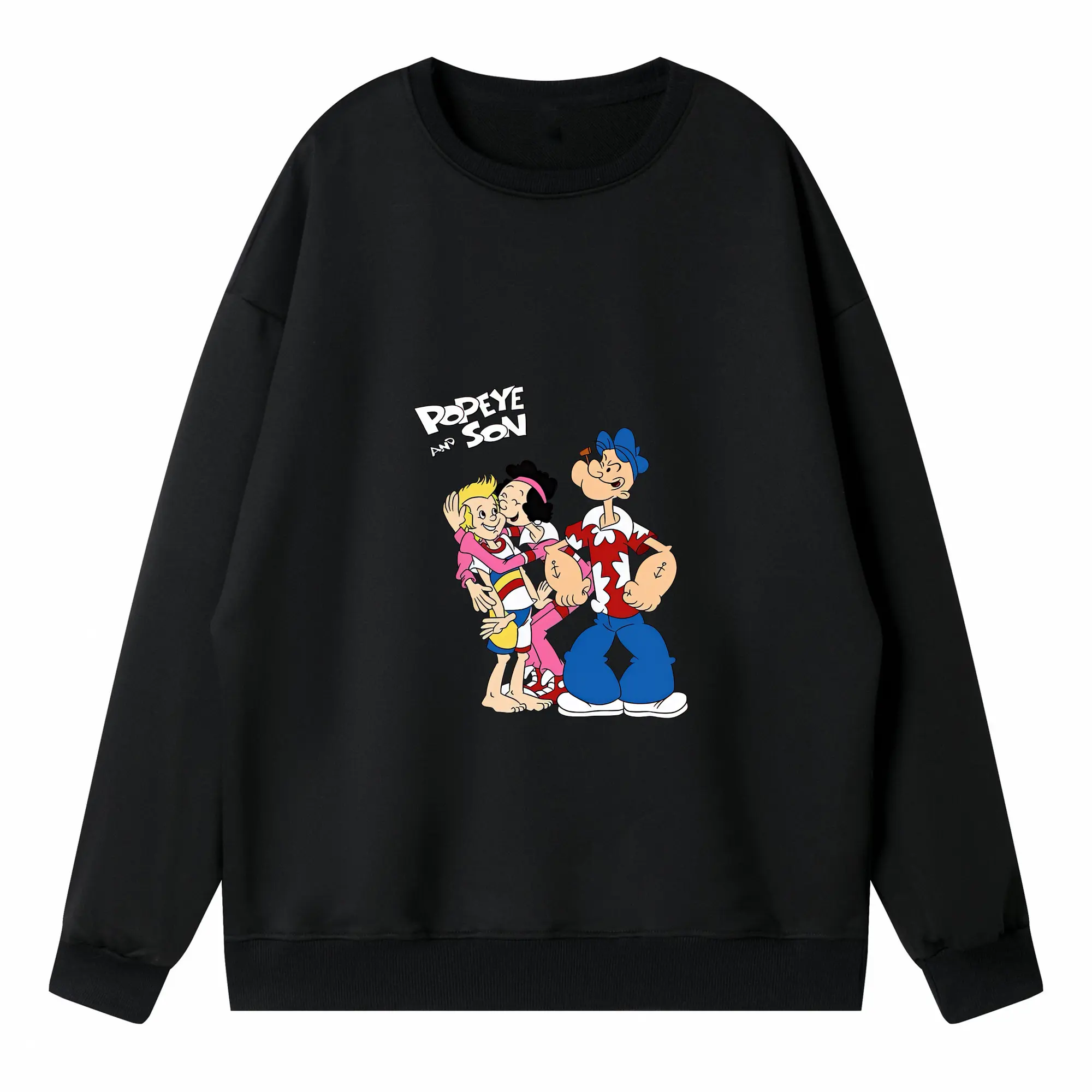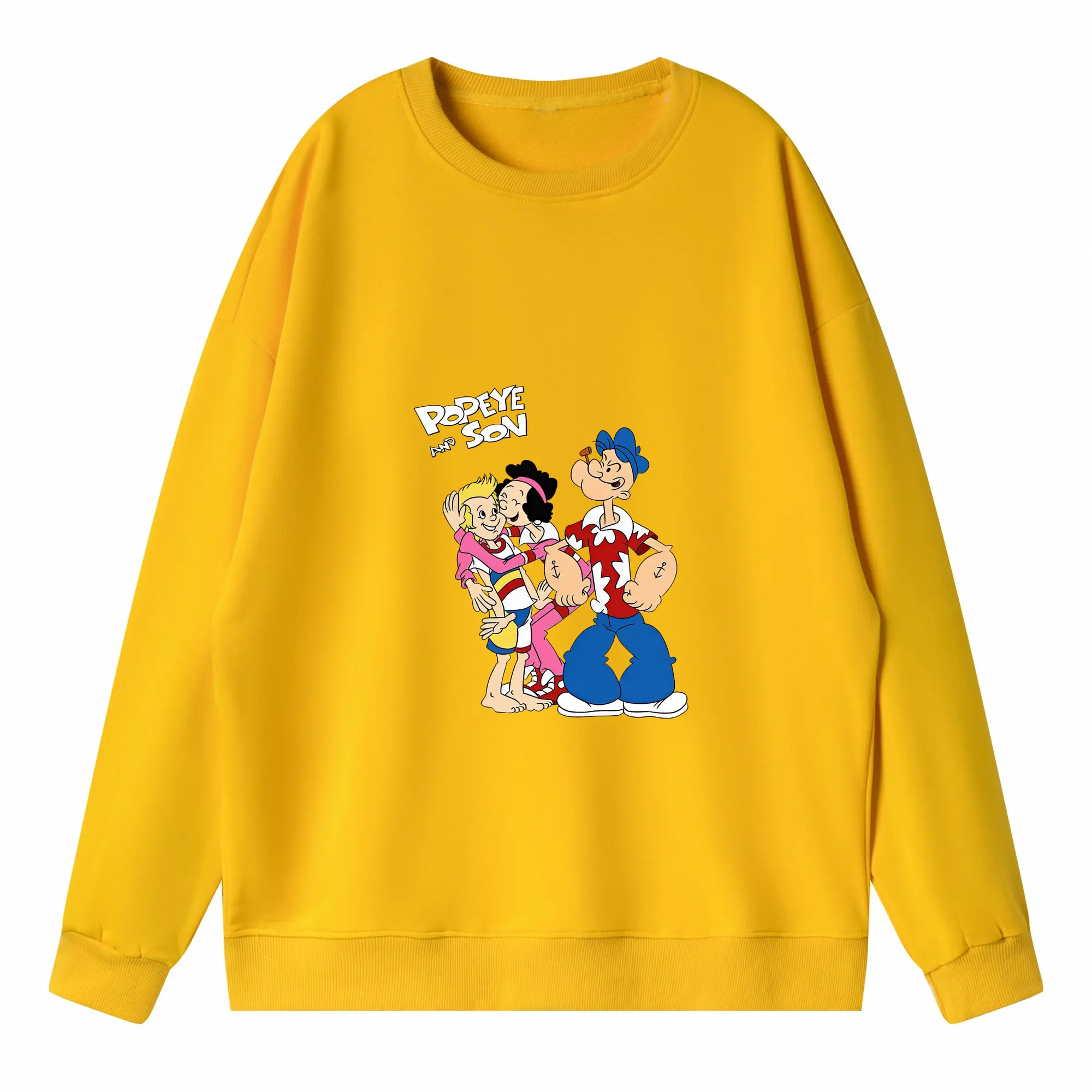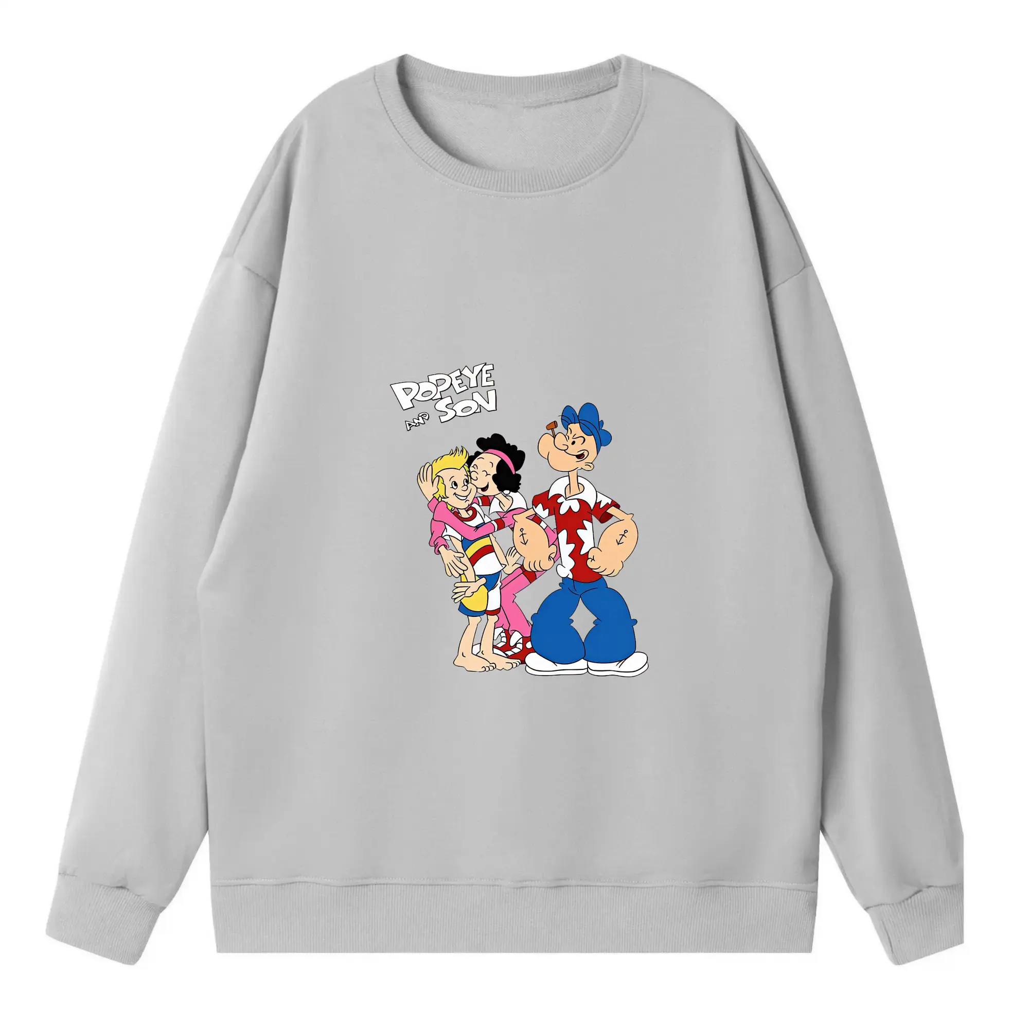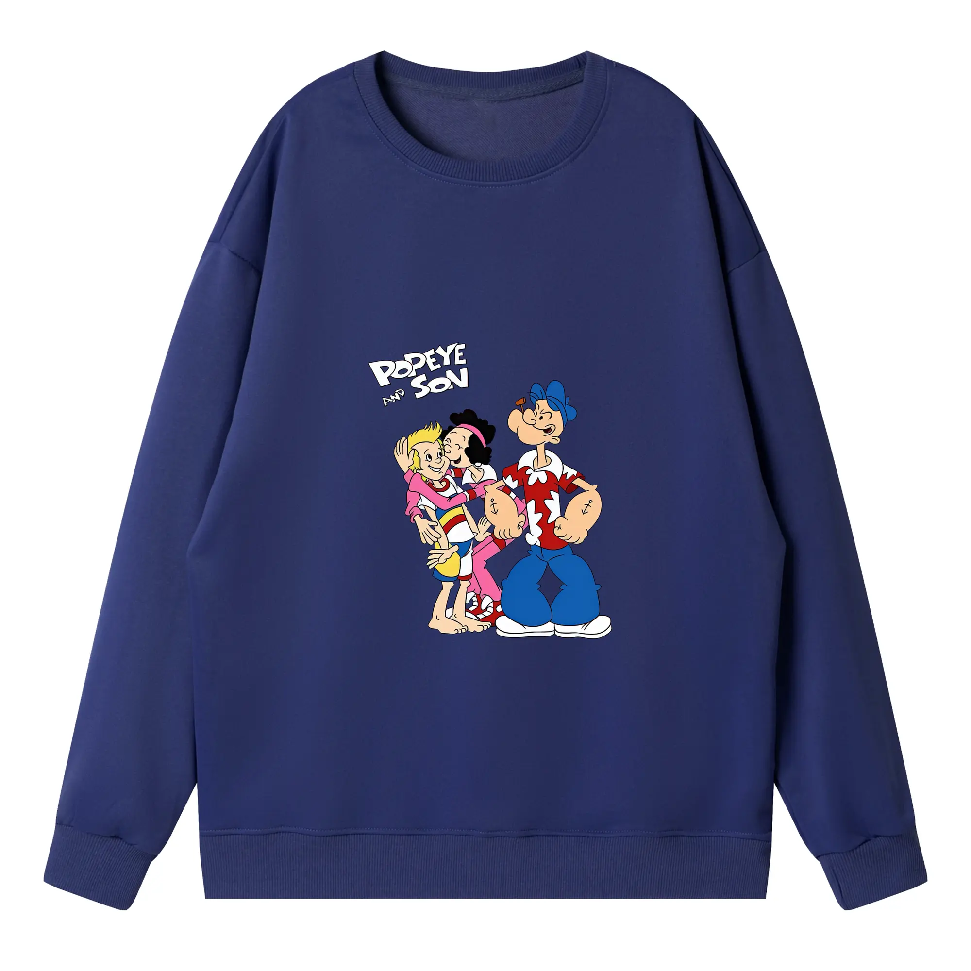 ポパイ グッズ ポパイ - 高品質 クルーネック スウェット ・ コットン59% ポリエステル41% ・ ユニセックス 長袖 トレーナー ・ カジュアル デイリー スポーツ 散歩用
