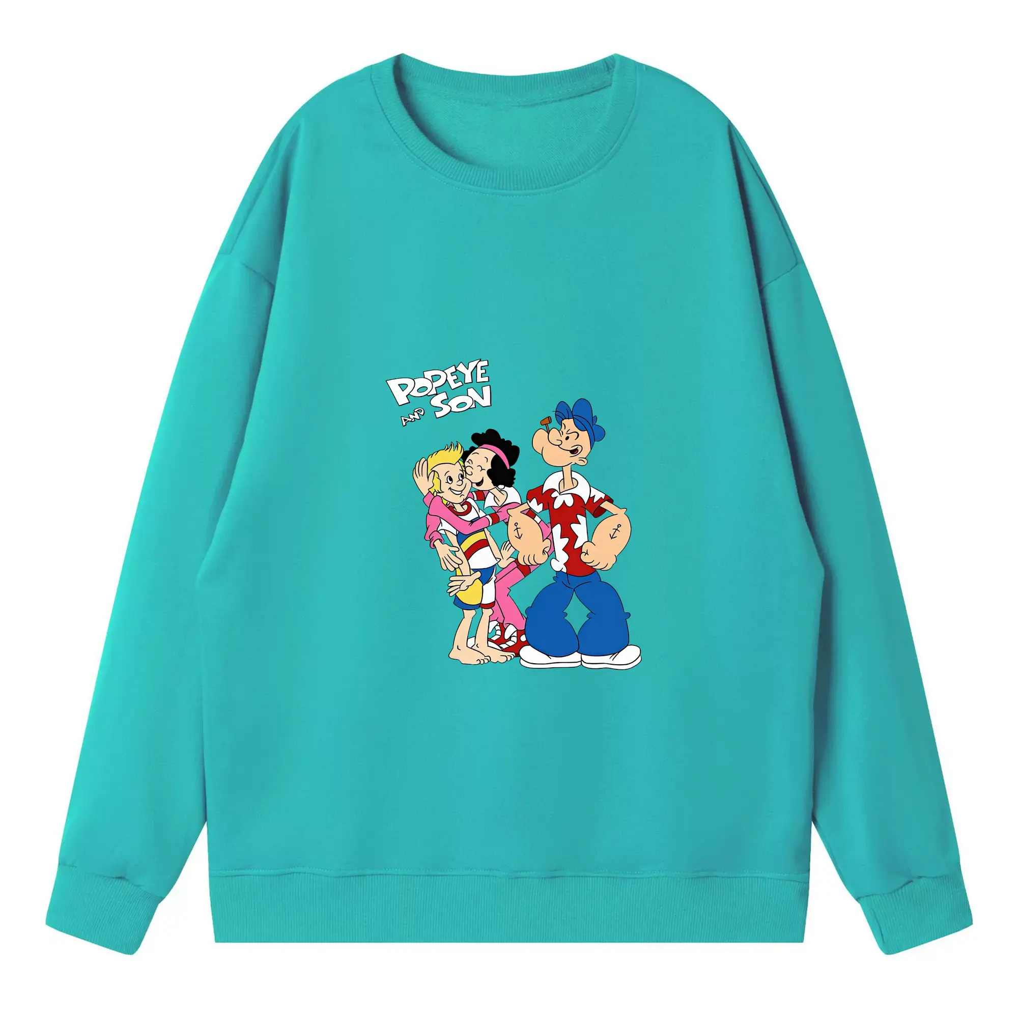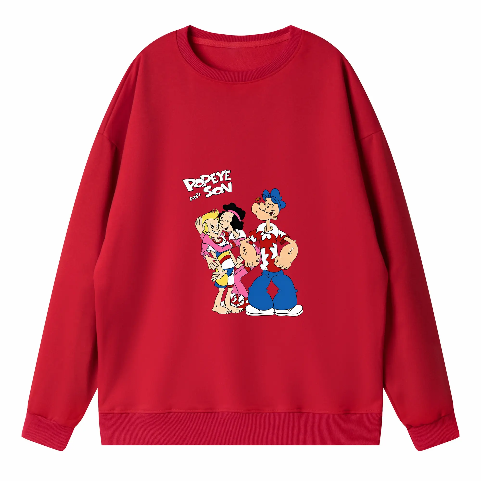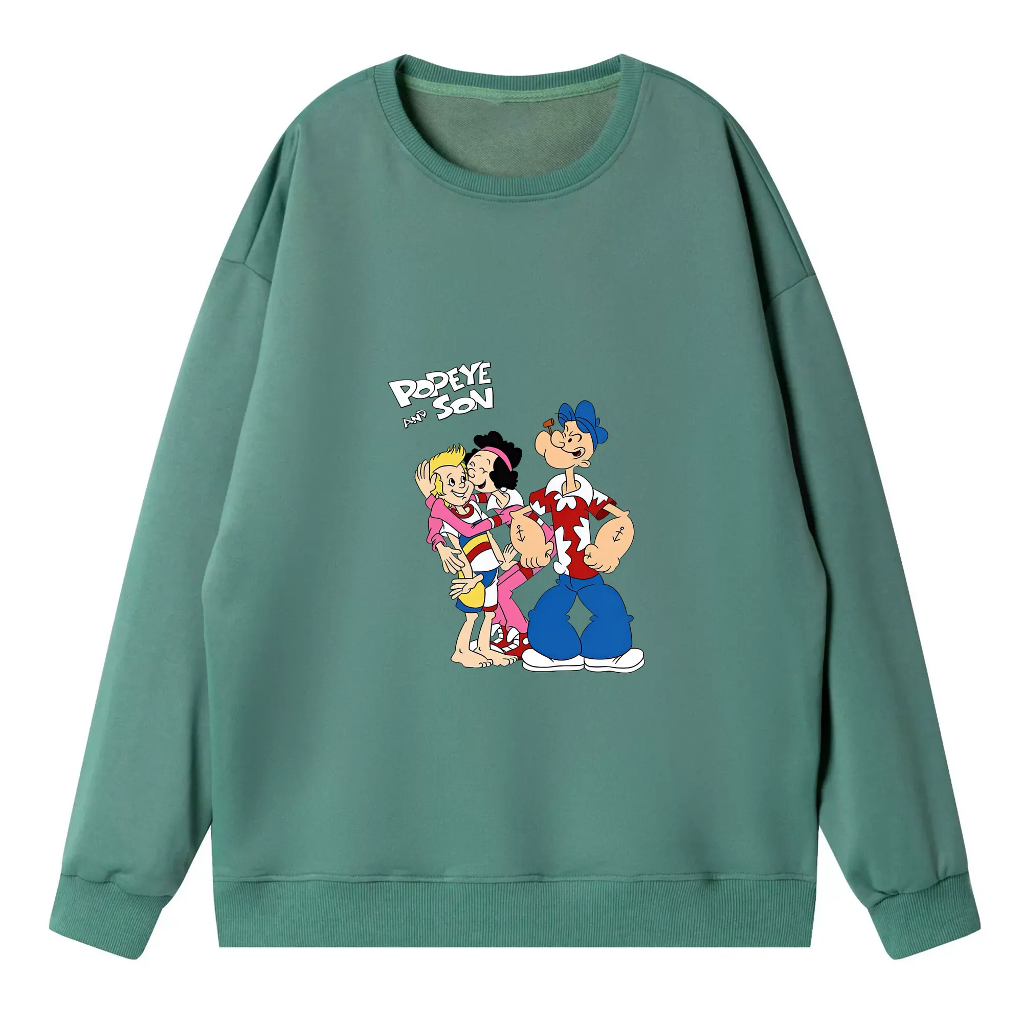 ポパイ グッズ ポパイ - 高品質 クルーネック スウェット ・ コットン59% ポリエステル41% ・ ユニセックス 長袖 トレーナー ・ カジュアル デイリー スポーツ 散歩用
