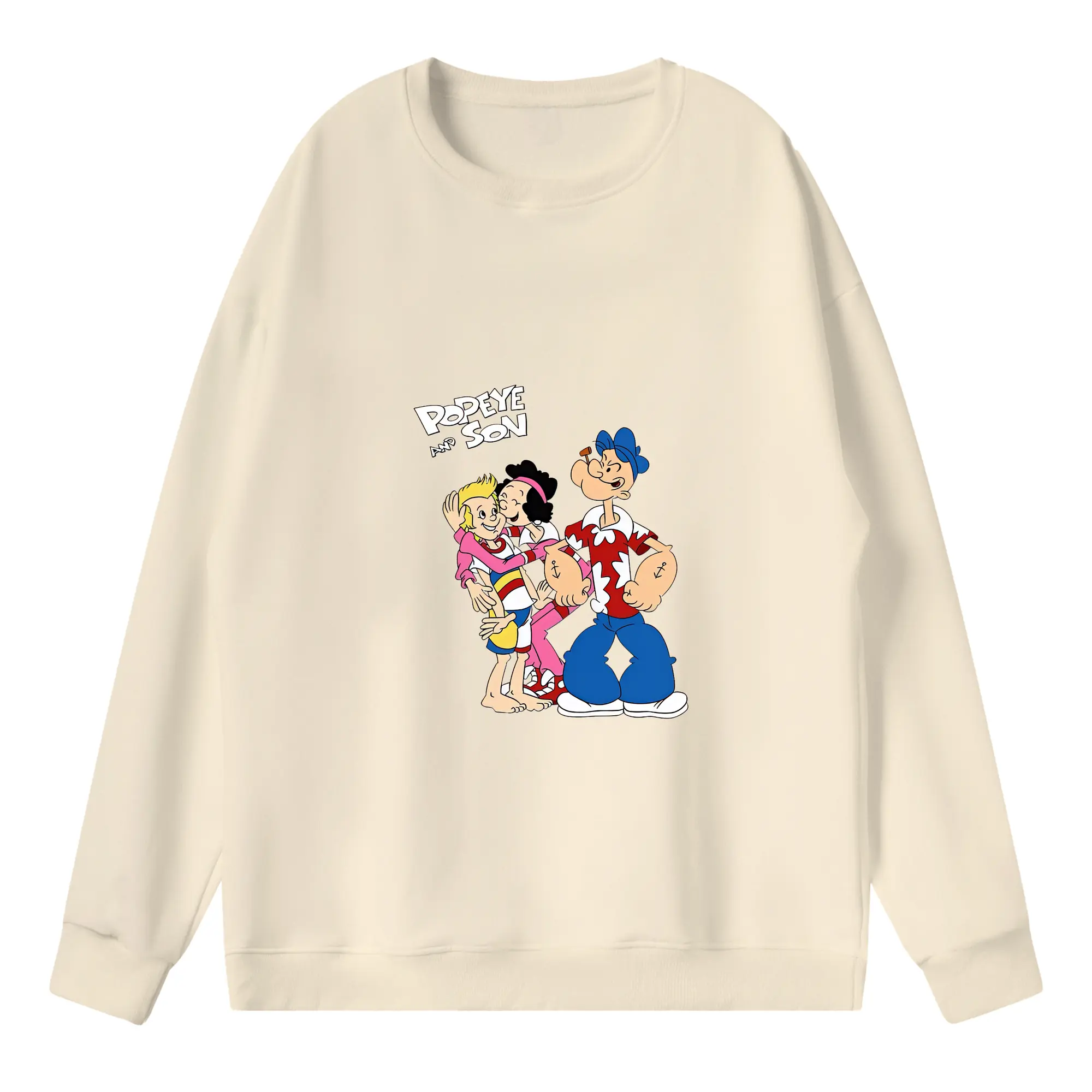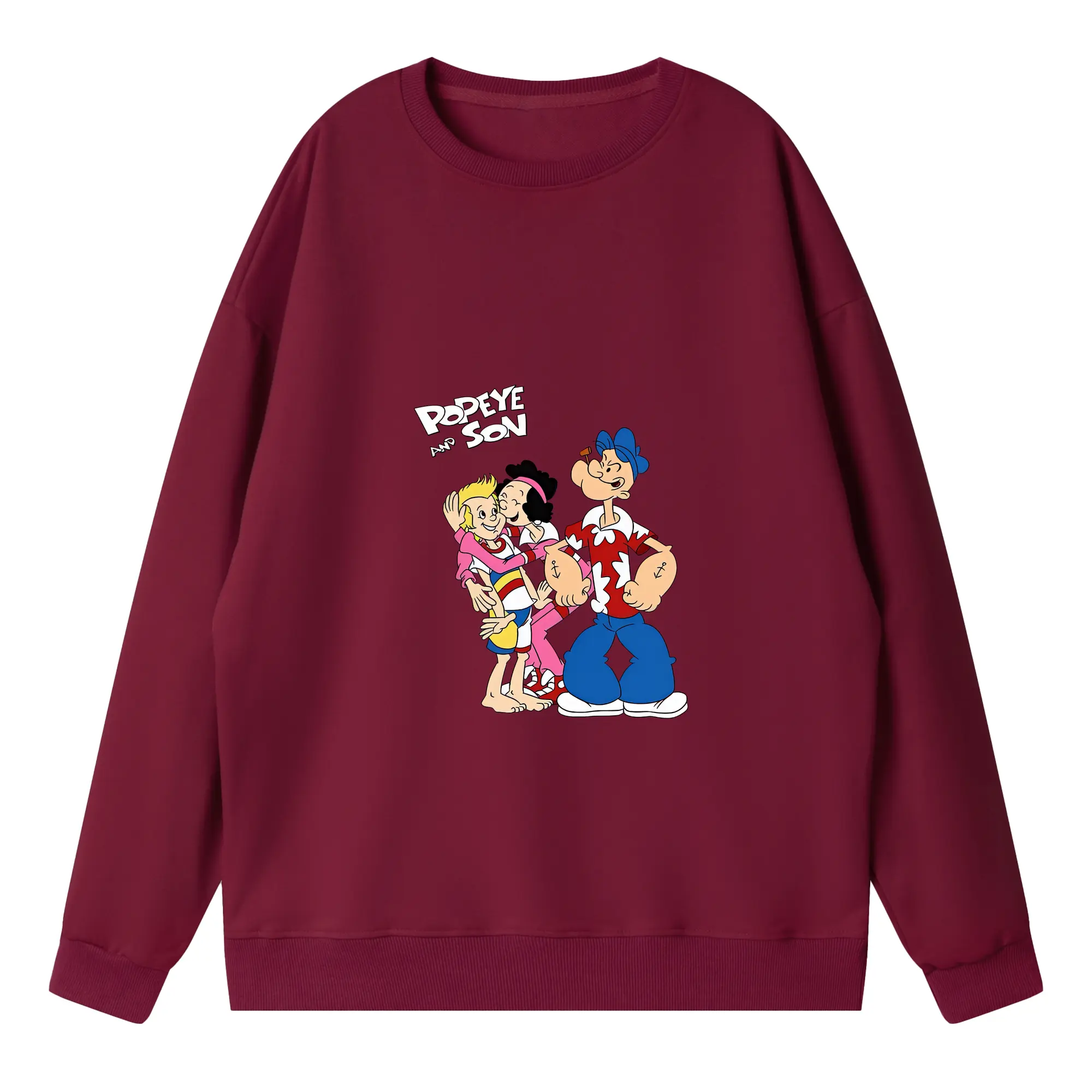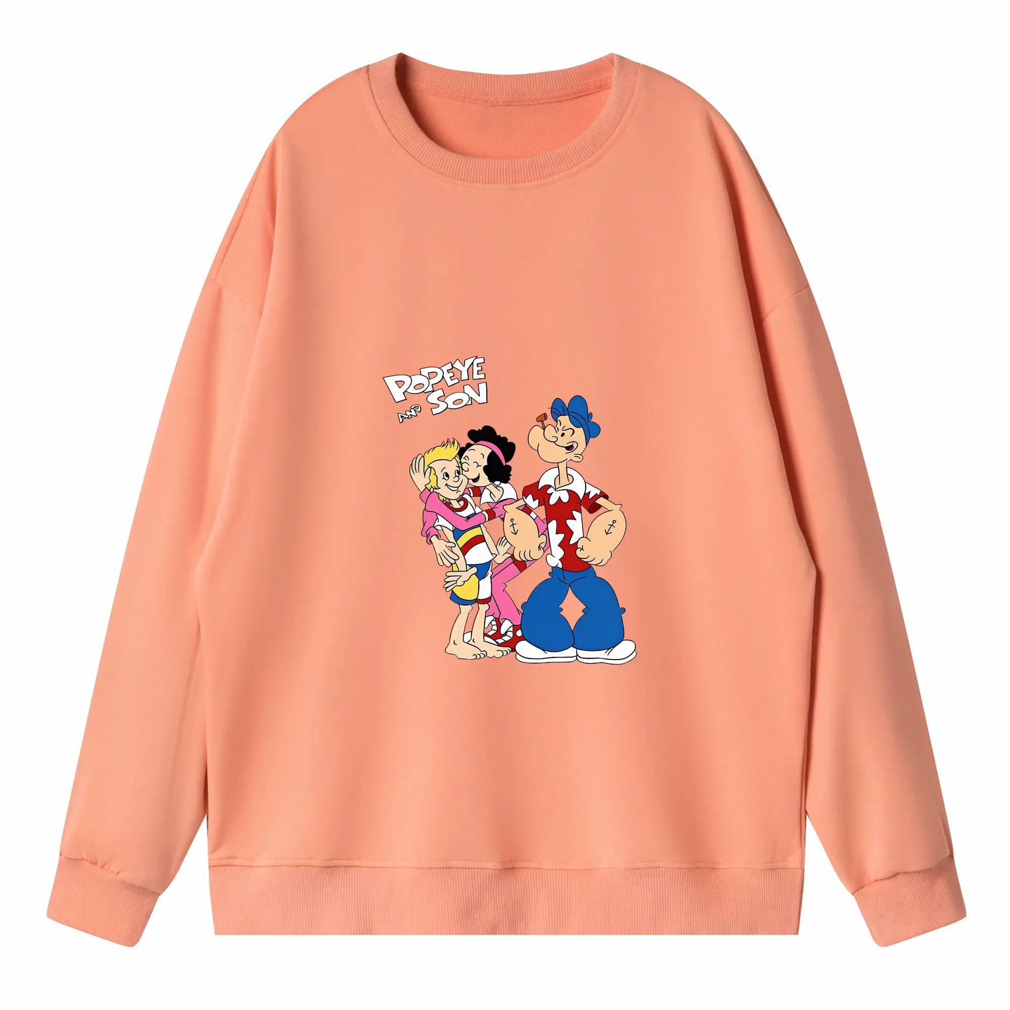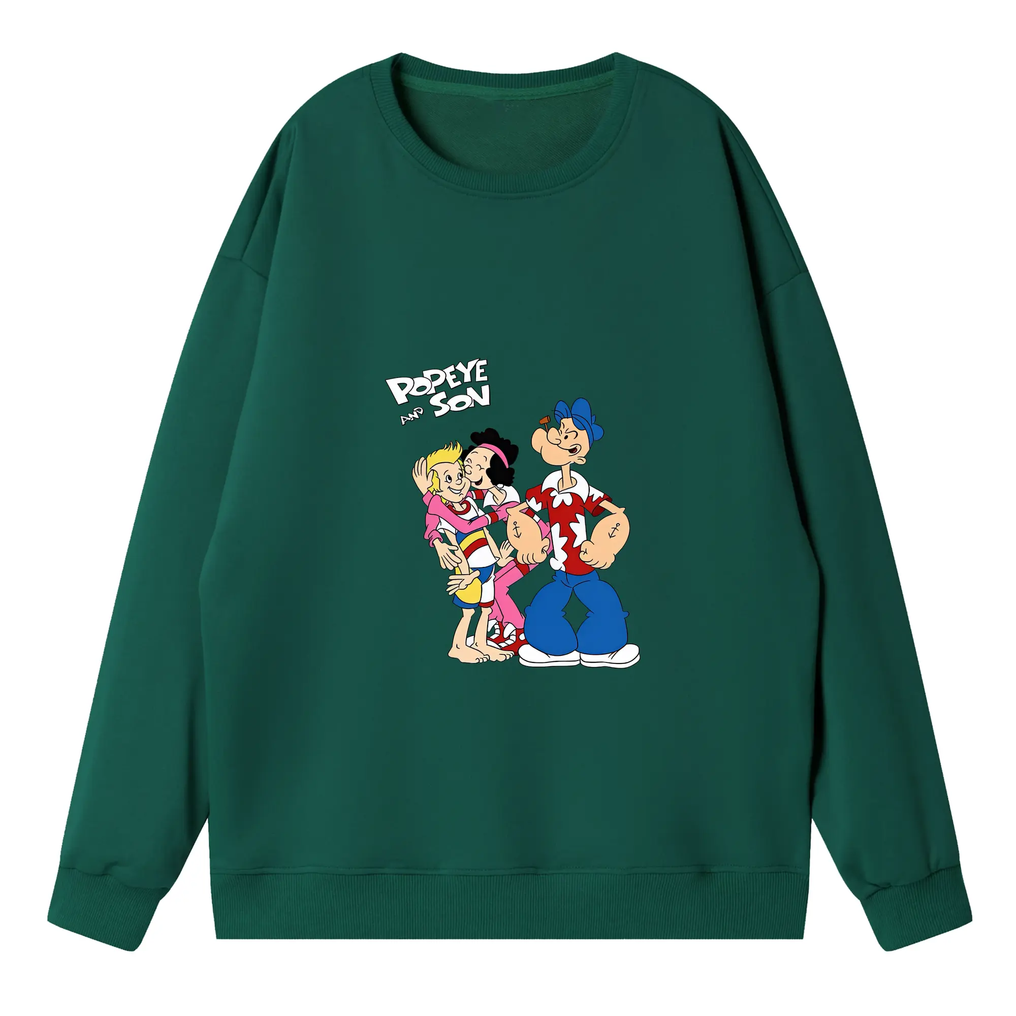 ポパイ グッズ ポパイ - 高品質 クルーネック スウェット ・ コットン59% ポリエステル41% ・ ユニセックス 長袖 トレーナー ・ カジュアル デイリー スポーツ 散歩用