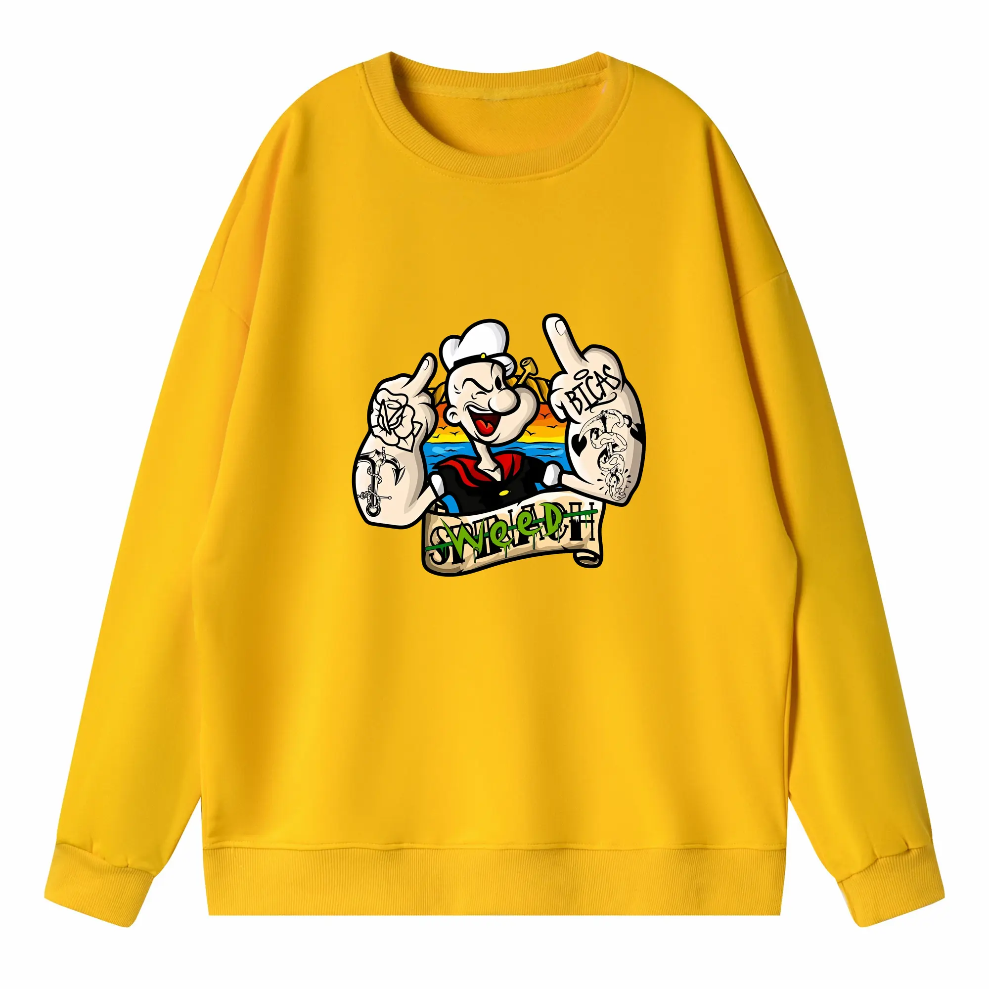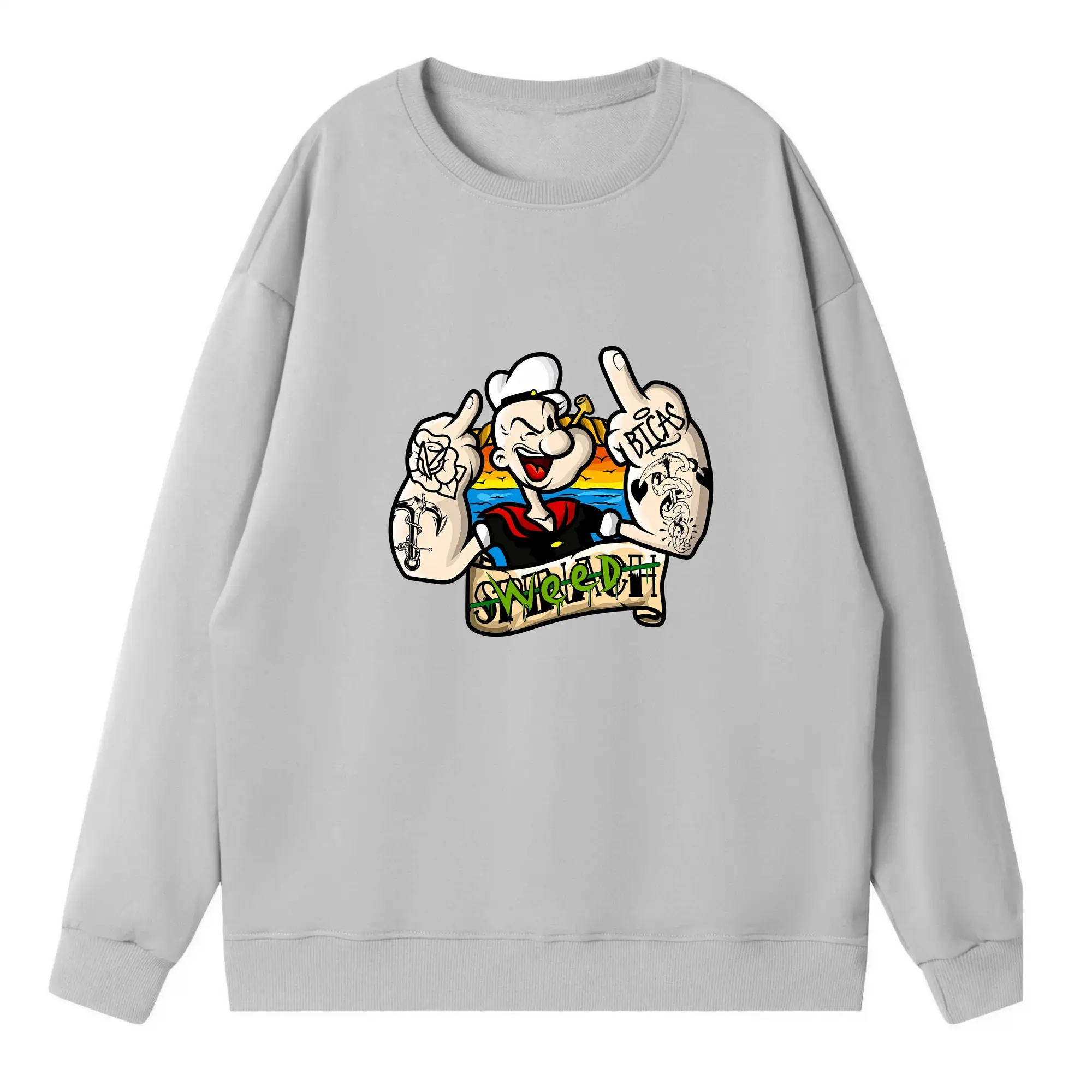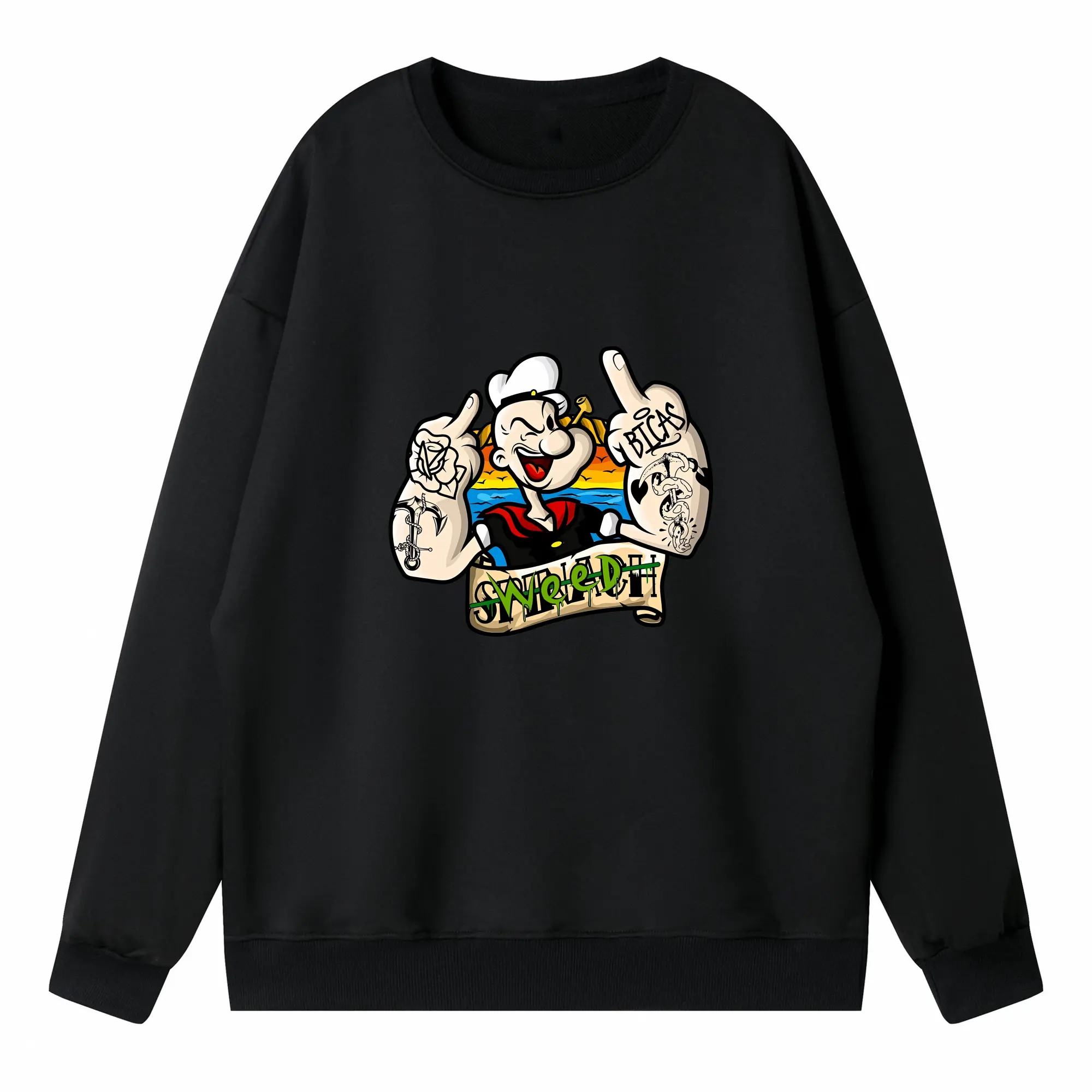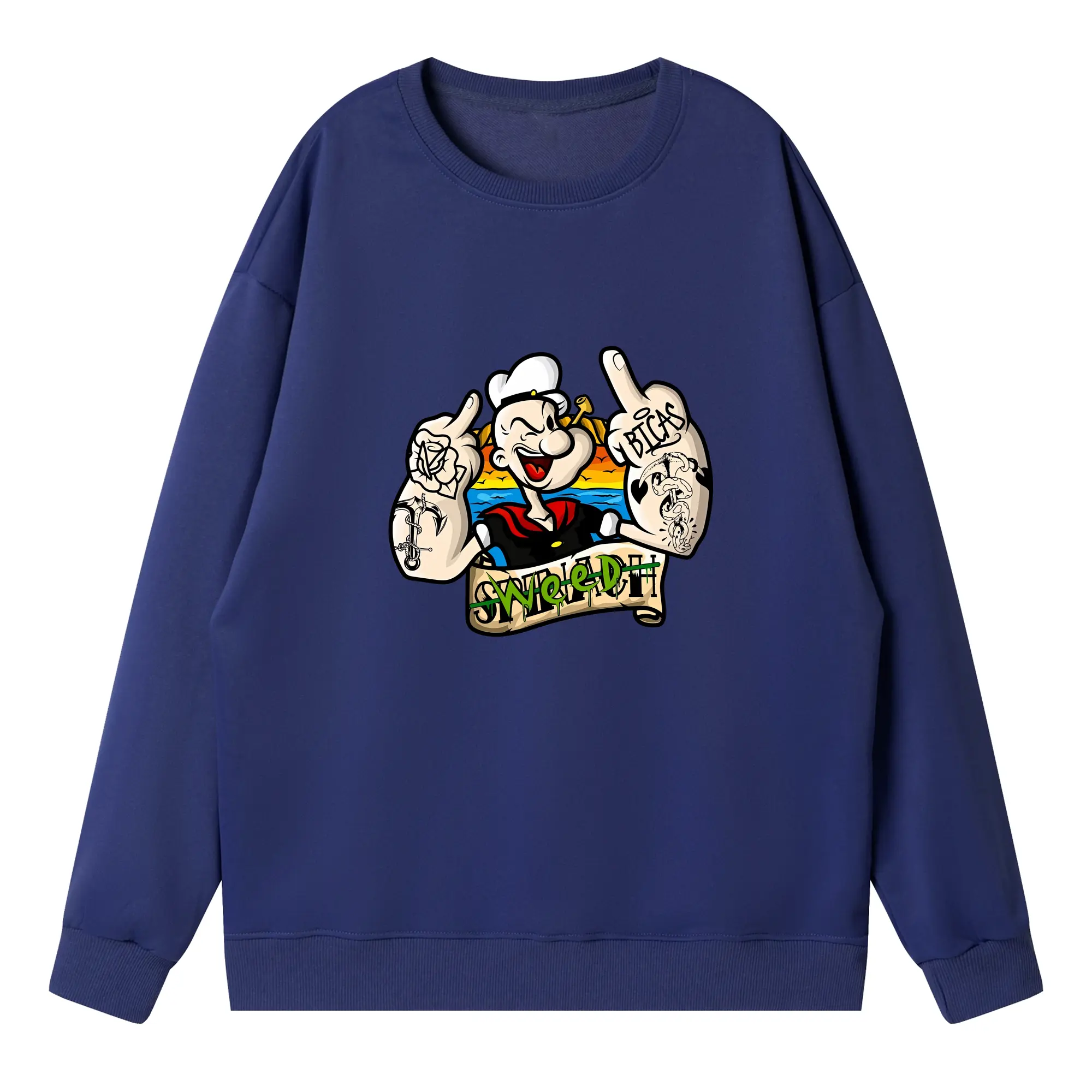 ポパイ グッズ ポパイ - 高品質 クルーネック スウェット ・ コットン59% ポリエステル41% ・ ユニセックス 長袖 トレーナー ・ カジュアル デイリー スポーツ 散歩用