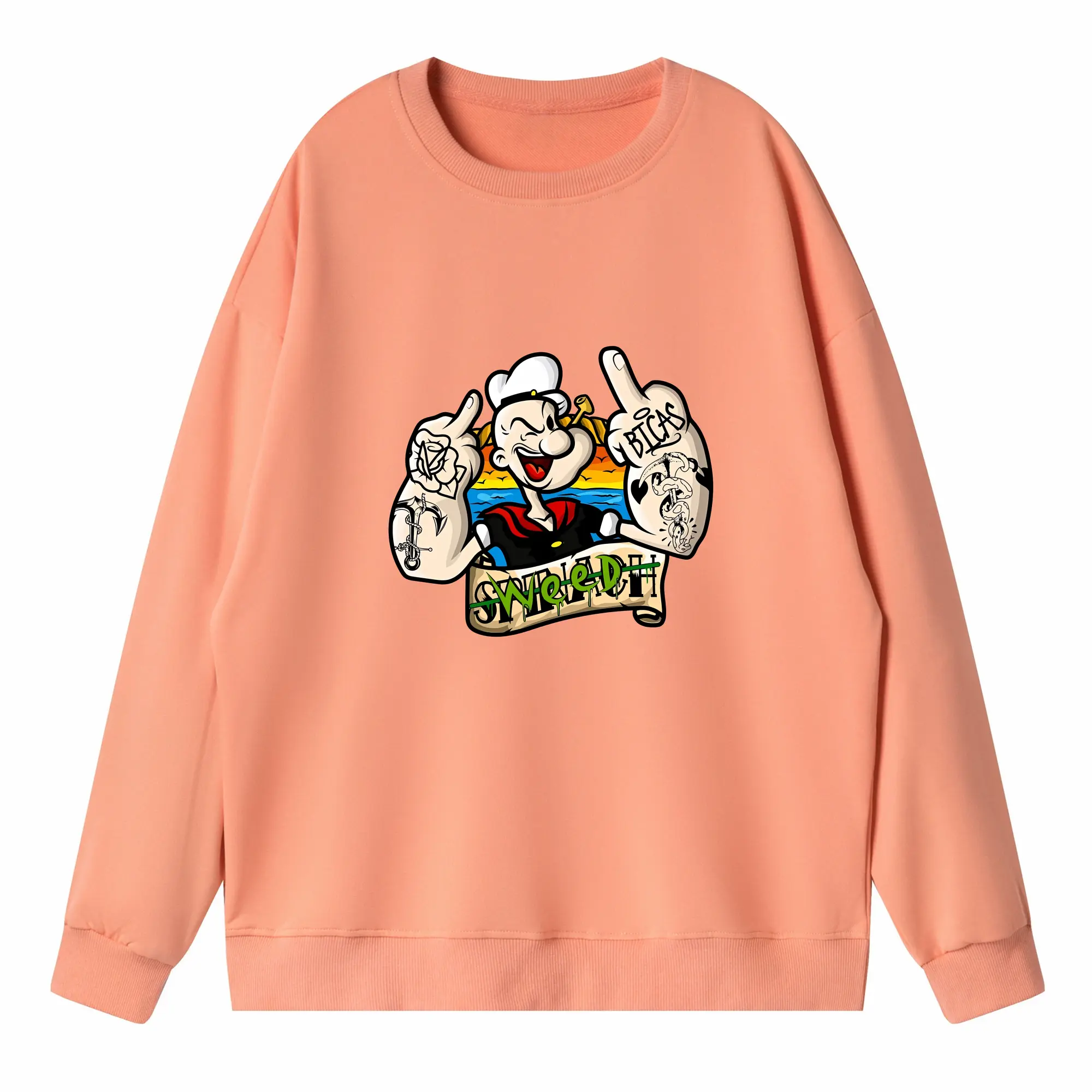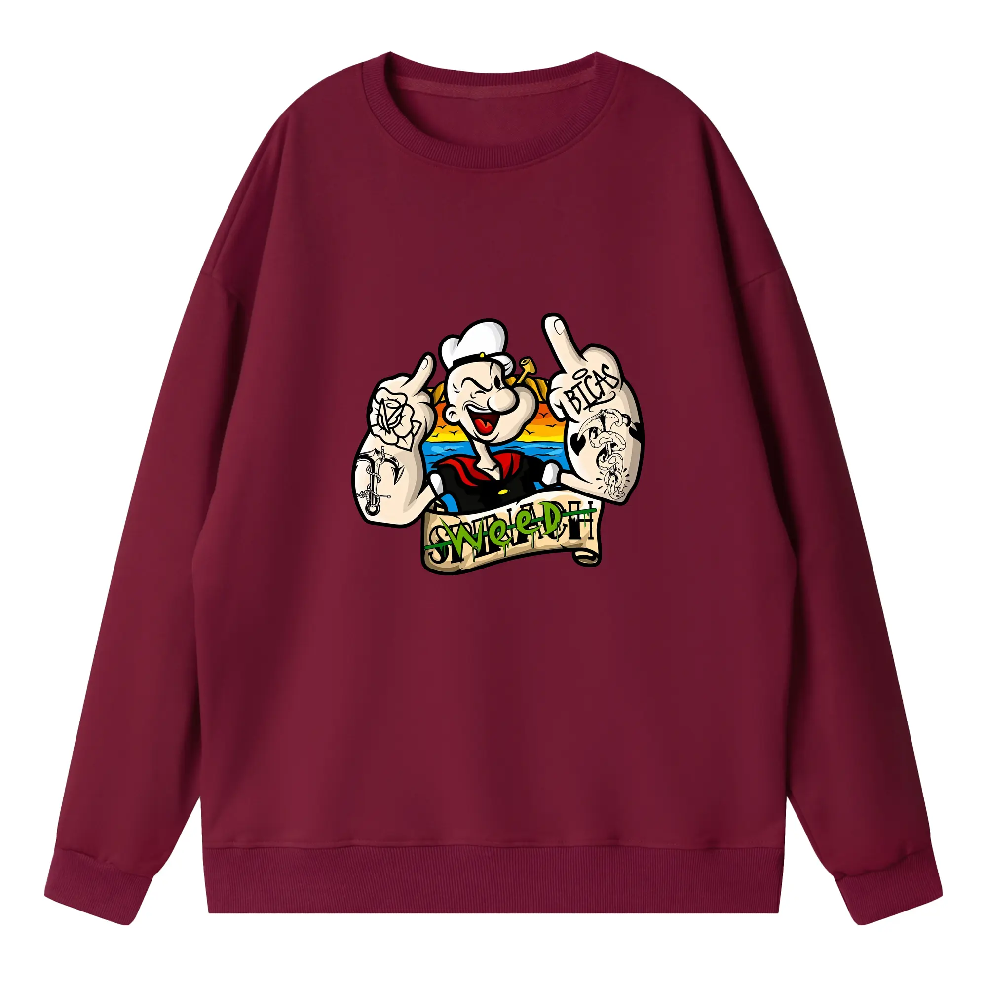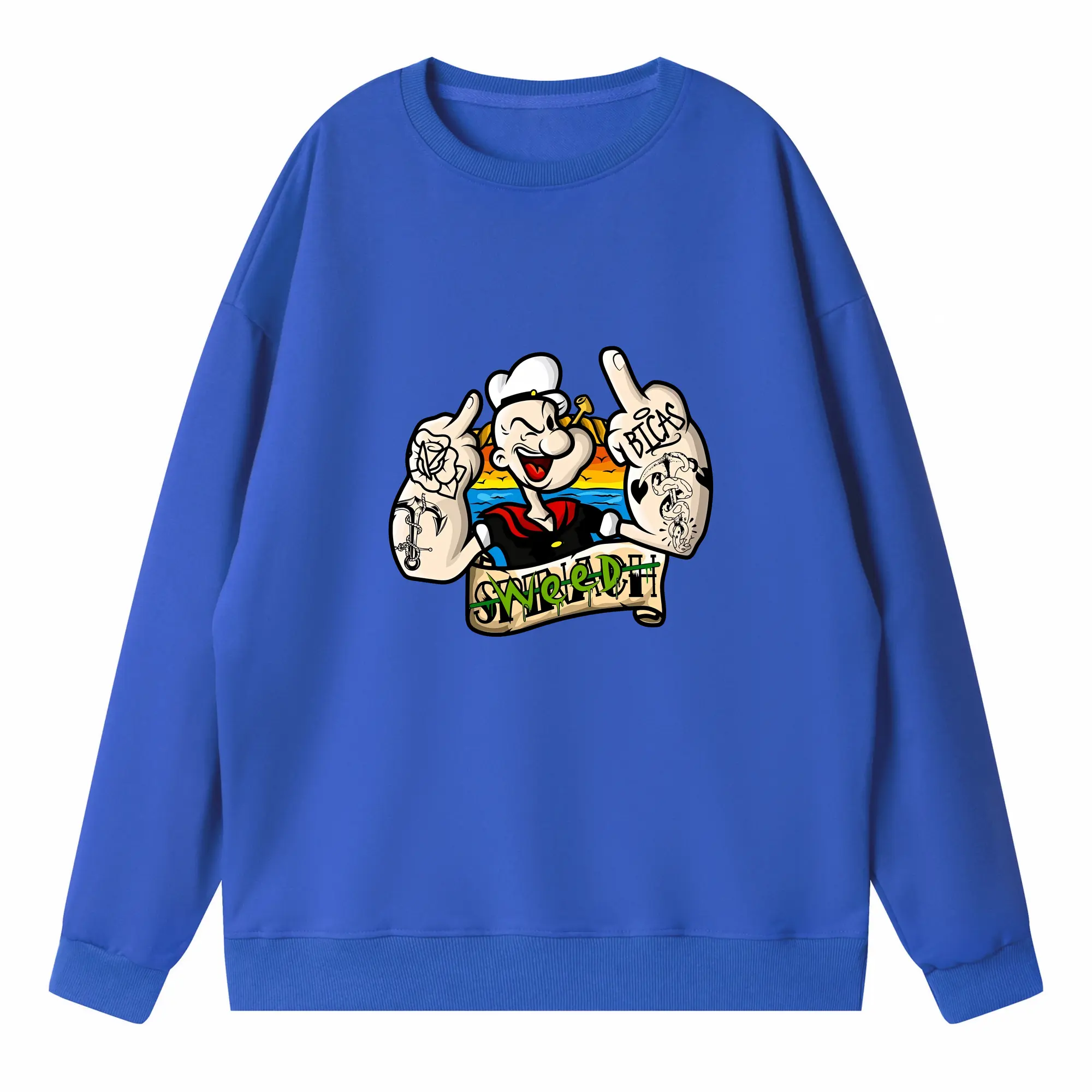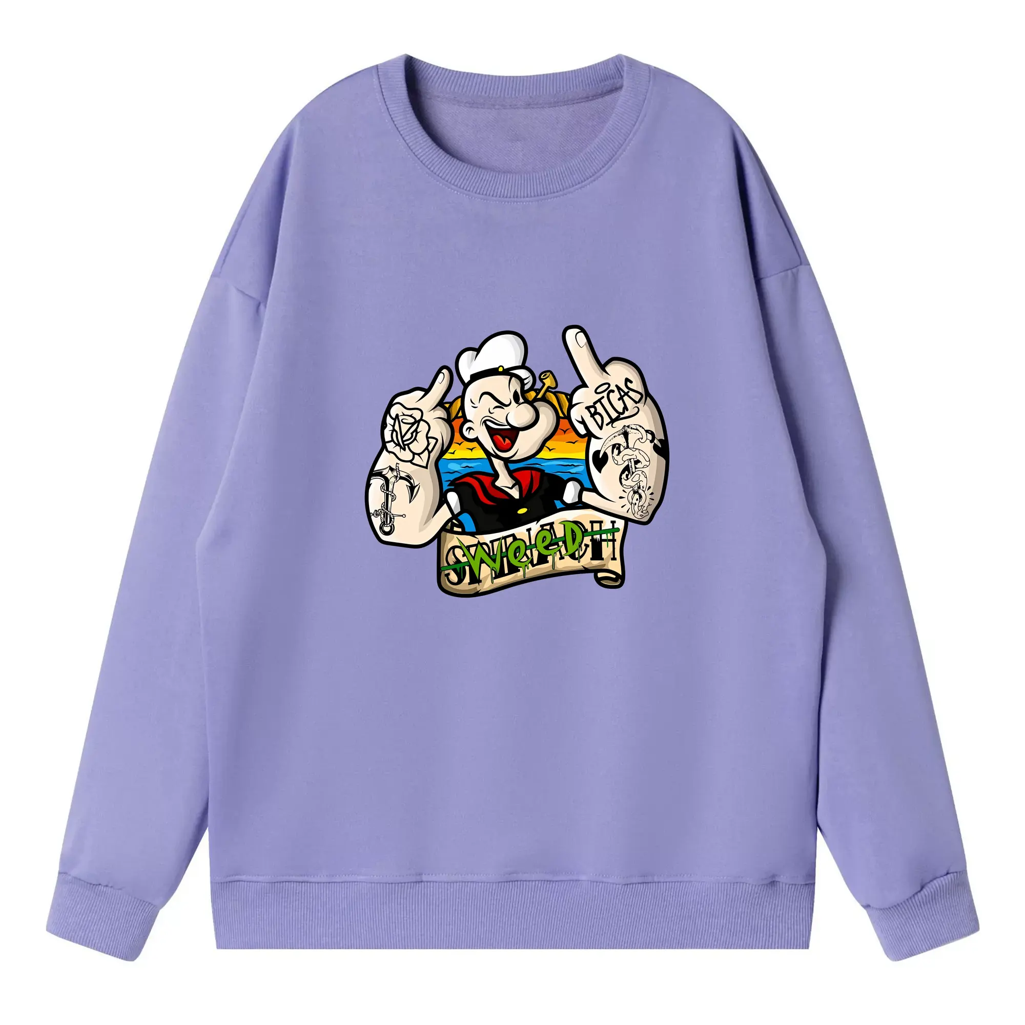 ポパイ グッズ ポパイ - 高品質 クルーネック スウェット ・ コットン59% ポリエステル41% ・ ユニセックス 長袖 トレーナー ・ カジュアル デイリー スポーツ 散歩用