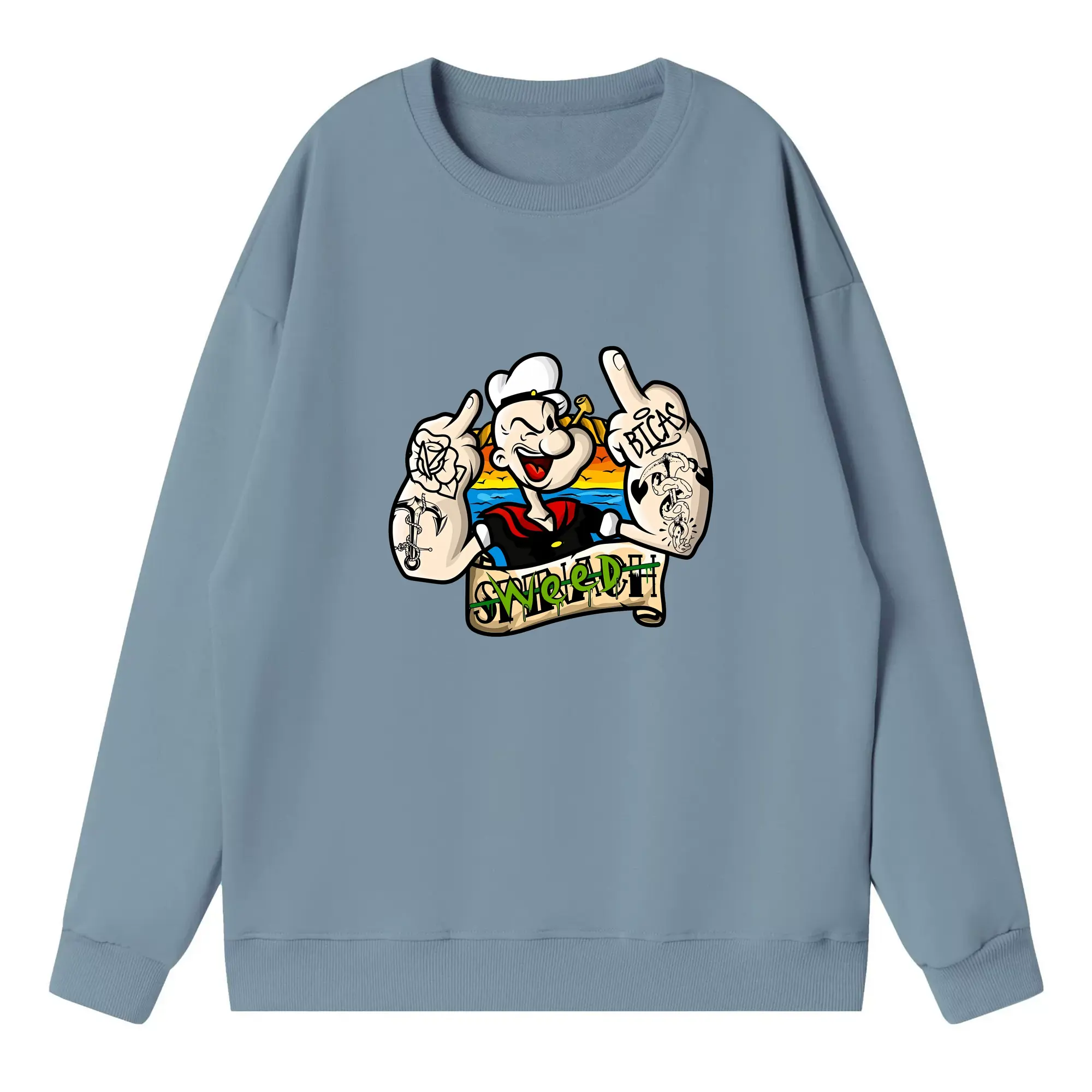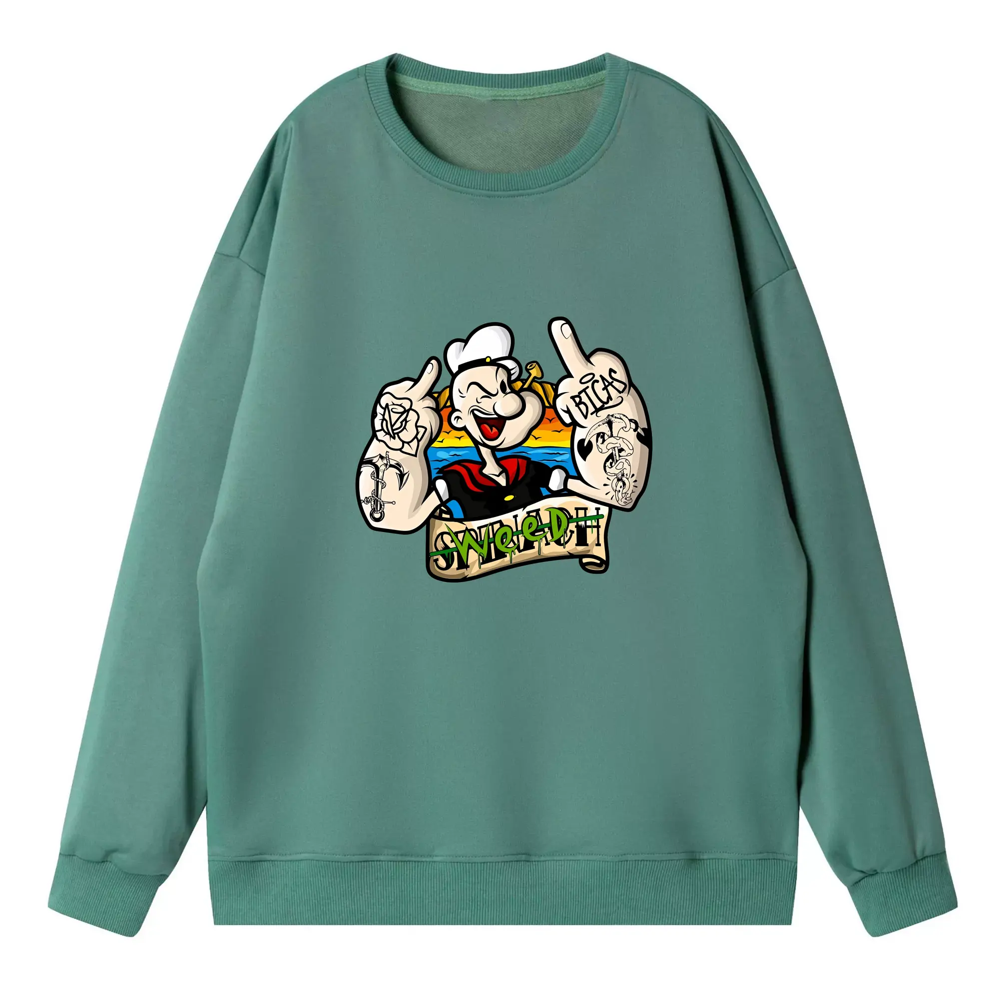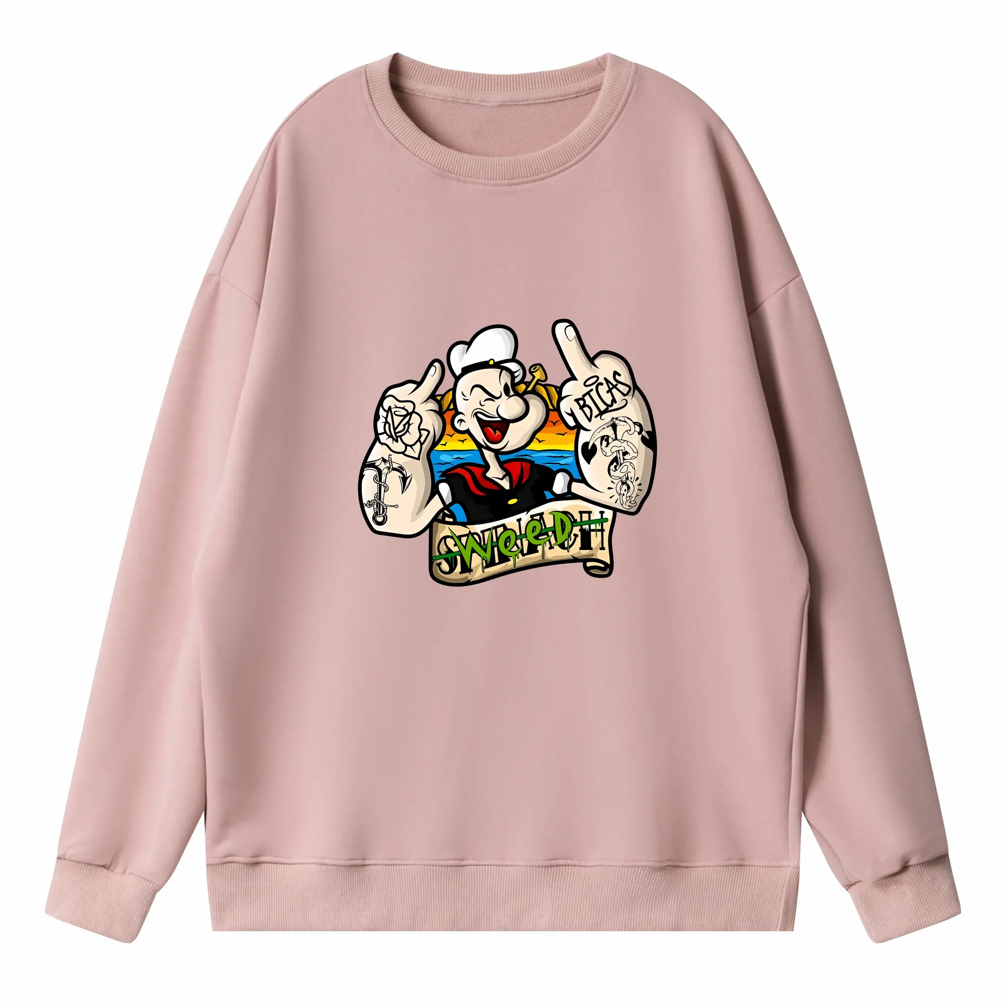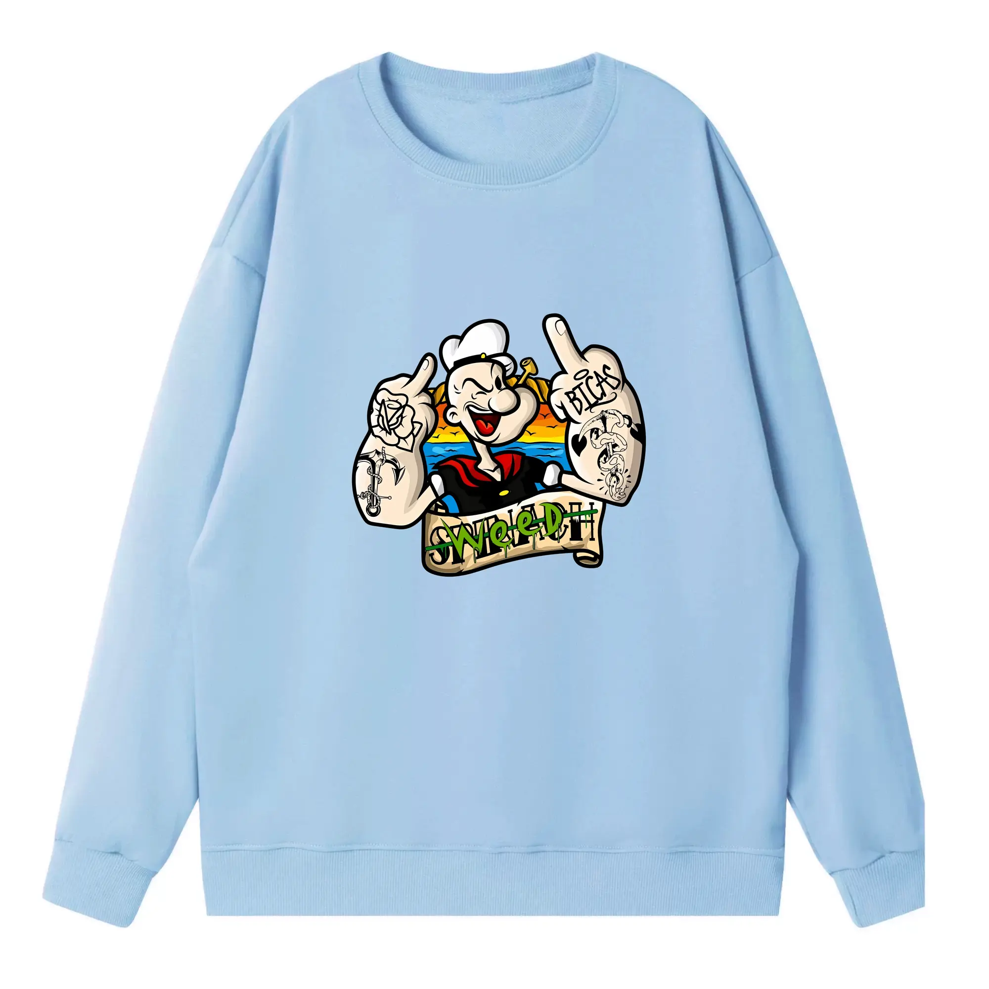ポパイ グッズ ポパイ - 高品質 クルーネック スウェット ・ コットン59% ポリエステル41% ・ ユニセックス 長袖 トレーナー ・ カジュアル デイリー スポーツ 散歩用