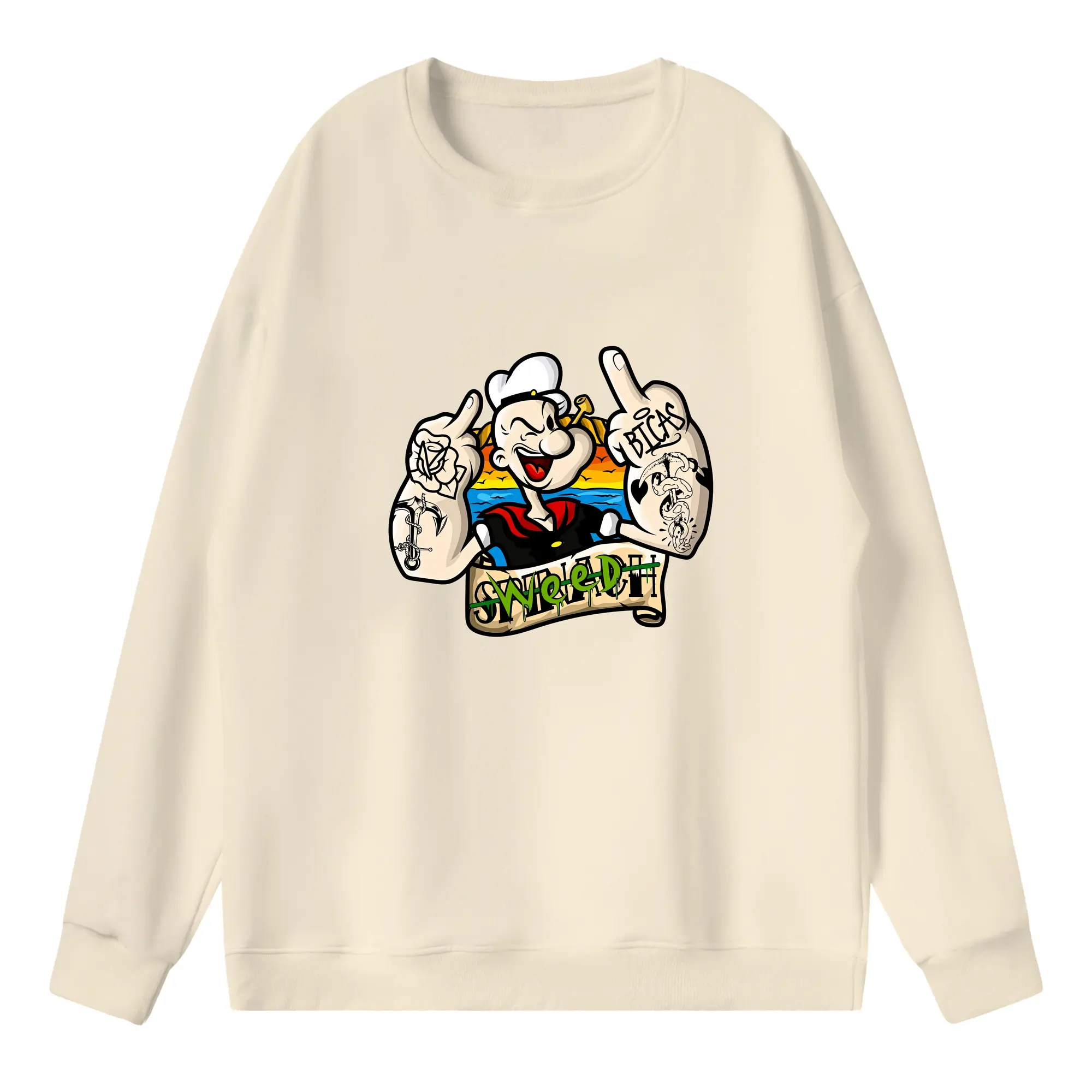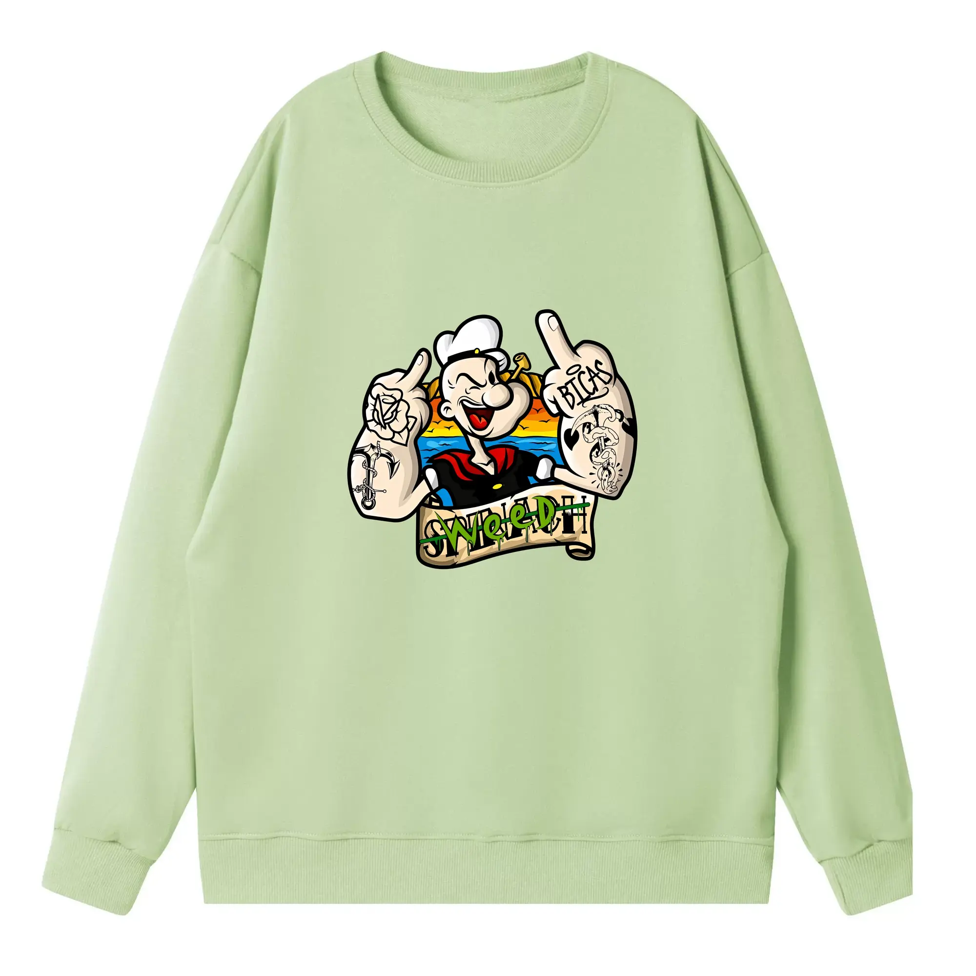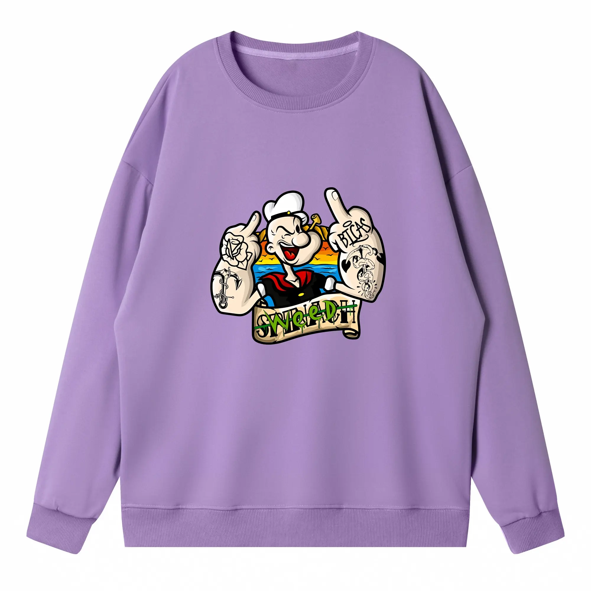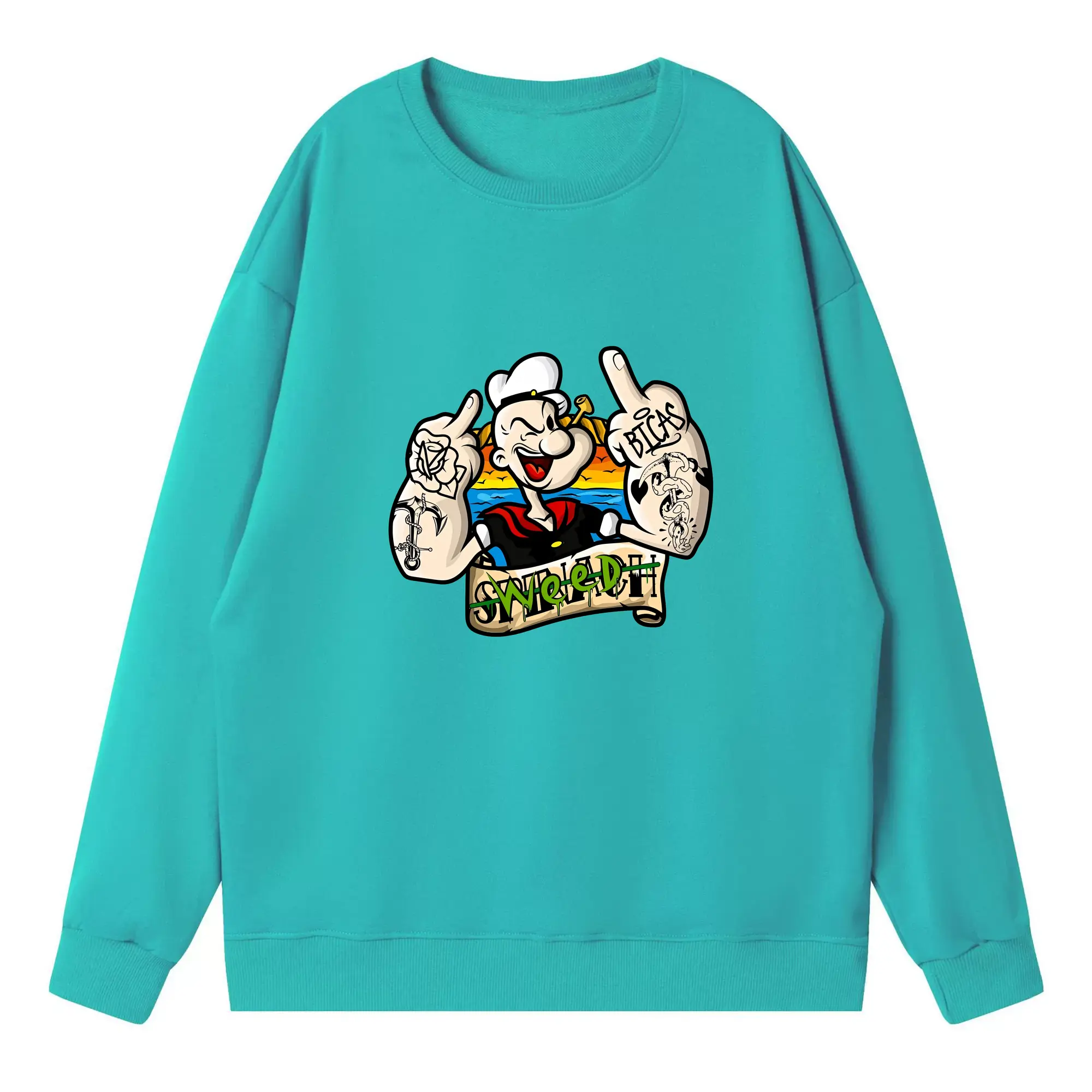 ポパイ グッズ ポパイ - 高品質 クルーネック スウェット ・ コットン59% ポリエステル41% ・ ユニセックス 長袖 トレーナー ・ カジュアル デイリー スポーツ 散歩用