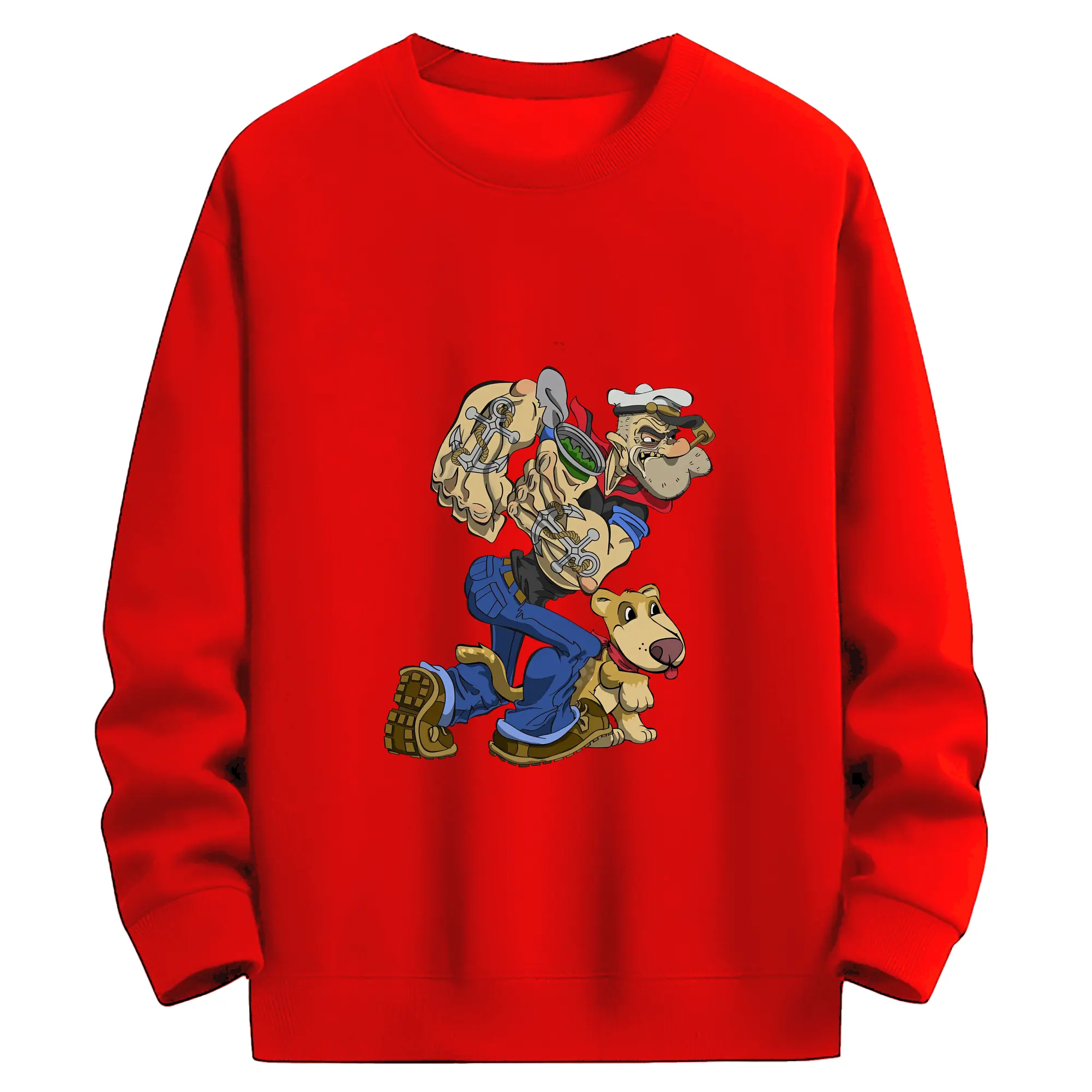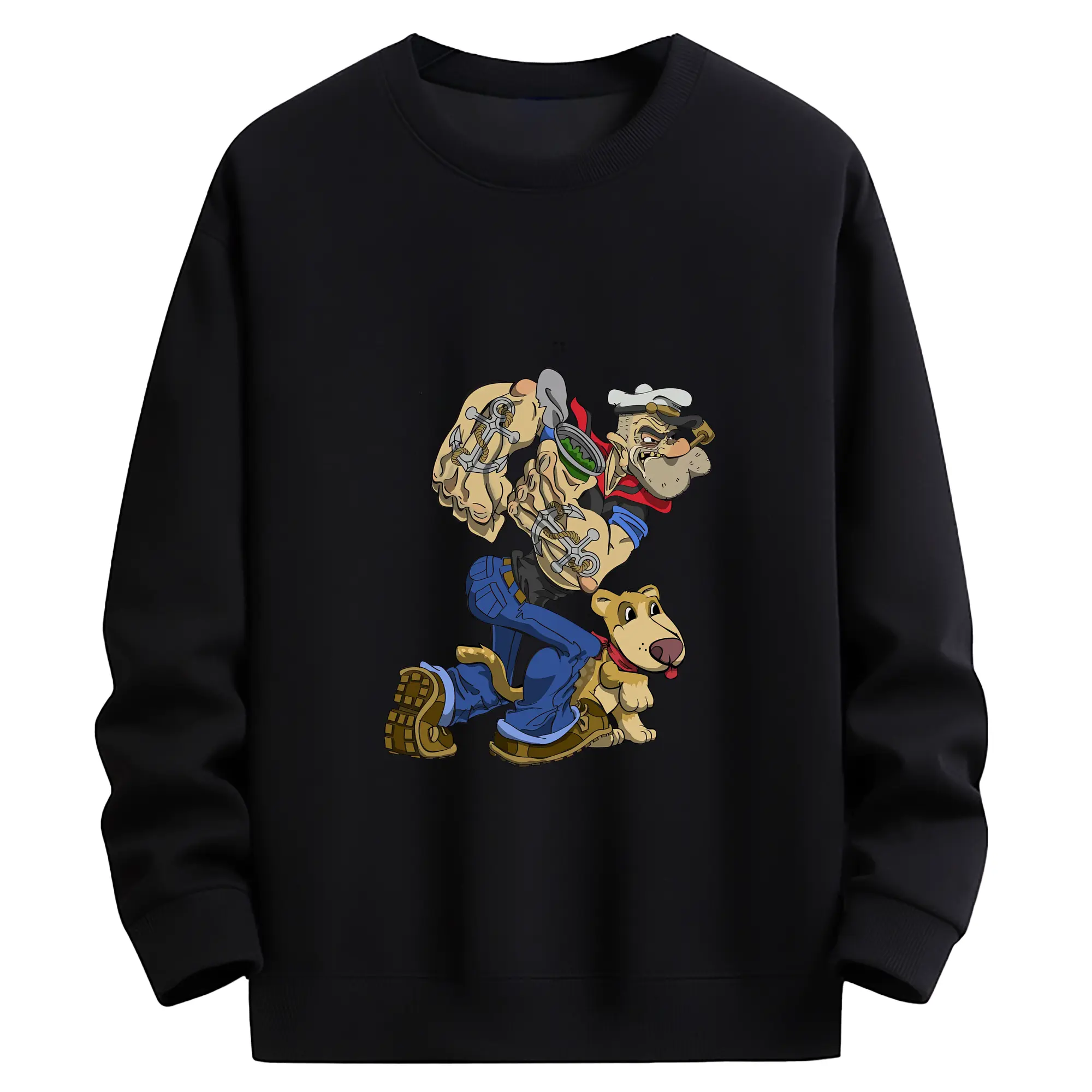 ポパイ グッズ ポパイ - 高品質 クルーネック スウェット ・ コットン59% ポリエステル41% ・ ユニセックス 長袖 トレーナー ・ カジュアル デイリー スポーツ 散歩用