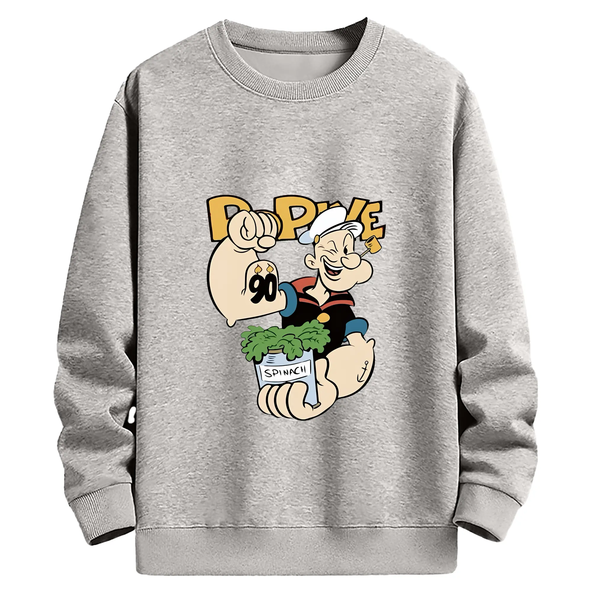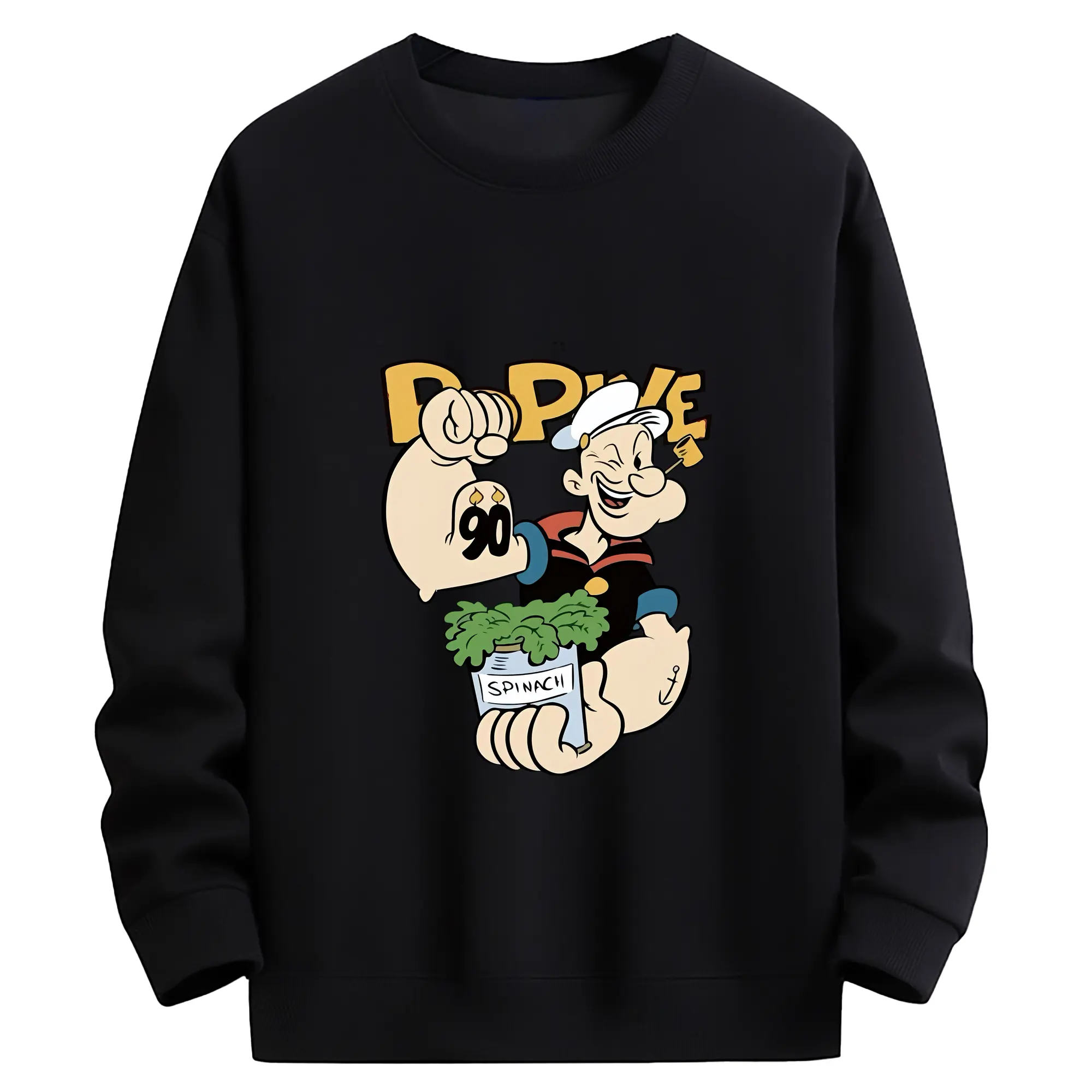 ポパイ グッズ ポパイ - 高品質 クルーネック スウェット ・ コットン59% ポリエステル41% ・ ユニセックス 長袖 トレーナー ・ カジュアル デイリー スポーツ 散歩用