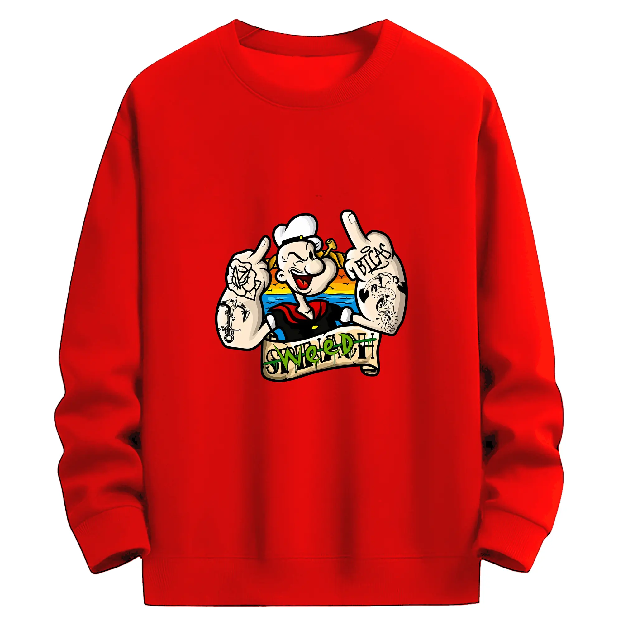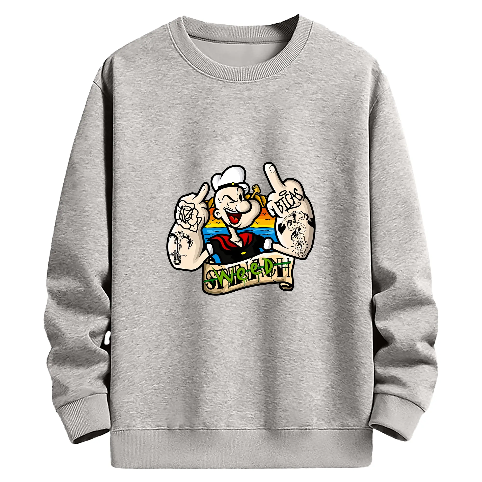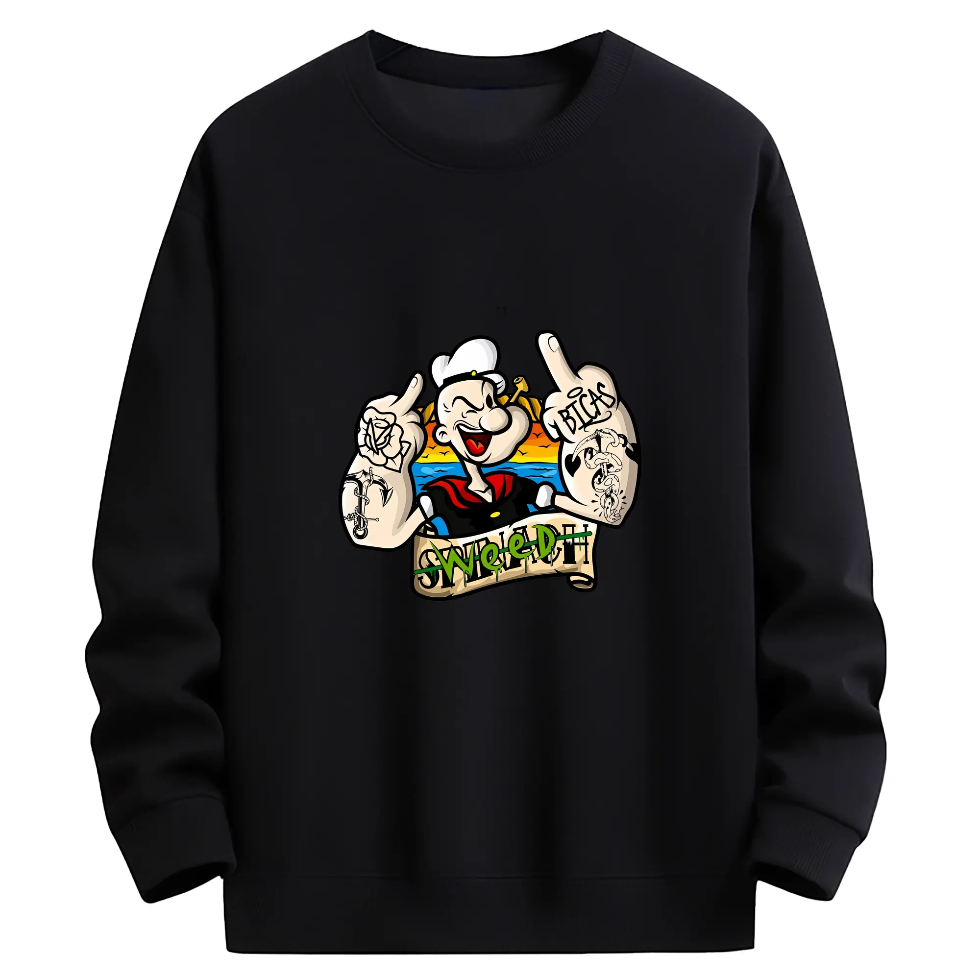 ポパイ グッズ ポパイ - 高品質 クルーネック スウェット ・ コットン59% ポリエステル41% ・ ユニセックス 長袖 トレーナー ・ カジュアル デイリー スポーツ 散歩用