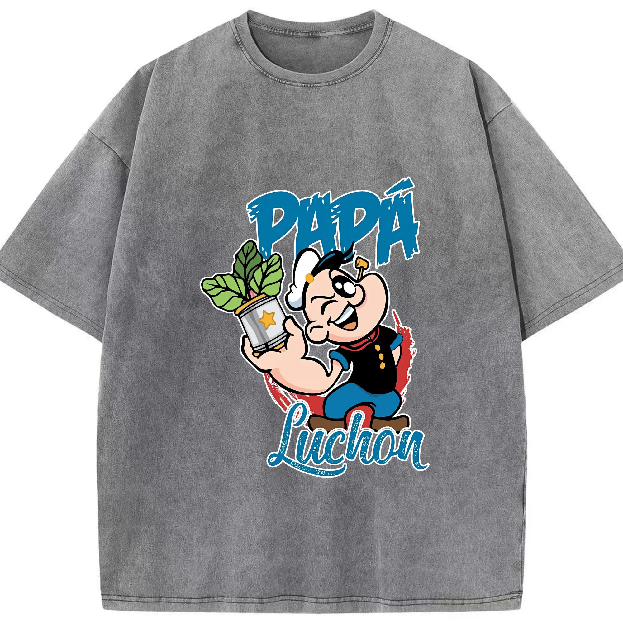 ポパイ グッズ ポパイ - 綿100% ヴィンテージ風 半袖Tシャツ ・ 背面プリント ・ 柔らか肌触り ・ 通気性 快適 ・ スポーツ カジュアル 外出用
