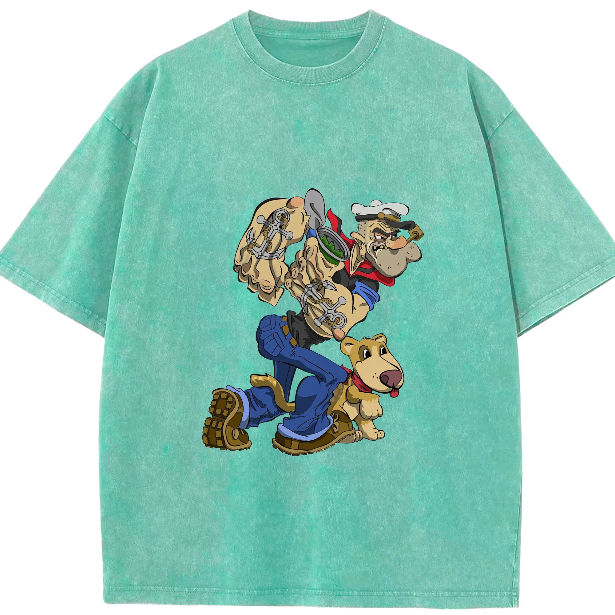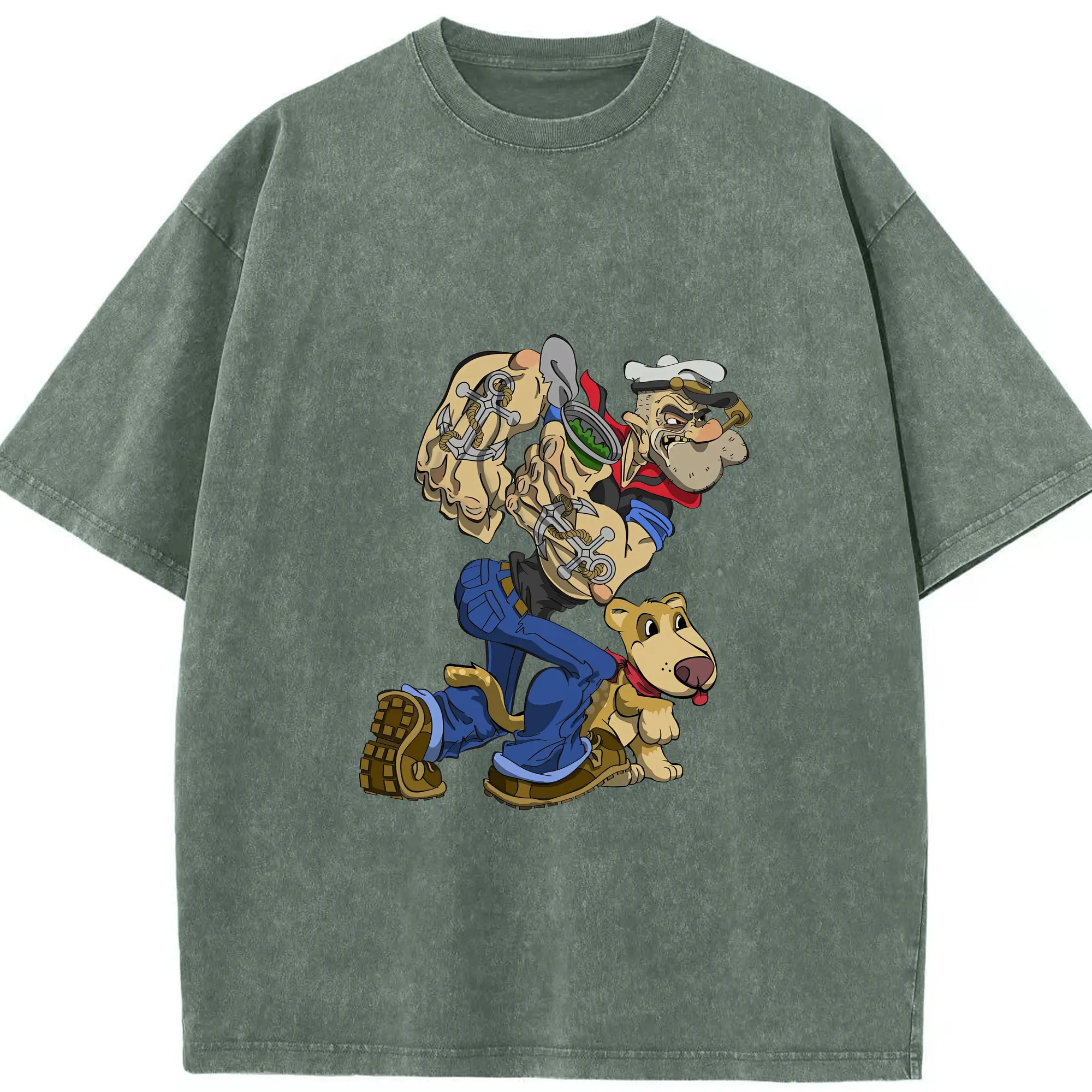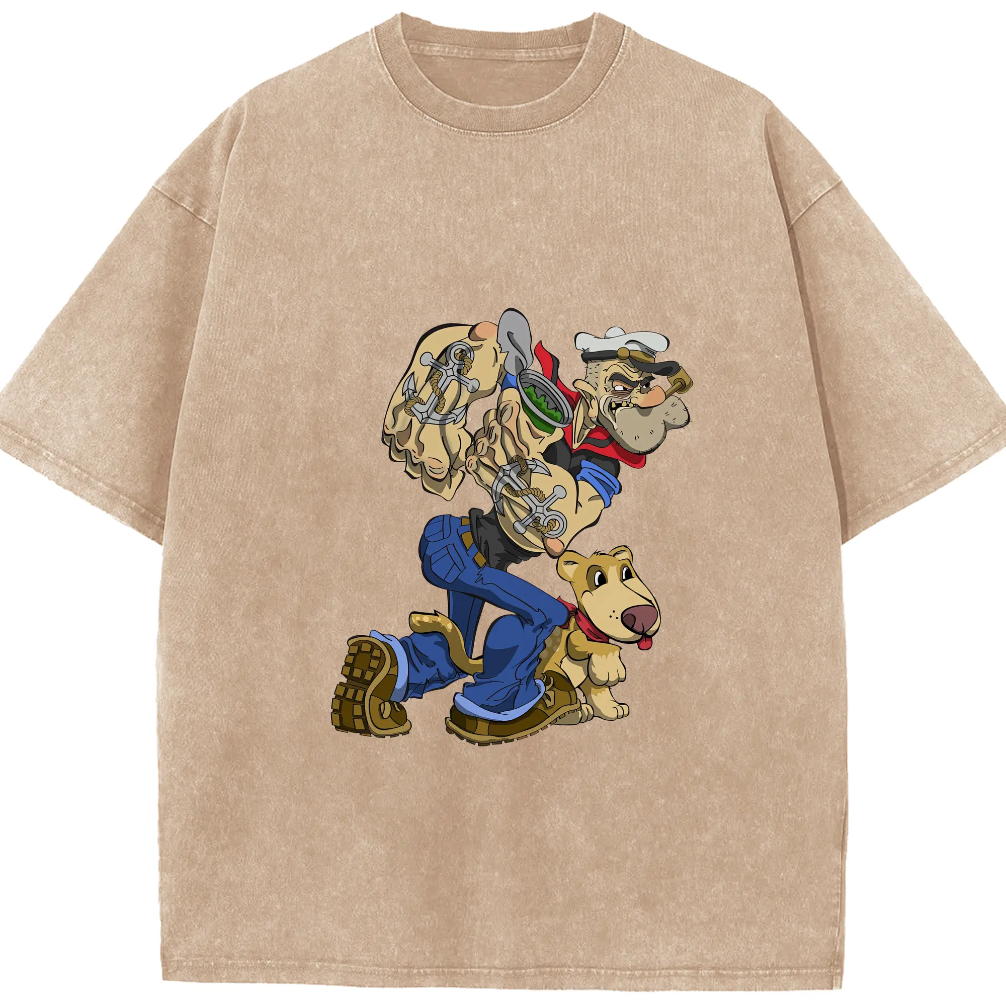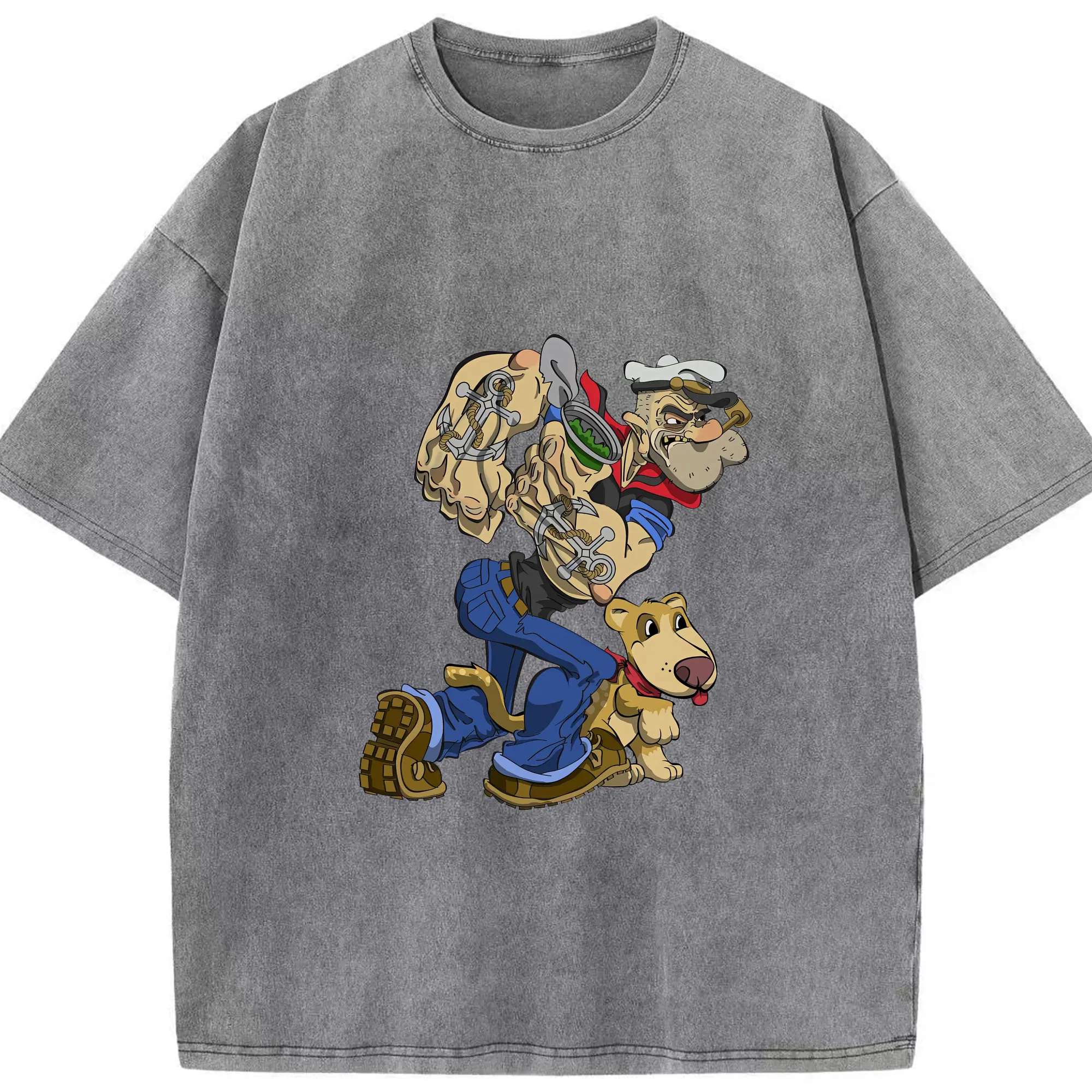 ポパイ グッズ ポパイ - 綿100% ヴィンテージ風 半袖Tシャツ ・ 背面プリント ・ 柔らか肌触り ・ 通気性 快適 ・ スポーツ カジュアル 外出用