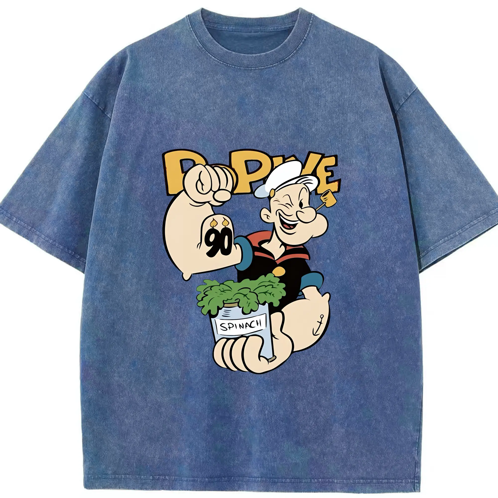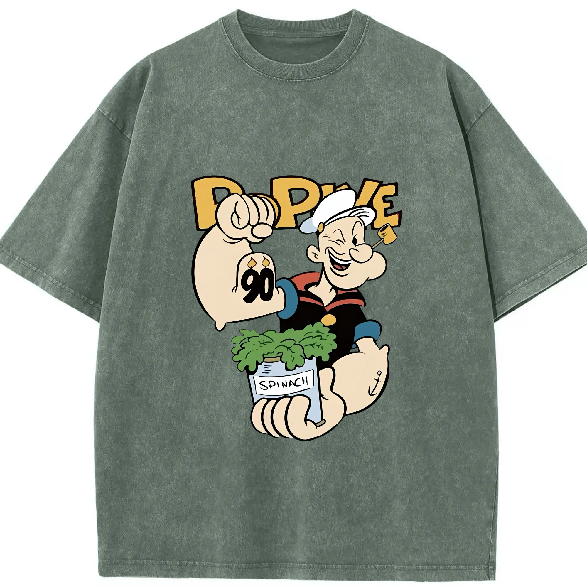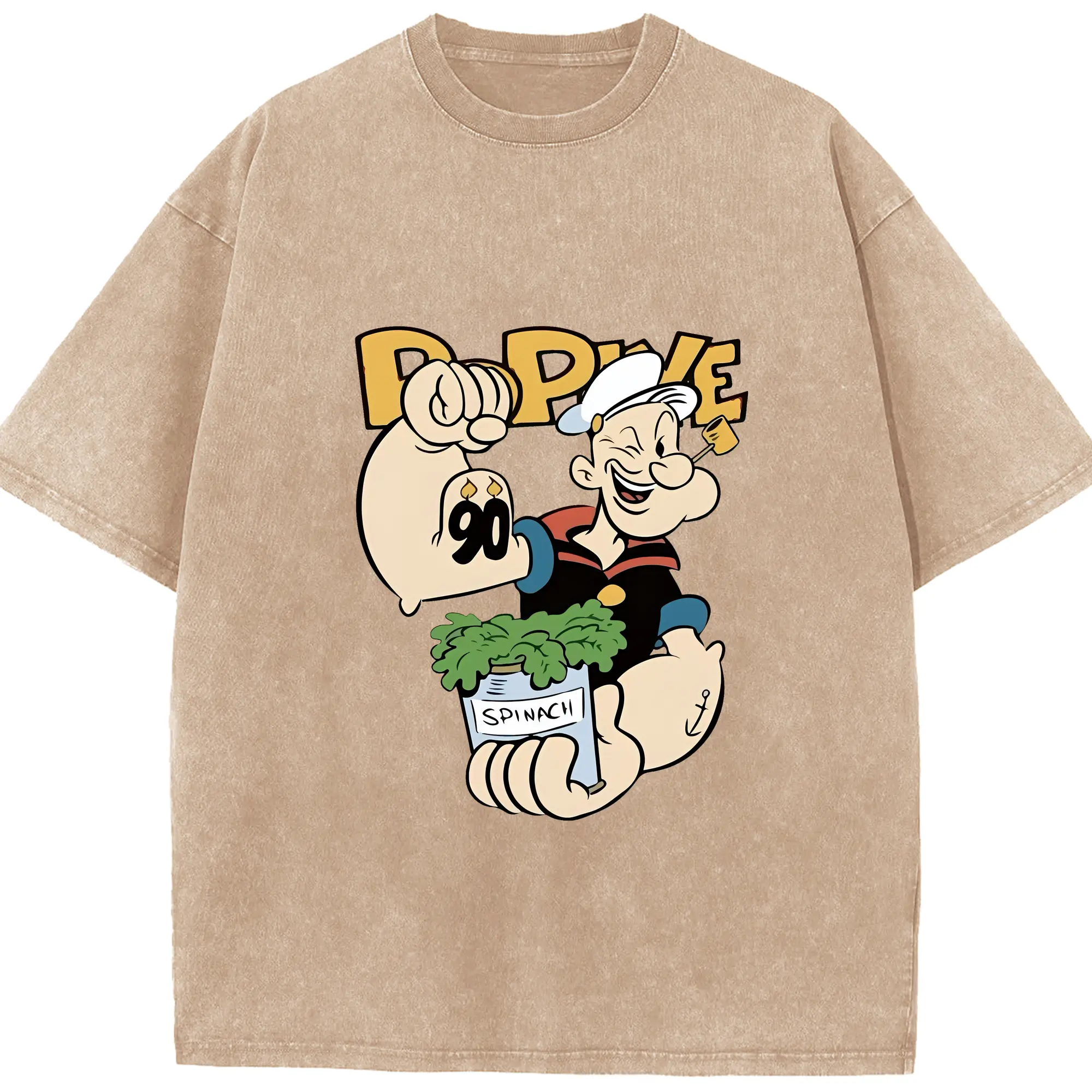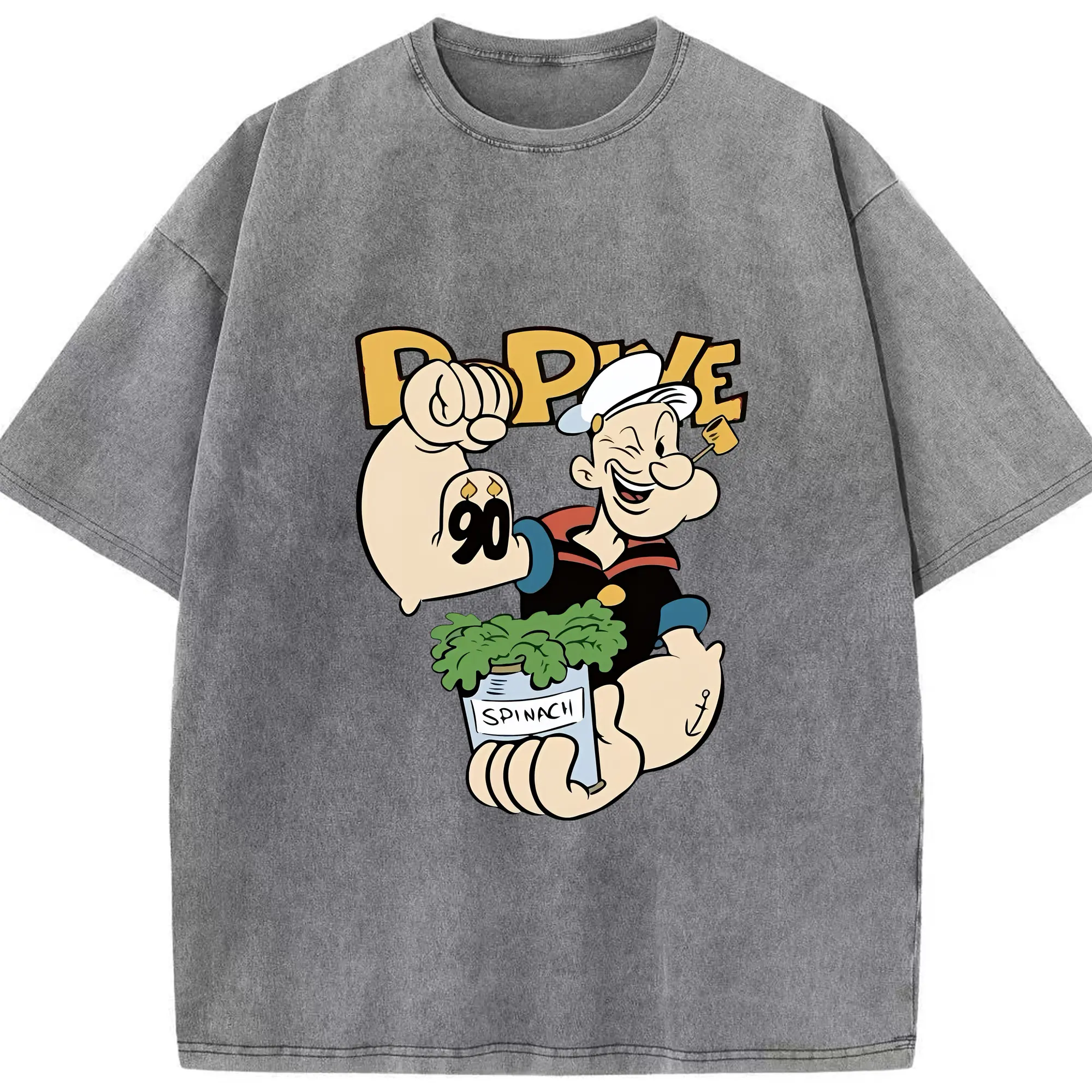 ポパイ グッズ ポパイ - 綿100% ヴィンテージ風 半袖Tシャツ ・ 背面プリント ・ 柔らか肌触り ・ 通気性 快適 ・ スポーツ カジュアル 外出用