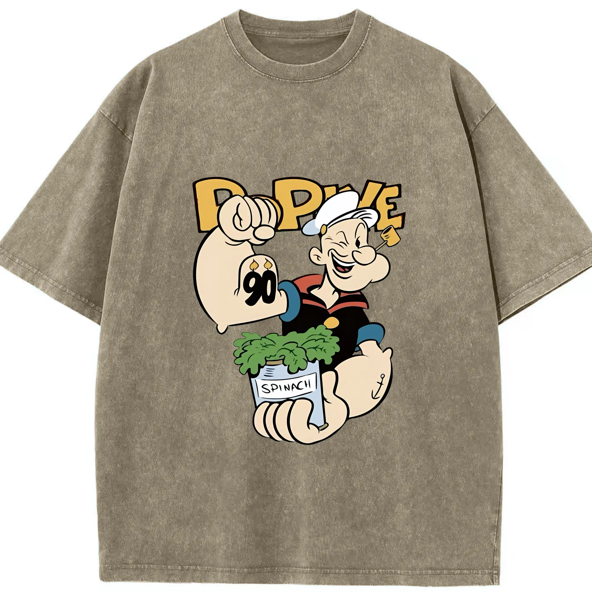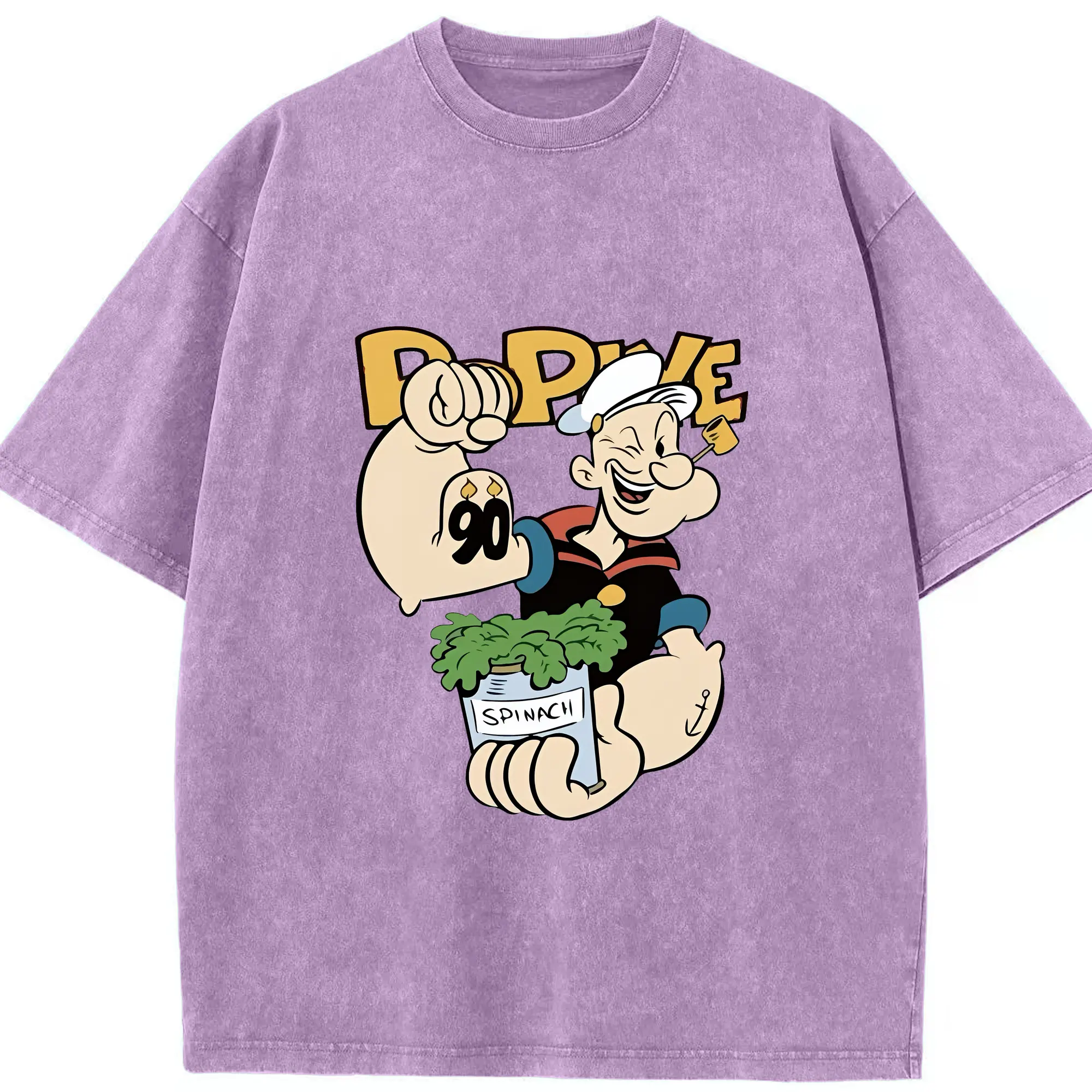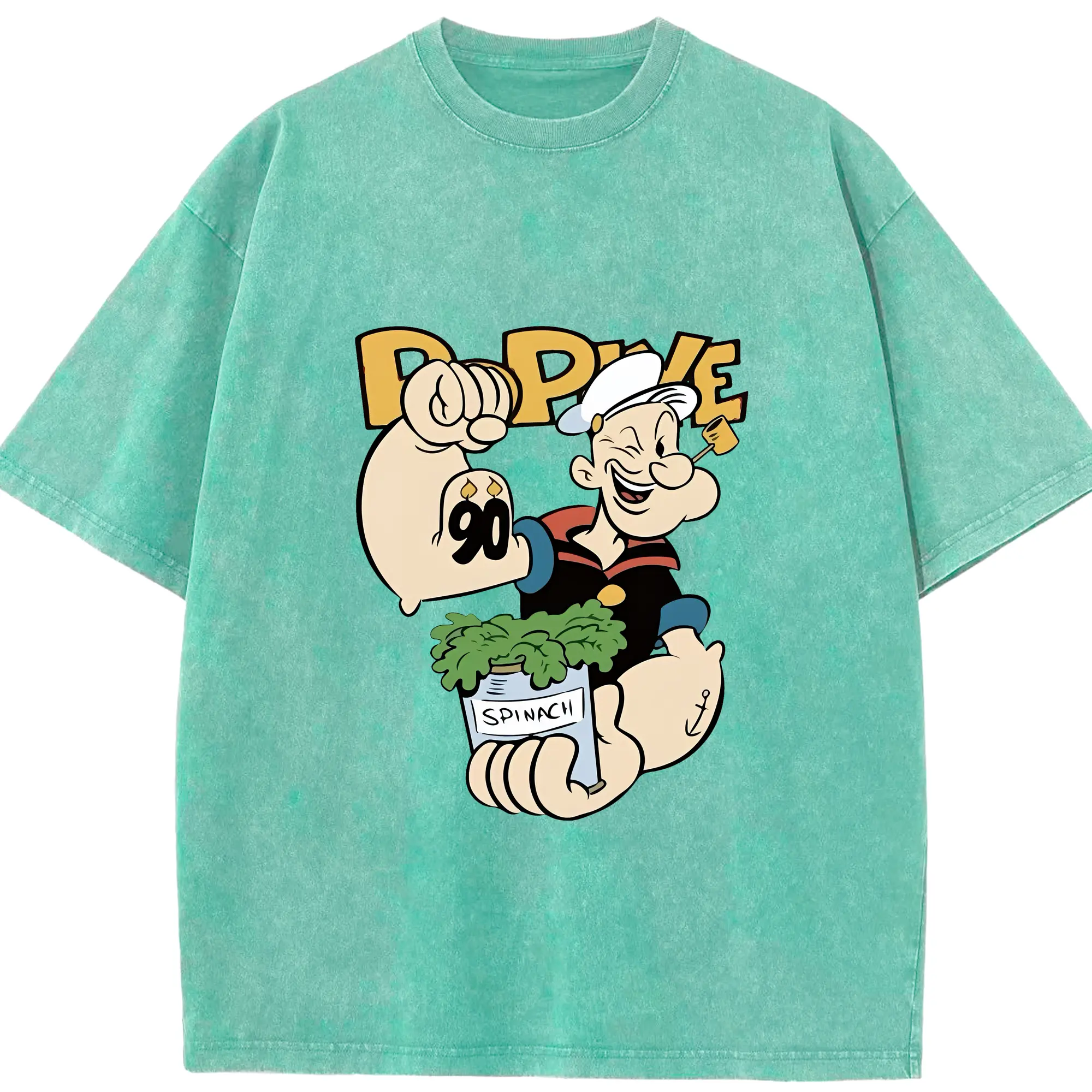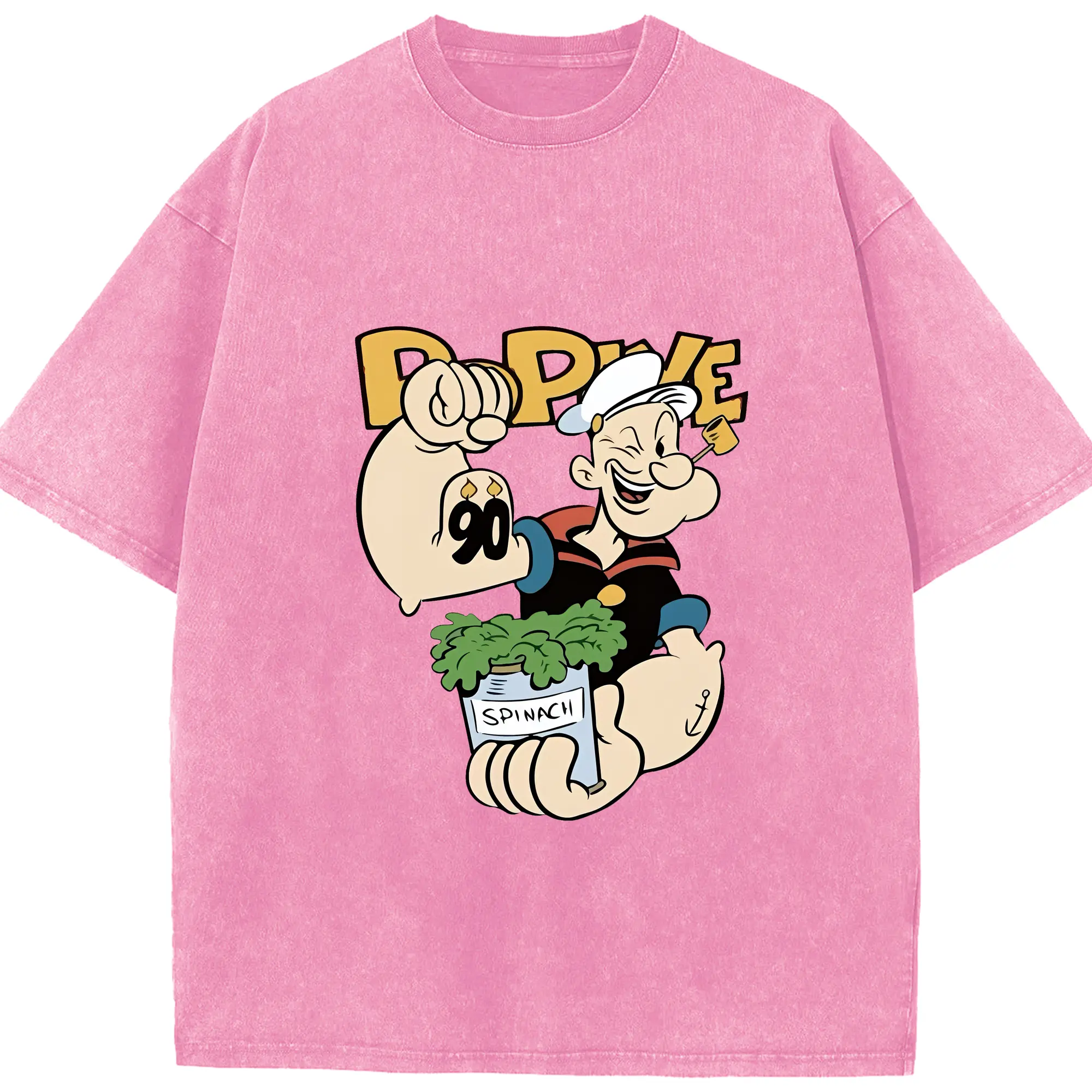 ポパイ グッズ ポパイ - 綿100% ヴィンテージ風 半袖Tシャツ ・ 背面プリント ・ 柔らか肌触り ・ 通気性 快適 ・ スポーツ カジュアル 外出用