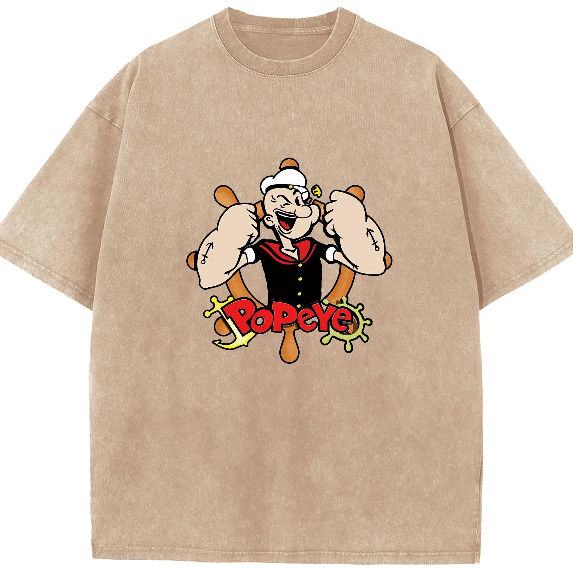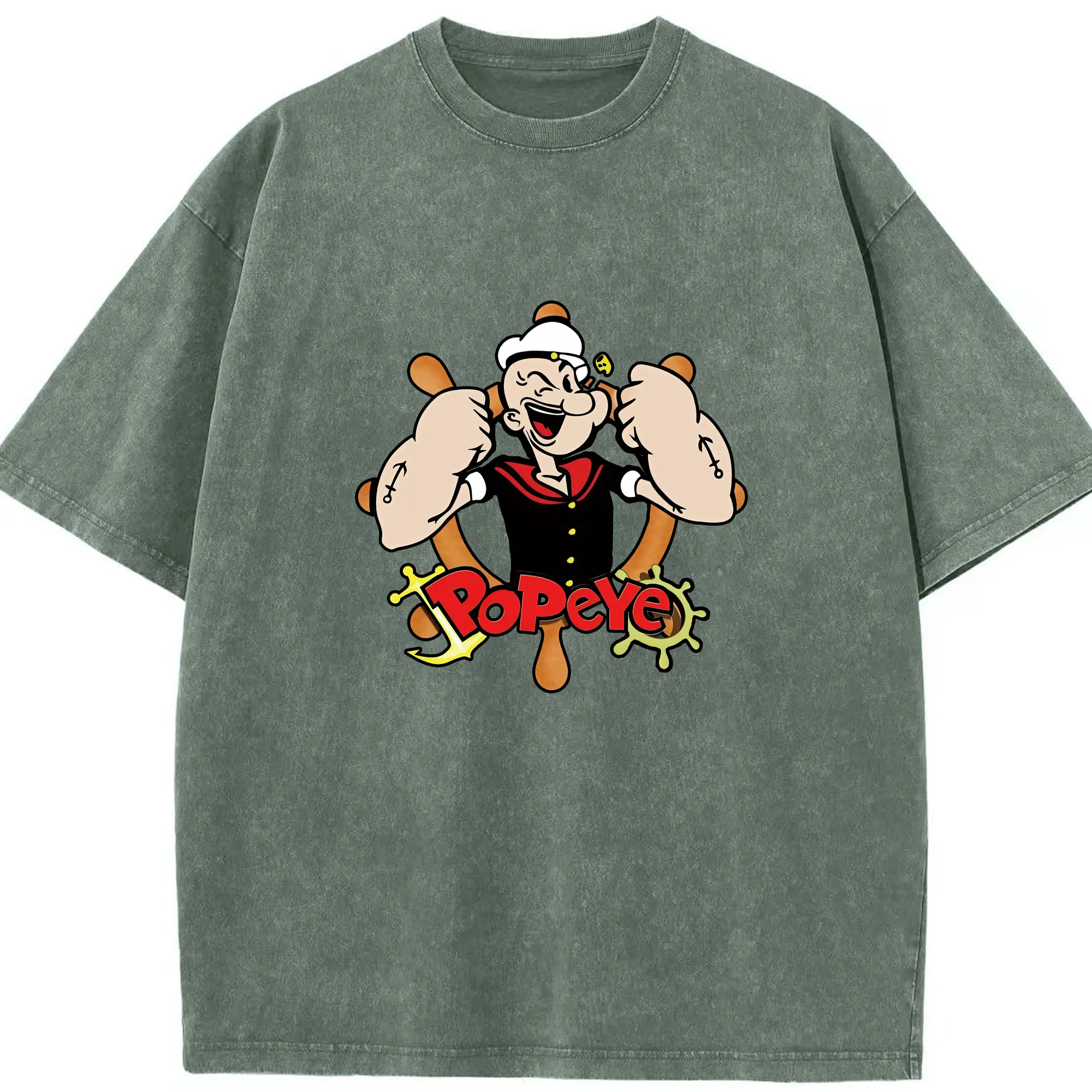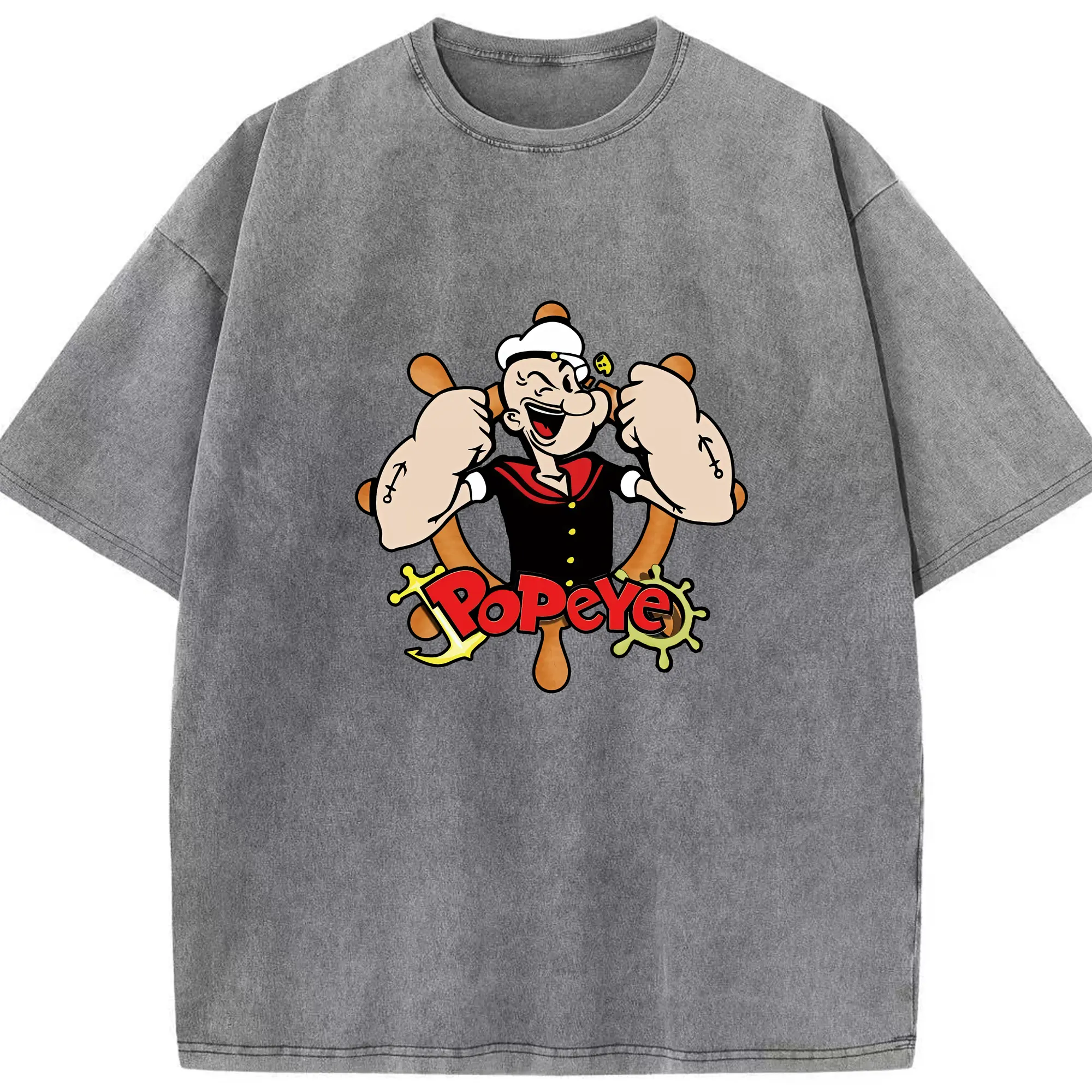 ポパイ グッズ ポパイ - 綿100% ヴィンテージ風 半袖Tシャツ ・ 背面プリント ・ 柔らか肌触り ・ 通気性 快適 ・ スポーツ カジュアル 外出用