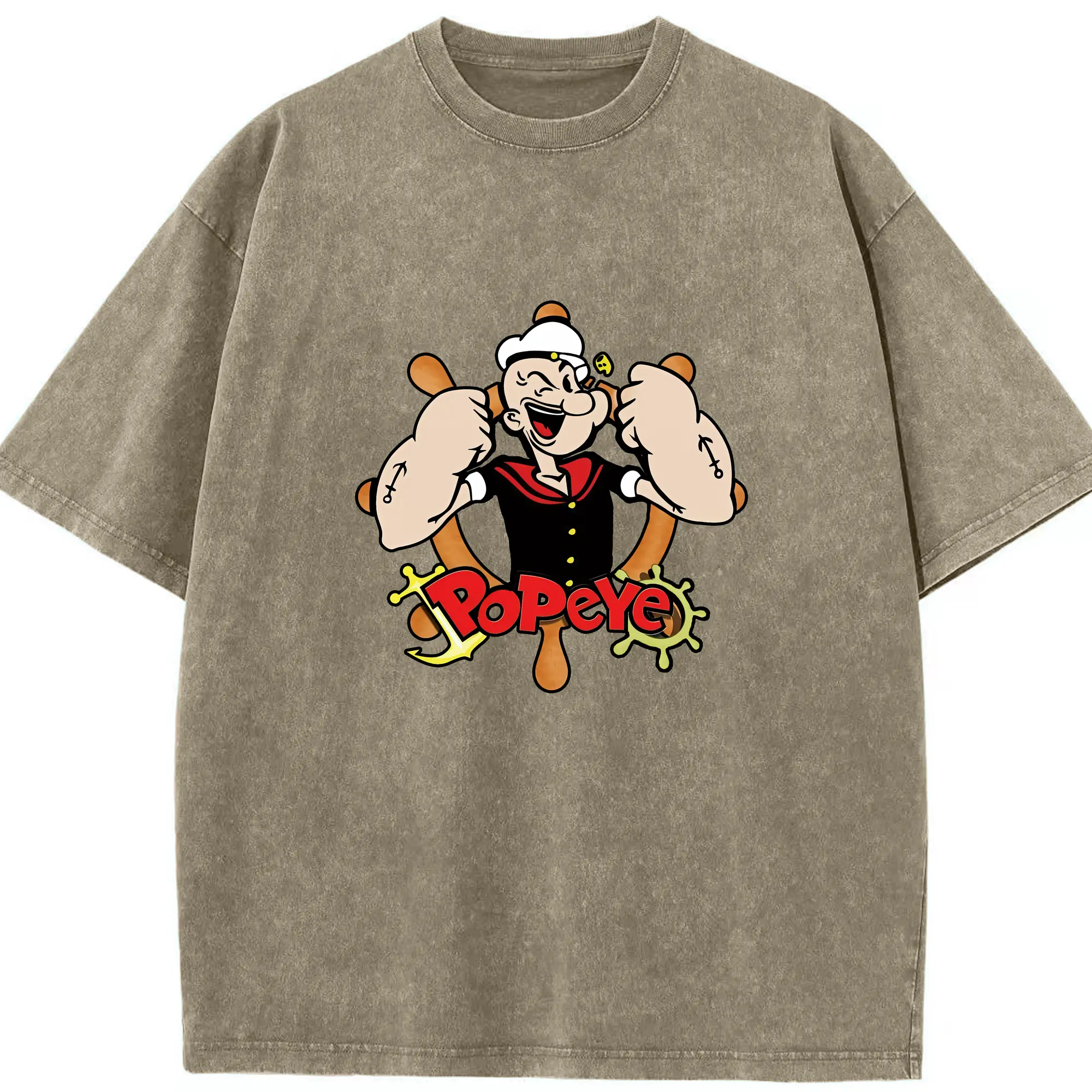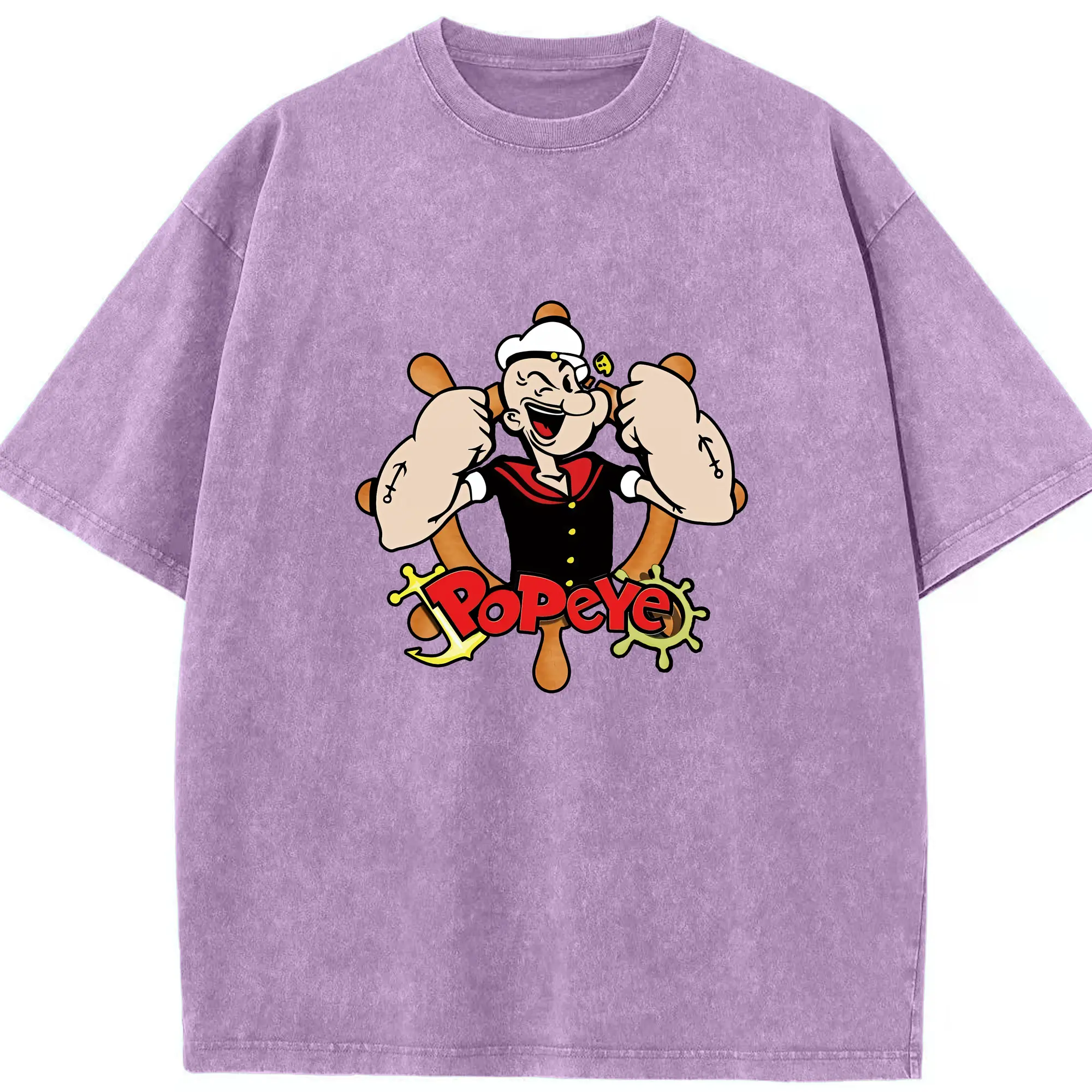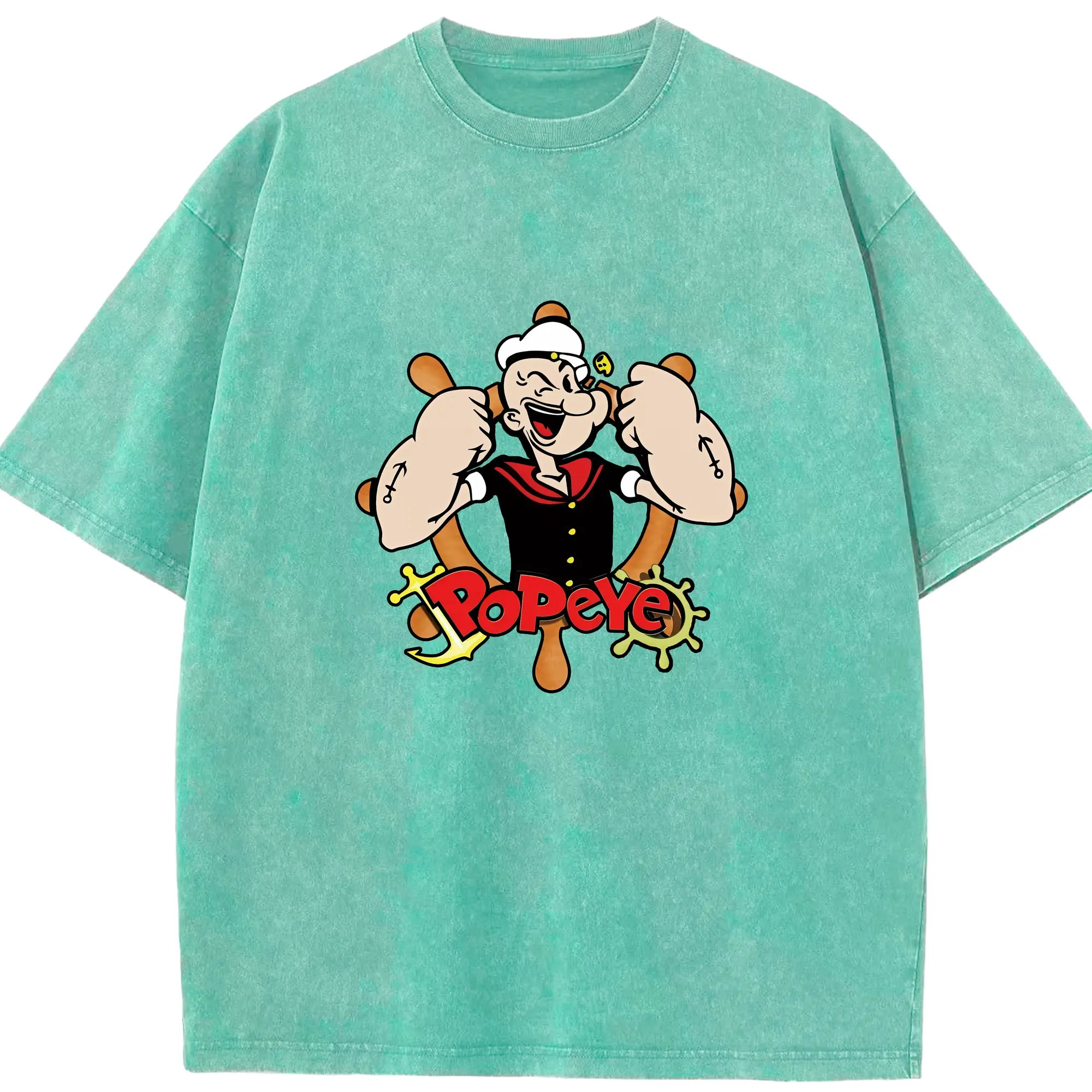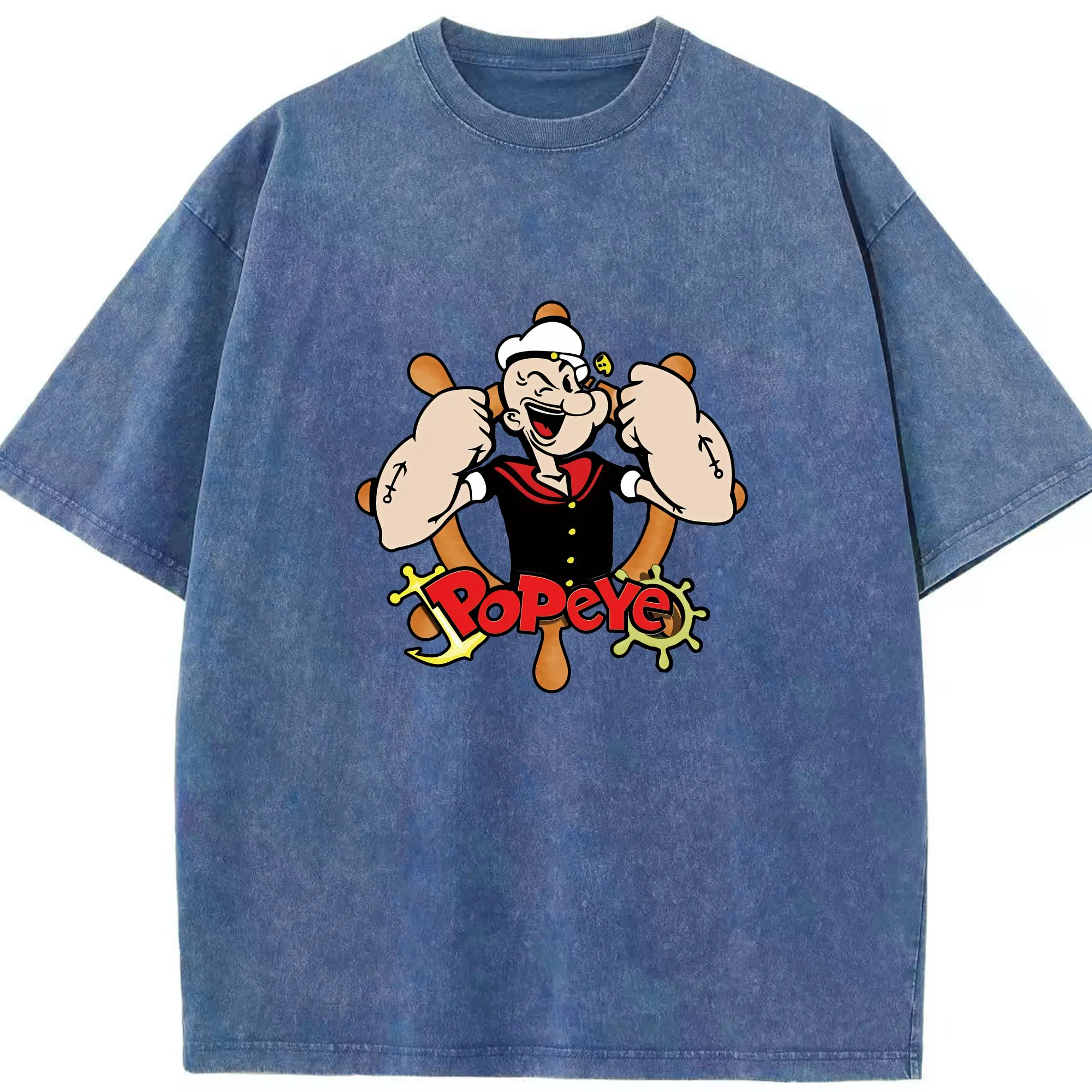 ポパイ グッズ ポパイ - 綿100% ヴィンテージ風 半袖Tシャツ ・ 背面プリント ・ 柔らか肌触り ・ 通気性 快適 ・ スポーツ カジュアル 外出用