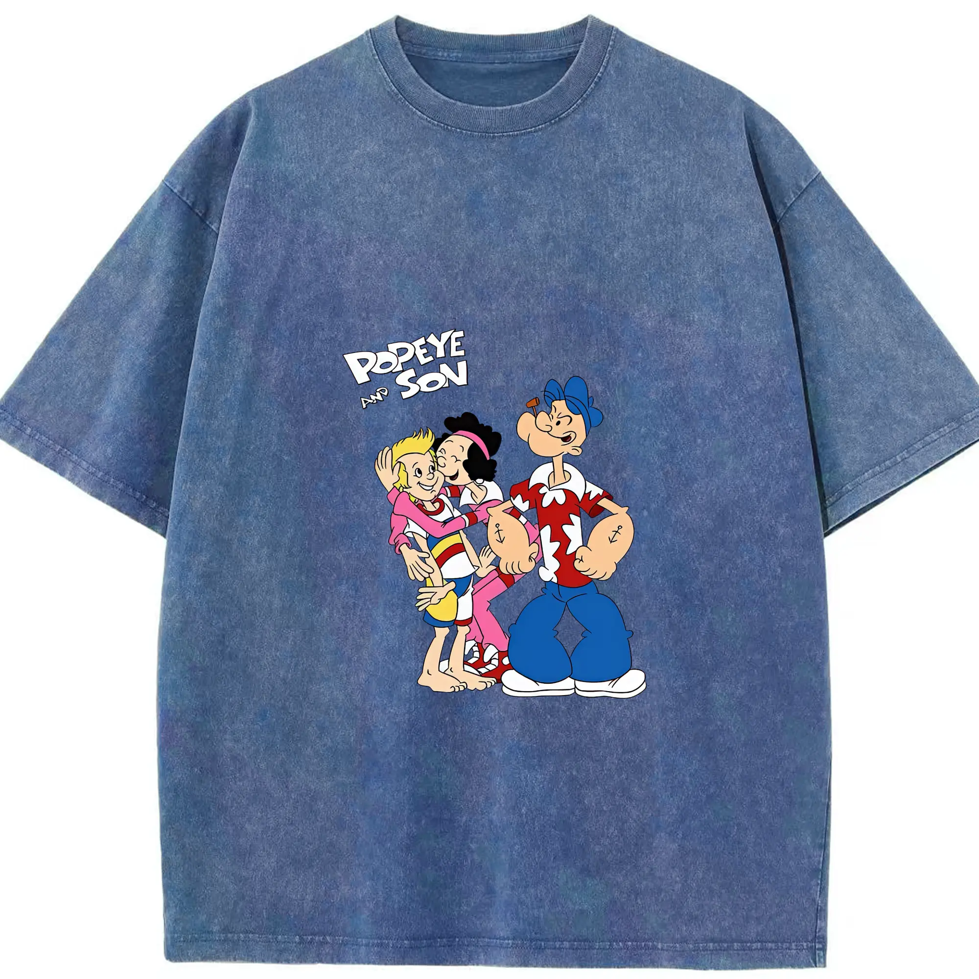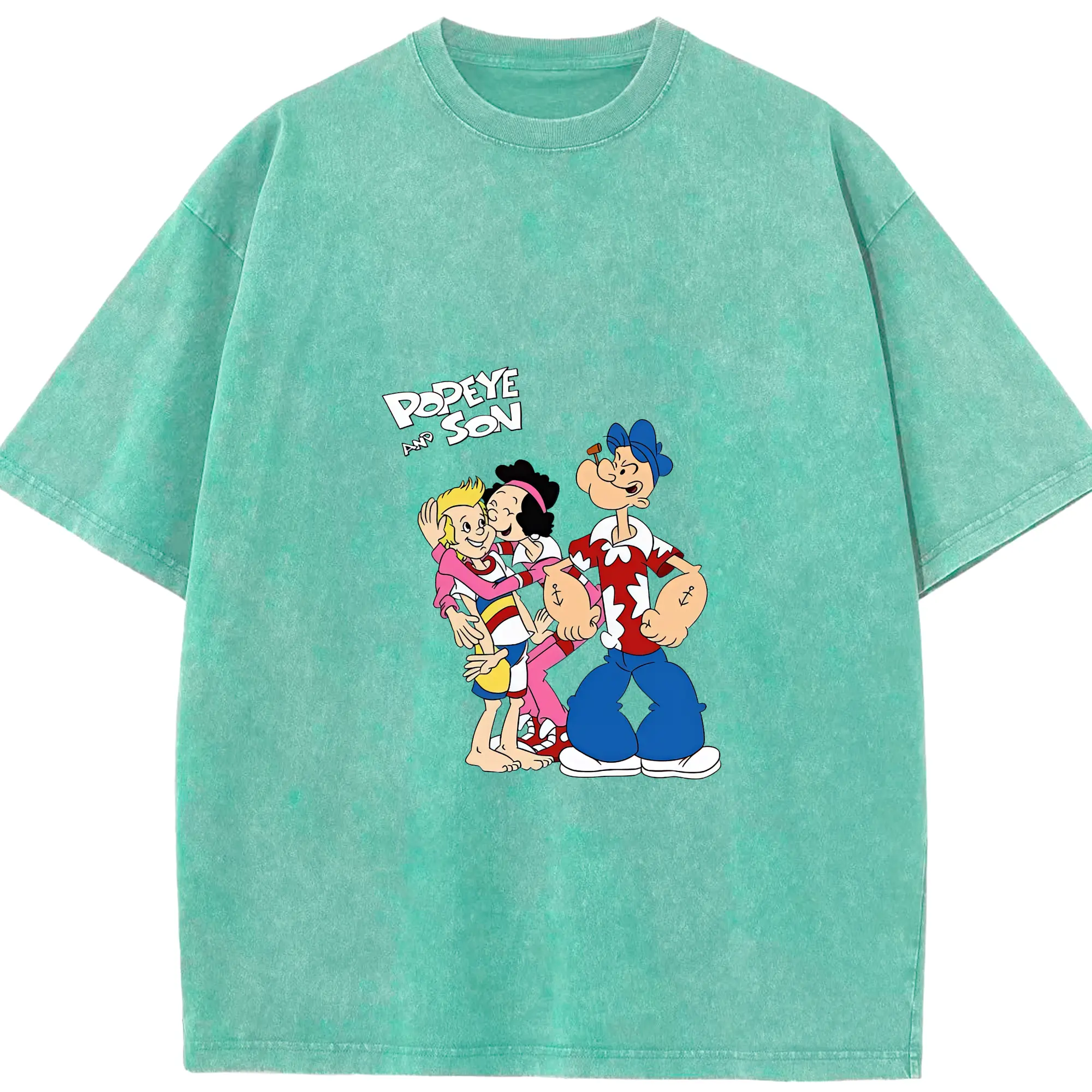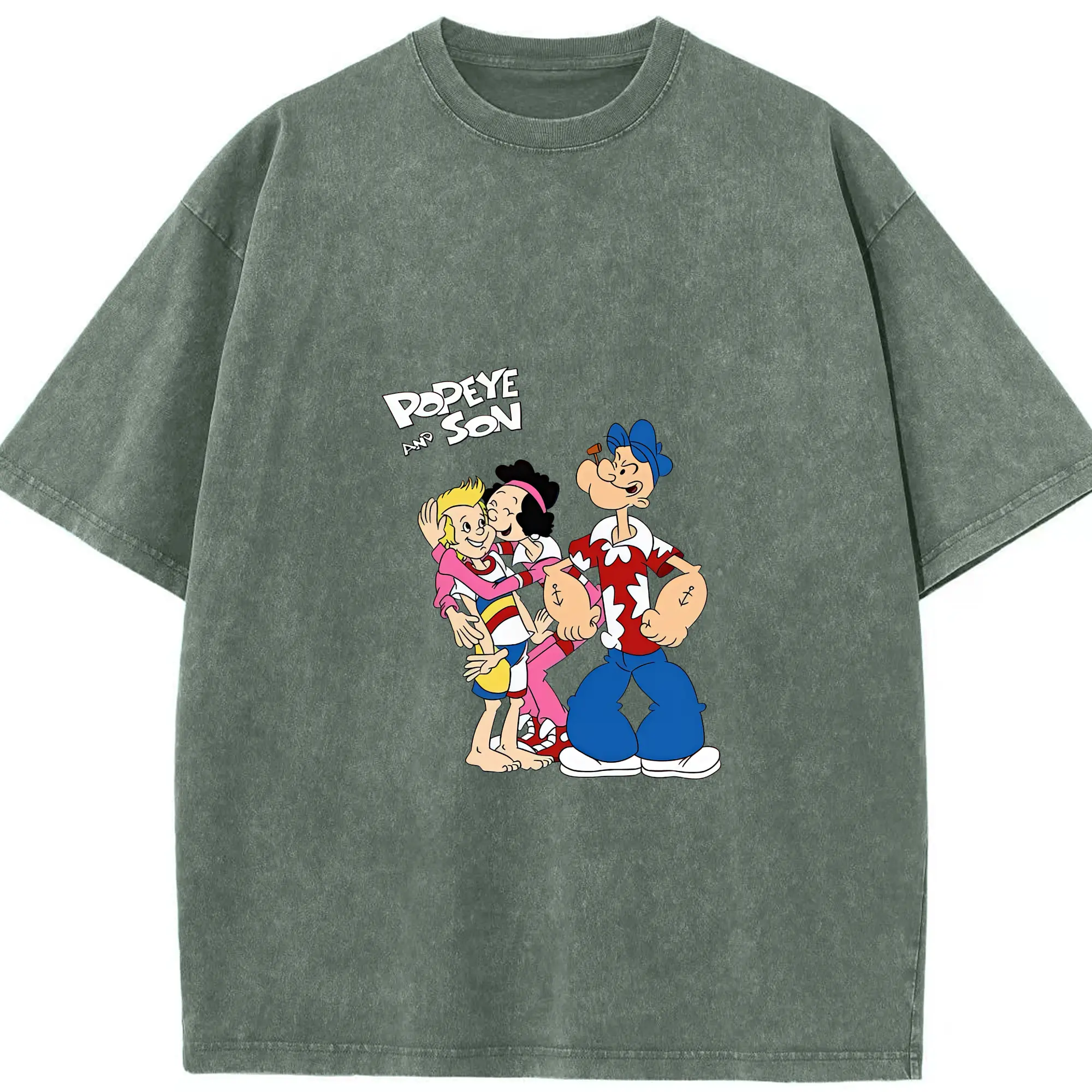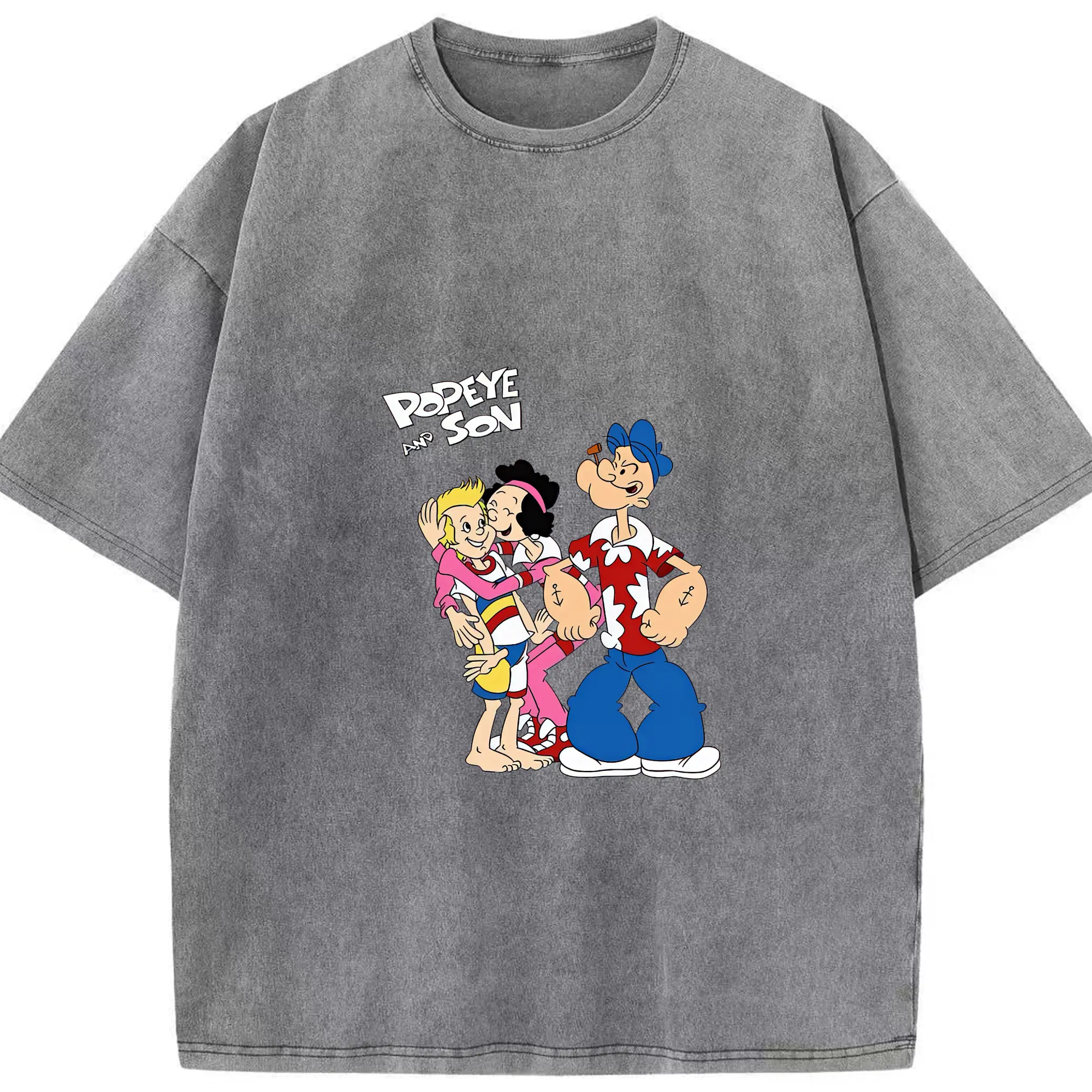 ポパイ グッズ ポパイ - 綿100% ヴィンテージ風 半袖Tシャツ ・ 背面プリント ・ 柔らか肌触り ・ 通気性 快適 ・ スポーツ カジュアル 外出用