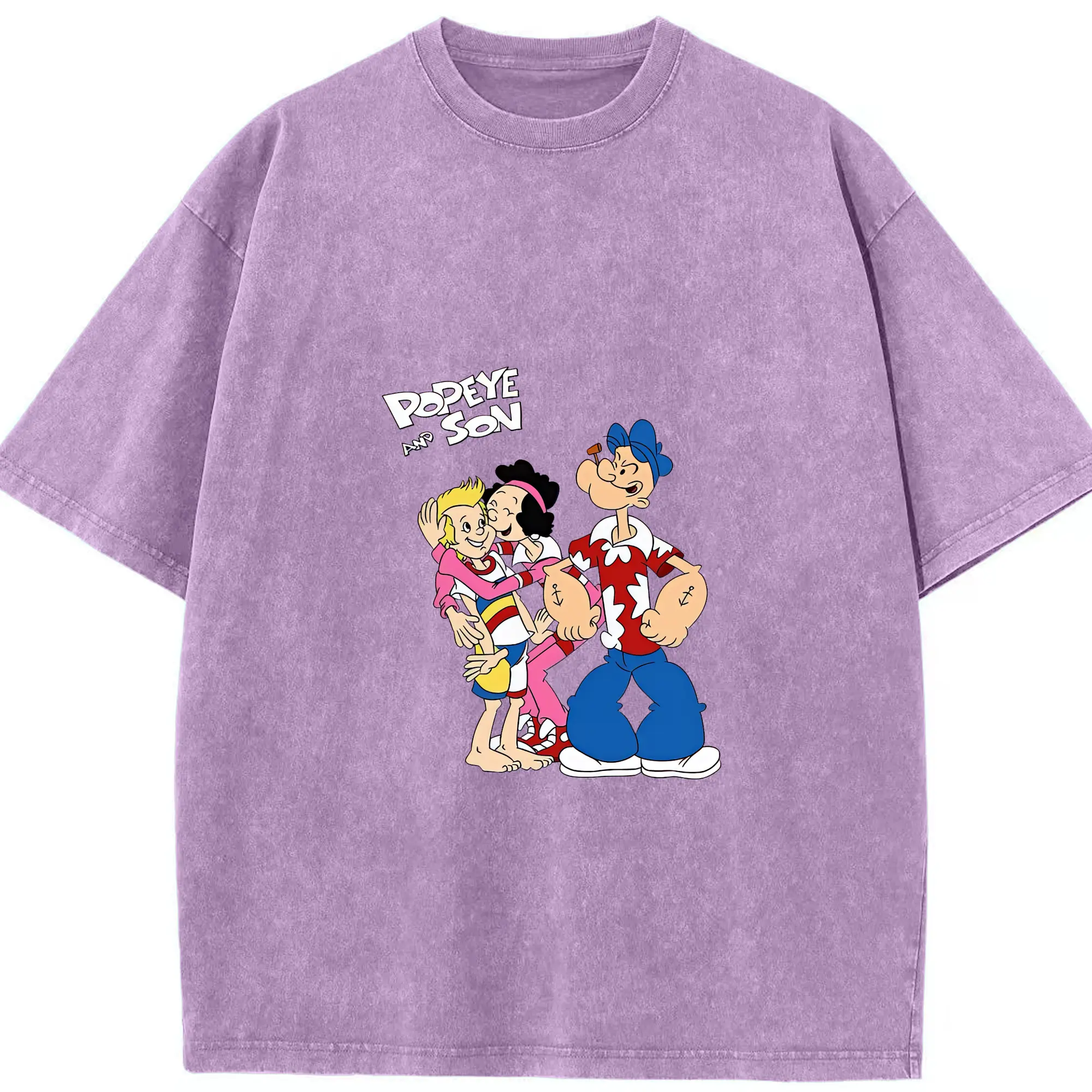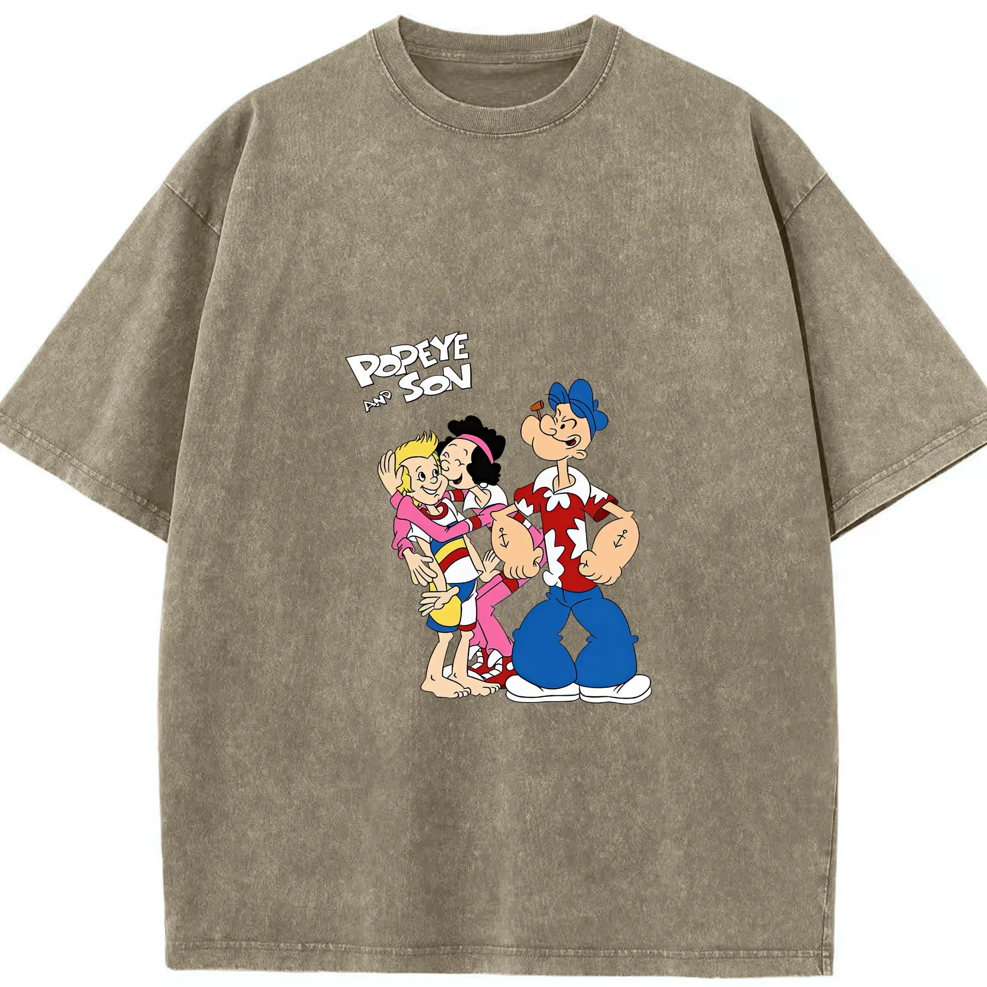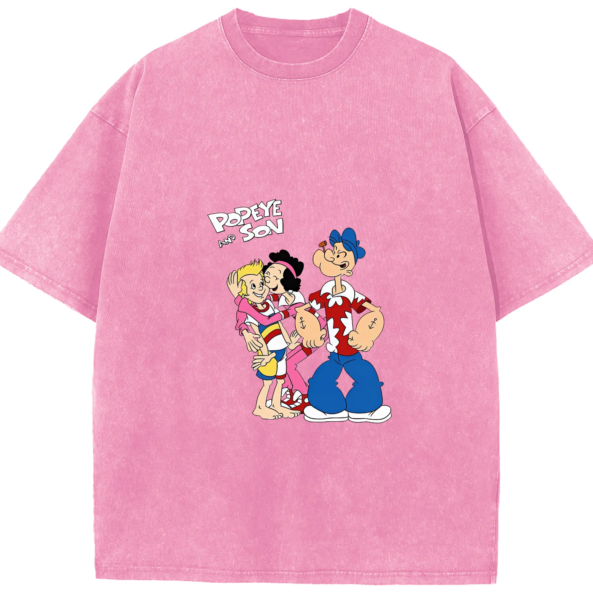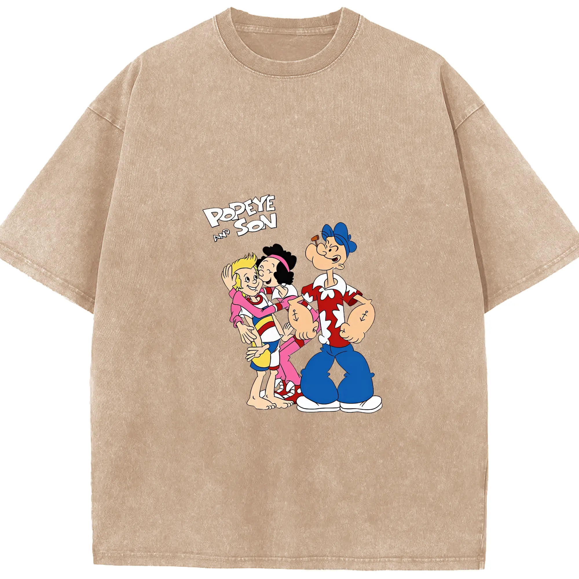 ポパイ グッズ ポパイ - 綿100% ヴィンテージ風 半袖Tシャツ ・ 背面プリント ・ 柔らか肌触り ・ 通気性 快適 ・ スポーツ カジュアル 外出用