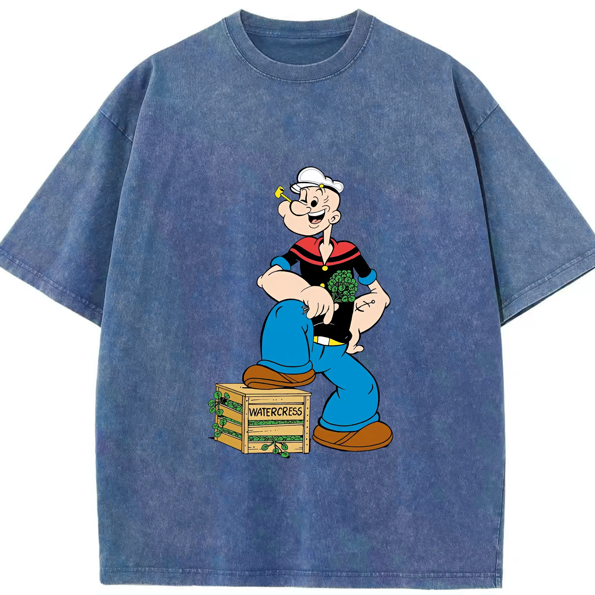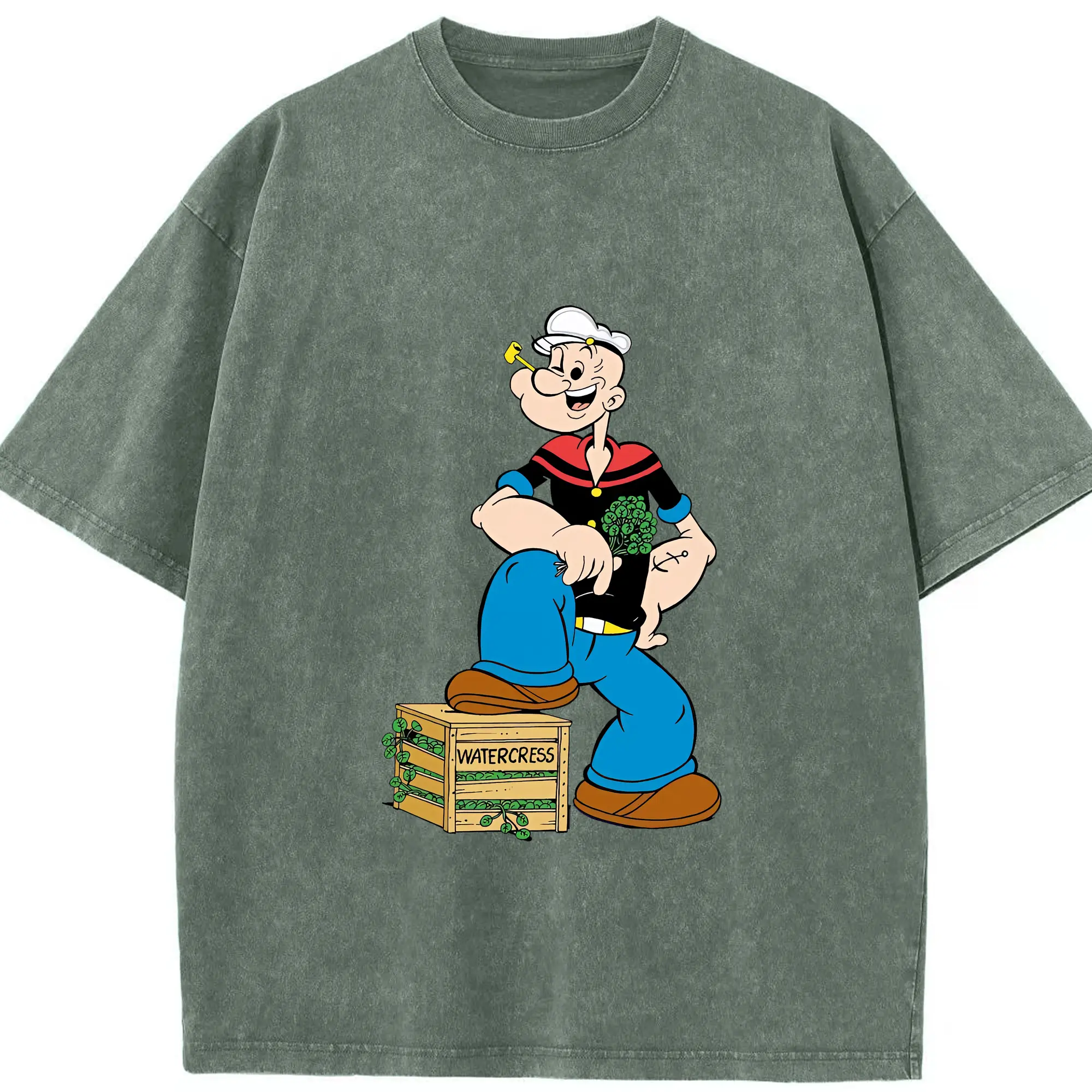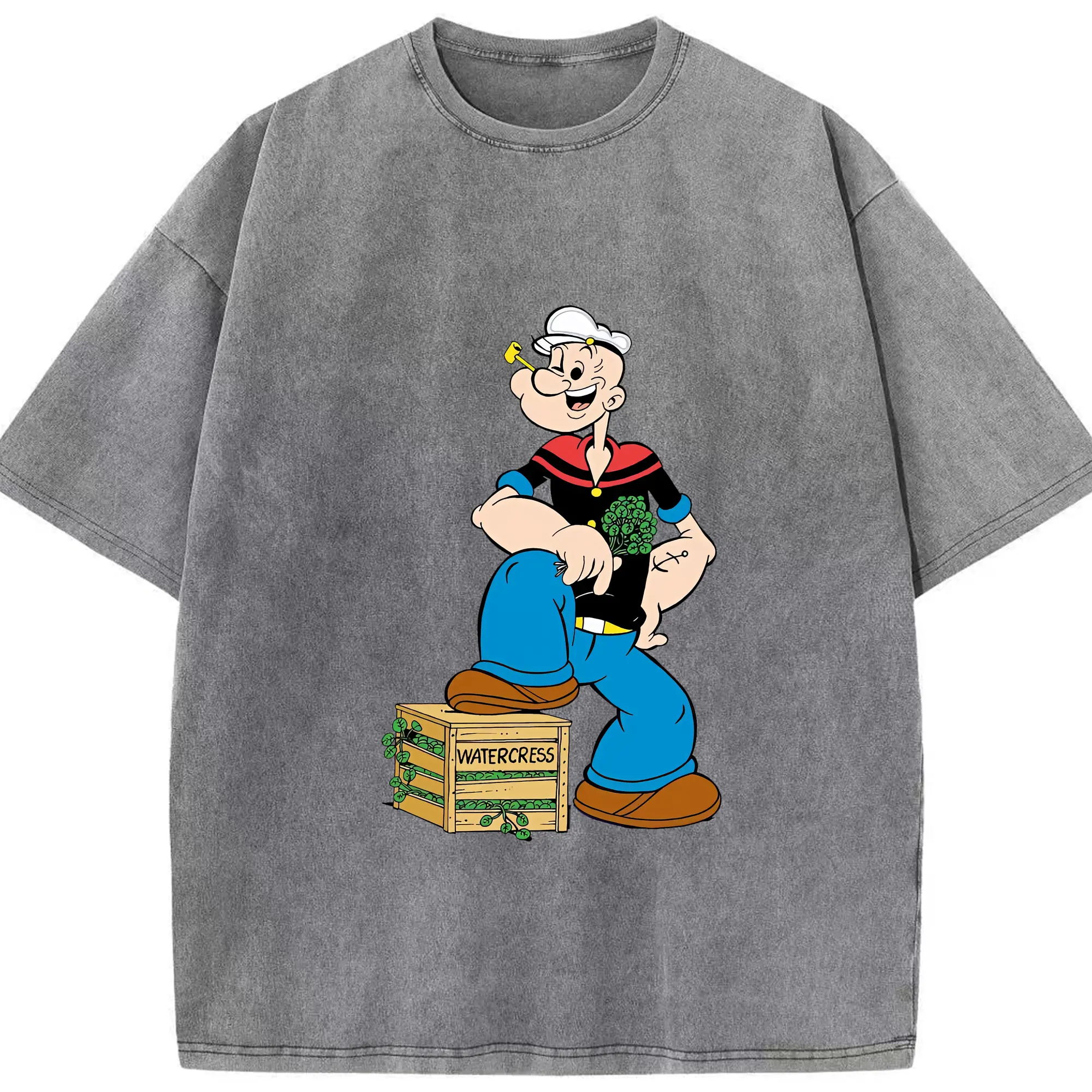 ポパイ グッズ ポパイ - 綿100% ヴィンテージ風 半袖Tシャツ ・ 背面プリント ・ 柔らか肌触り ・ 通気性 快適 ・ スポーツ カジュアル 外出用