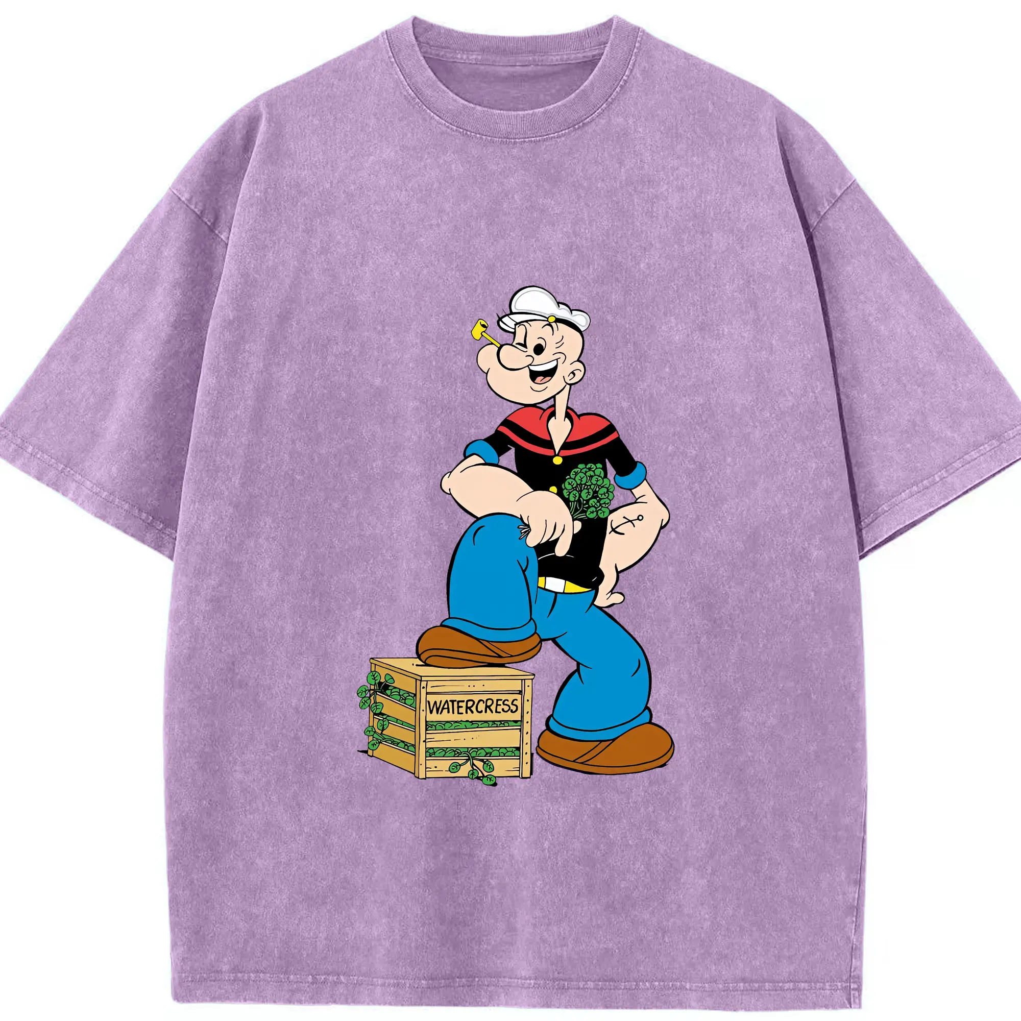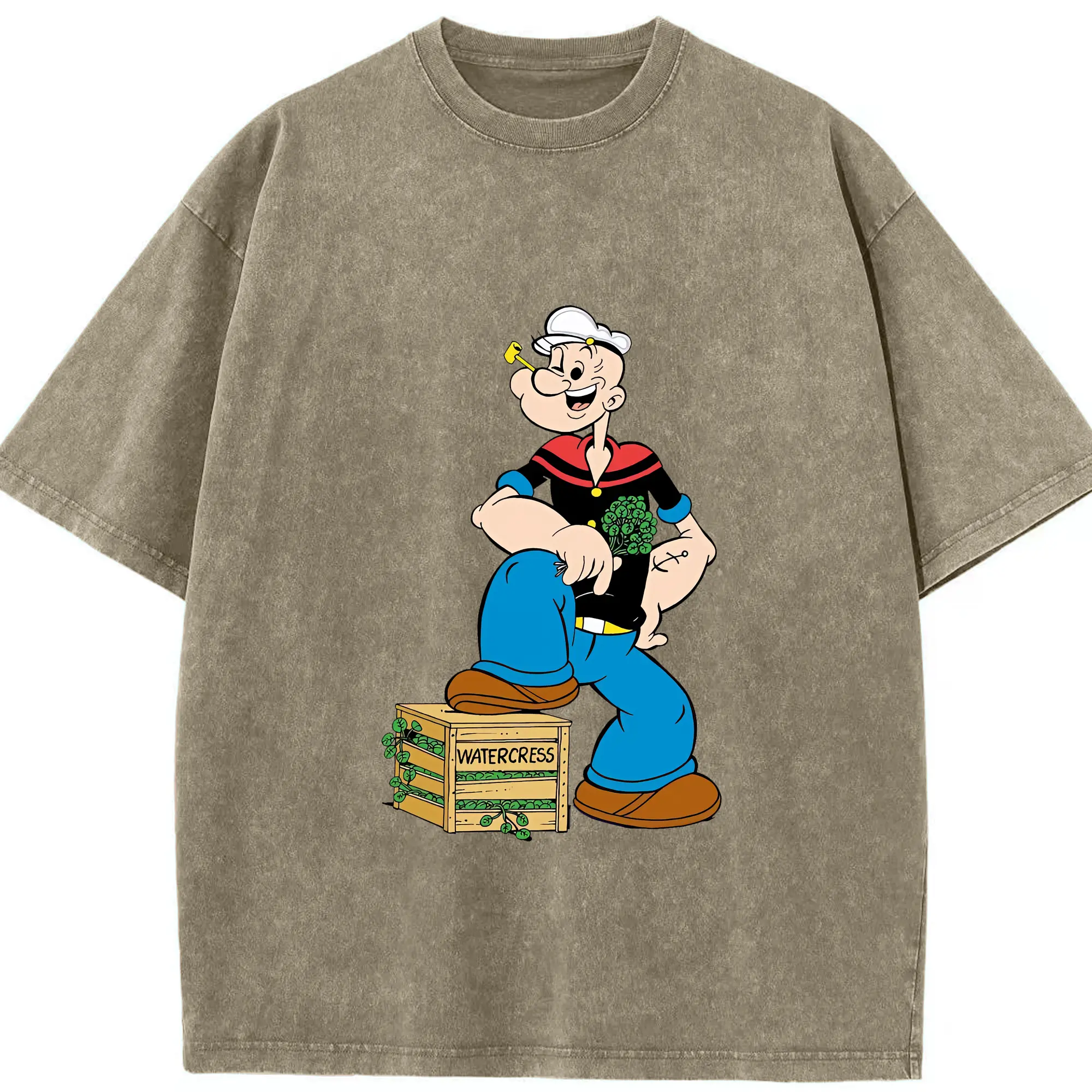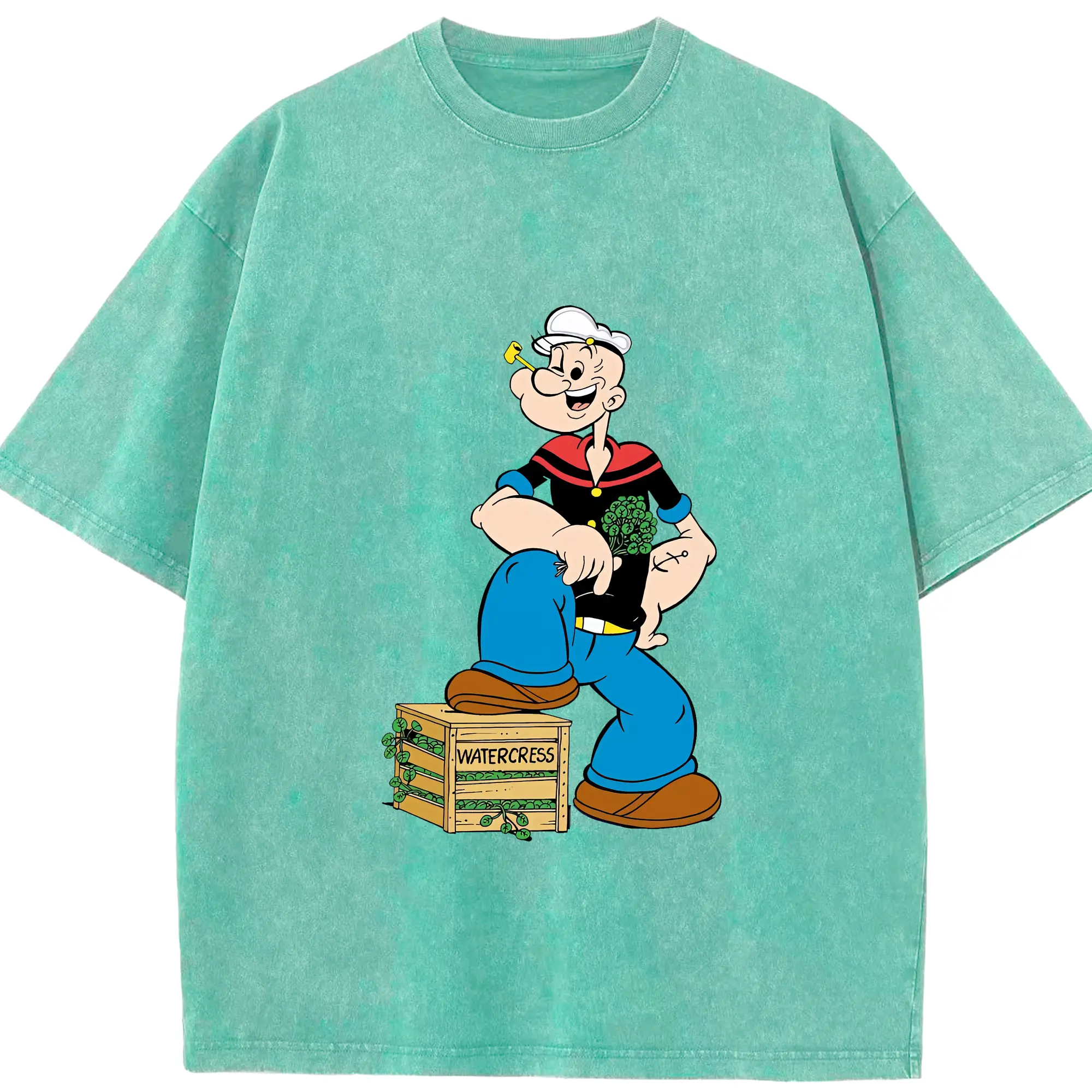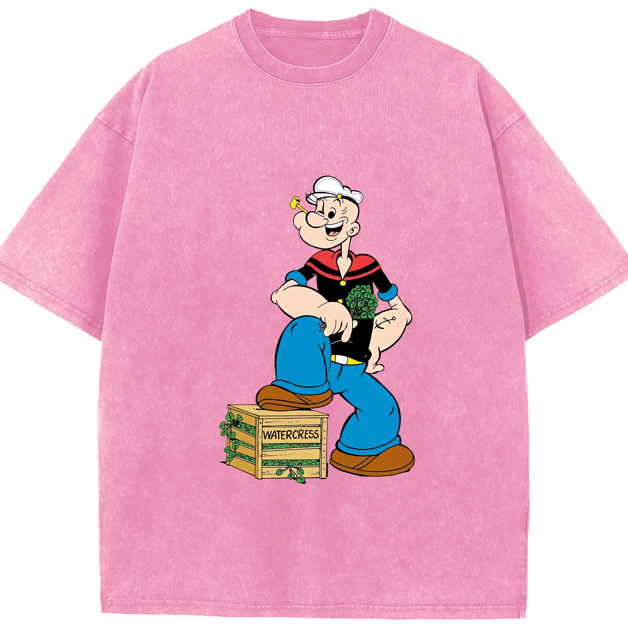 ポパイ グッズ ポパイ - 綿100% ヴィンテージ風 半袖Tシャツ ・ 背面プリント ・ 柔らか肌触り ・ 通気性 快適 ・ スポーツ カジュアル 外出用
