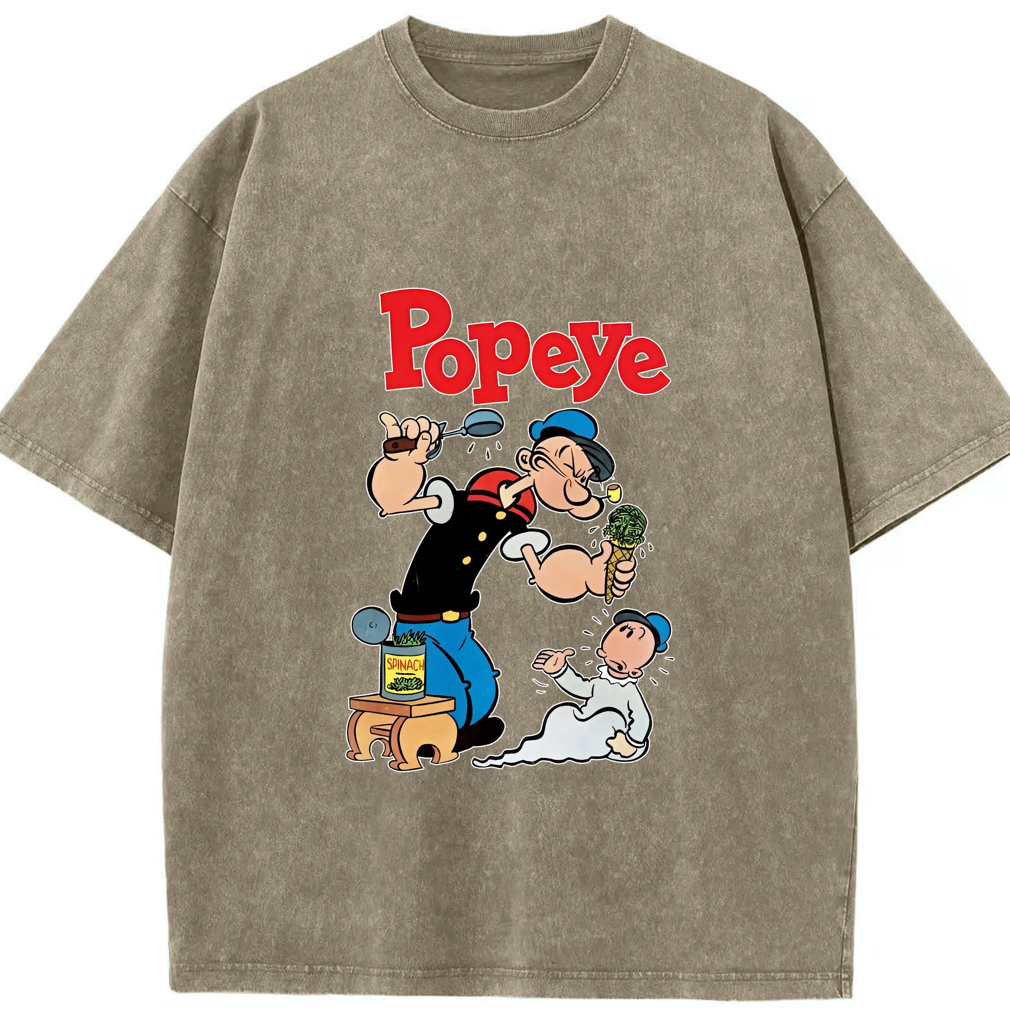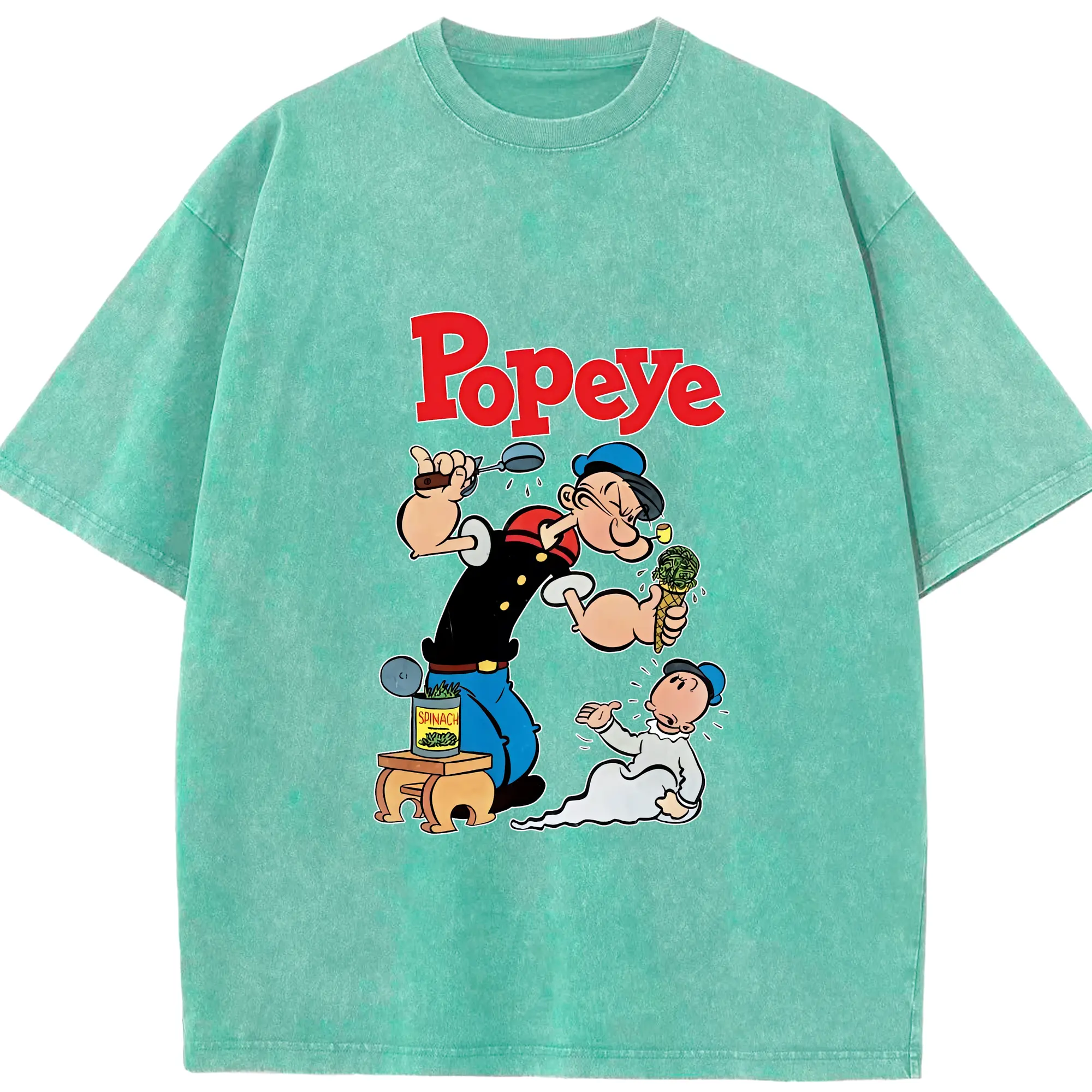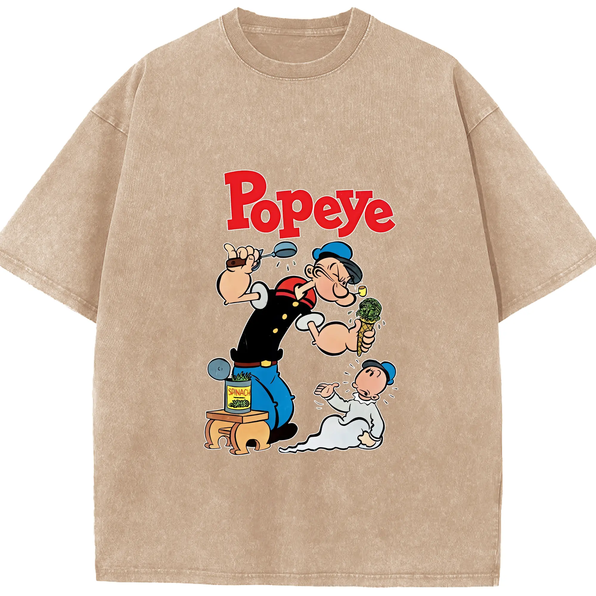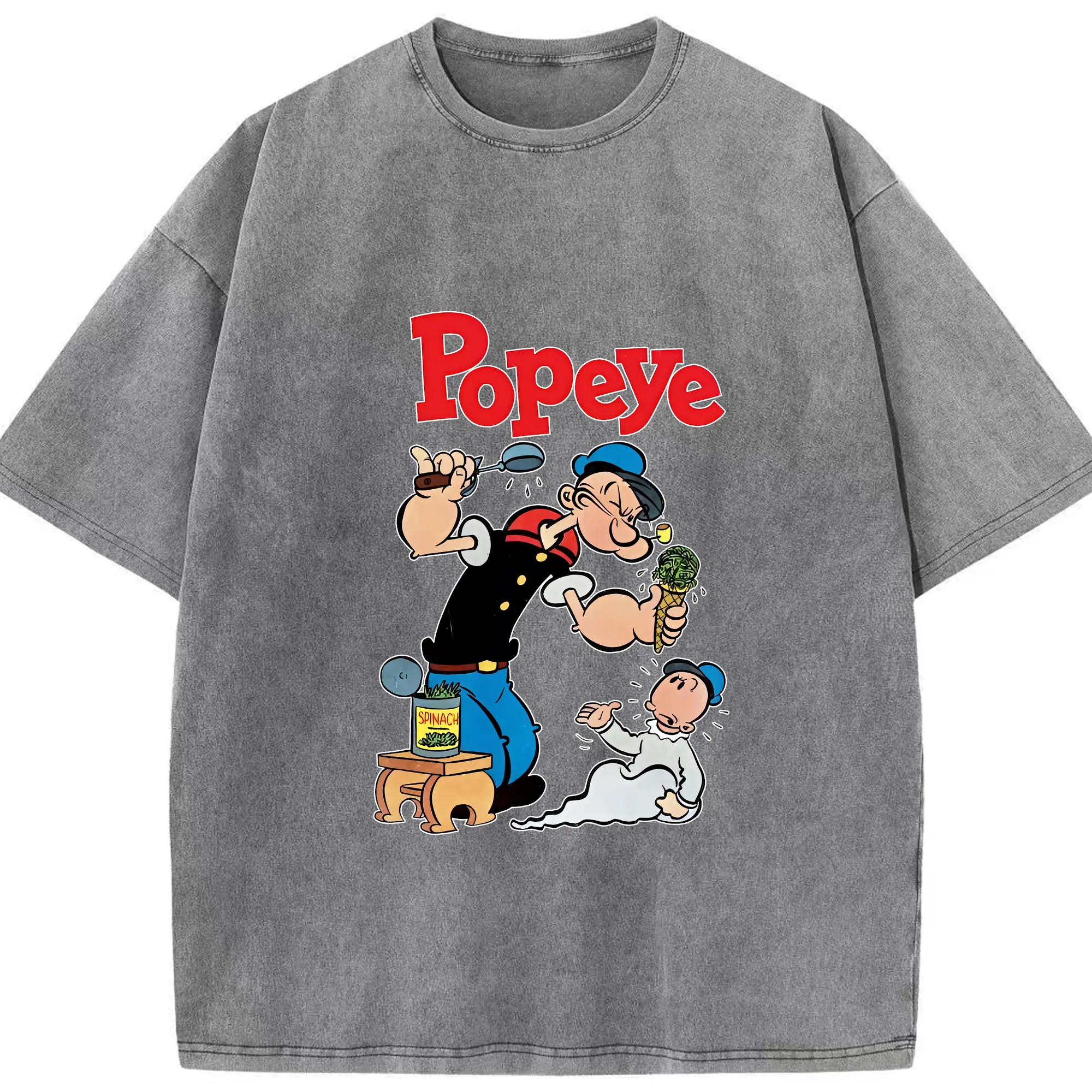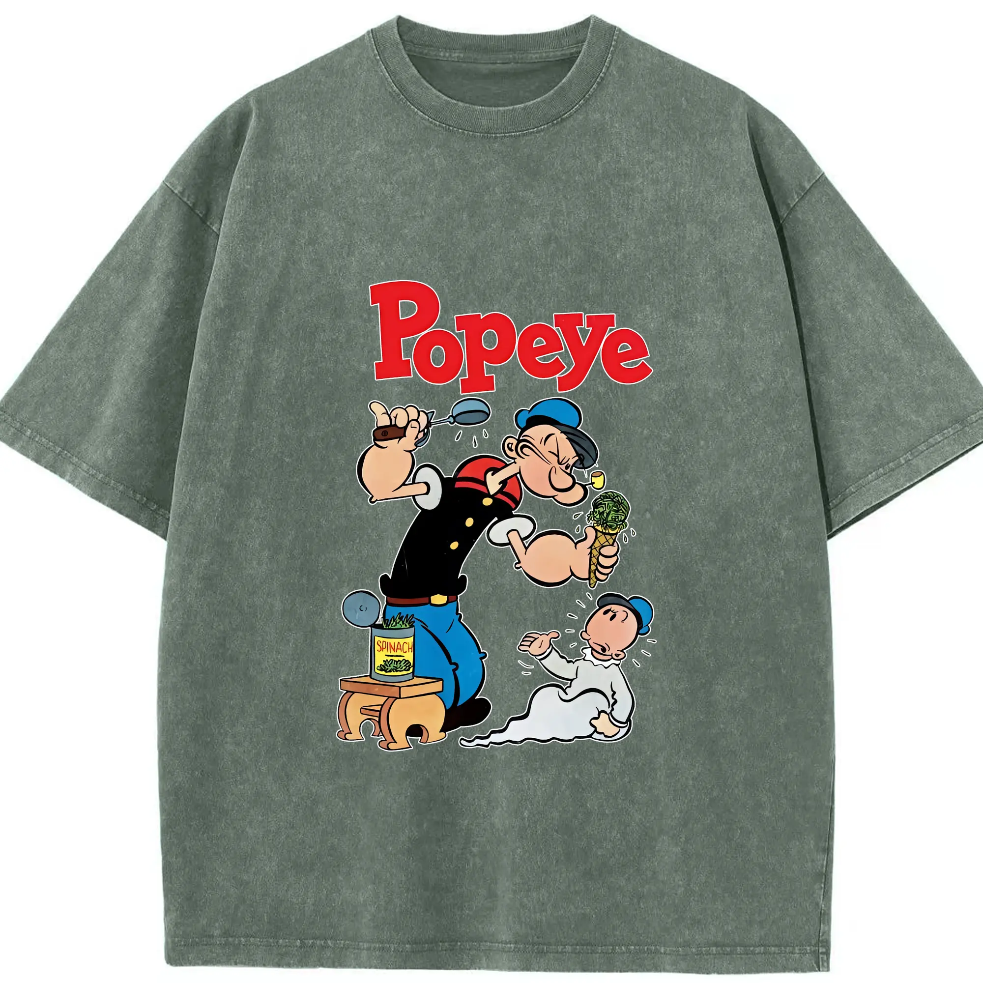 ポパイ グッズ ポパイ - 綿100% ヴィンテージ風 半袖Tシャツ ・ 背面プリント ・ 柔らか肌触り ・ 通気性 快適 ・ スポーツ カジュアル 外出用