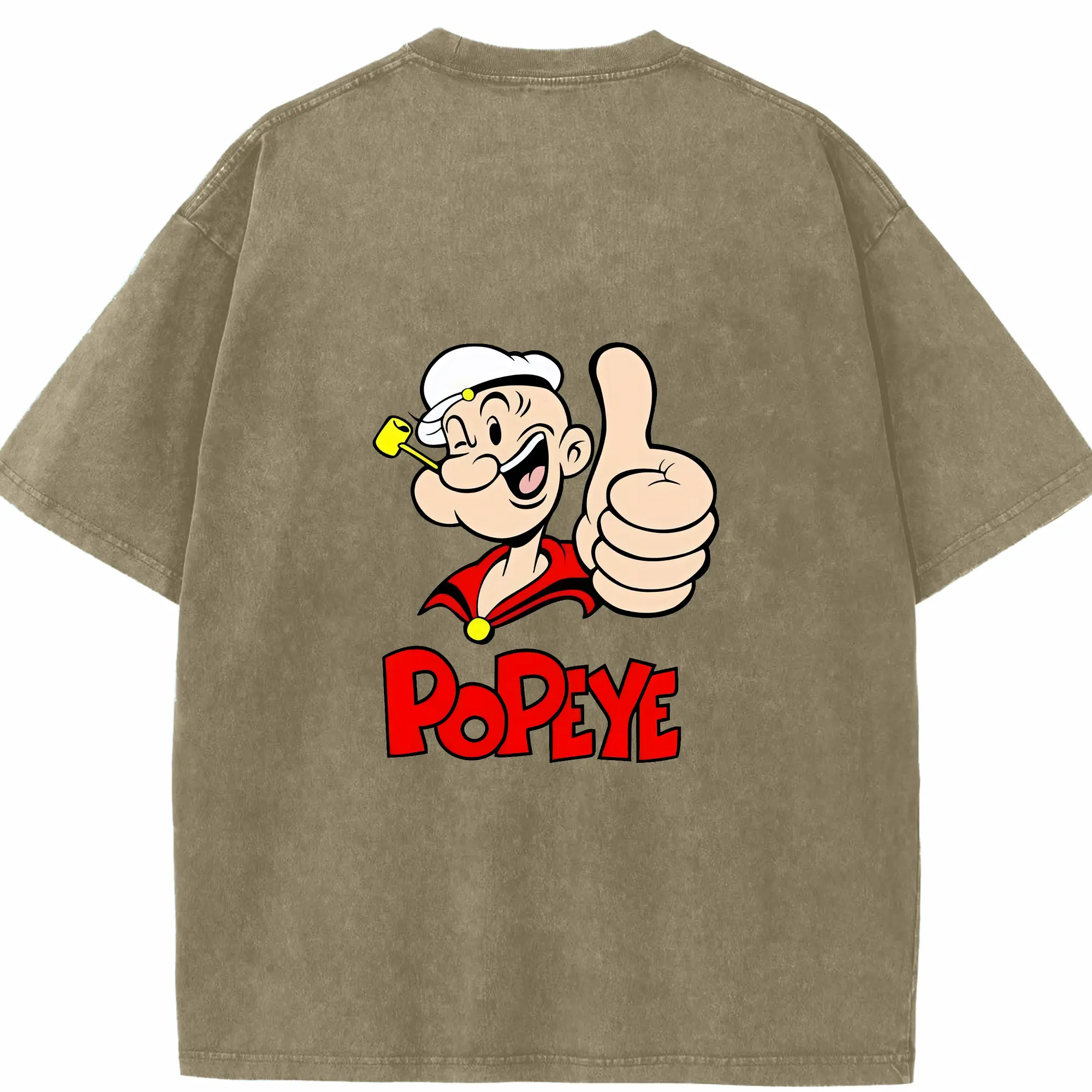 ポパイ グッズ ポパイ - 綿100% ヴィンテージ風 半袖Tシャツ ・ フロントプリント ・ 柔らか肌触り ・ 通気性 快適 ・ スポーツ カジュアル 外出用
