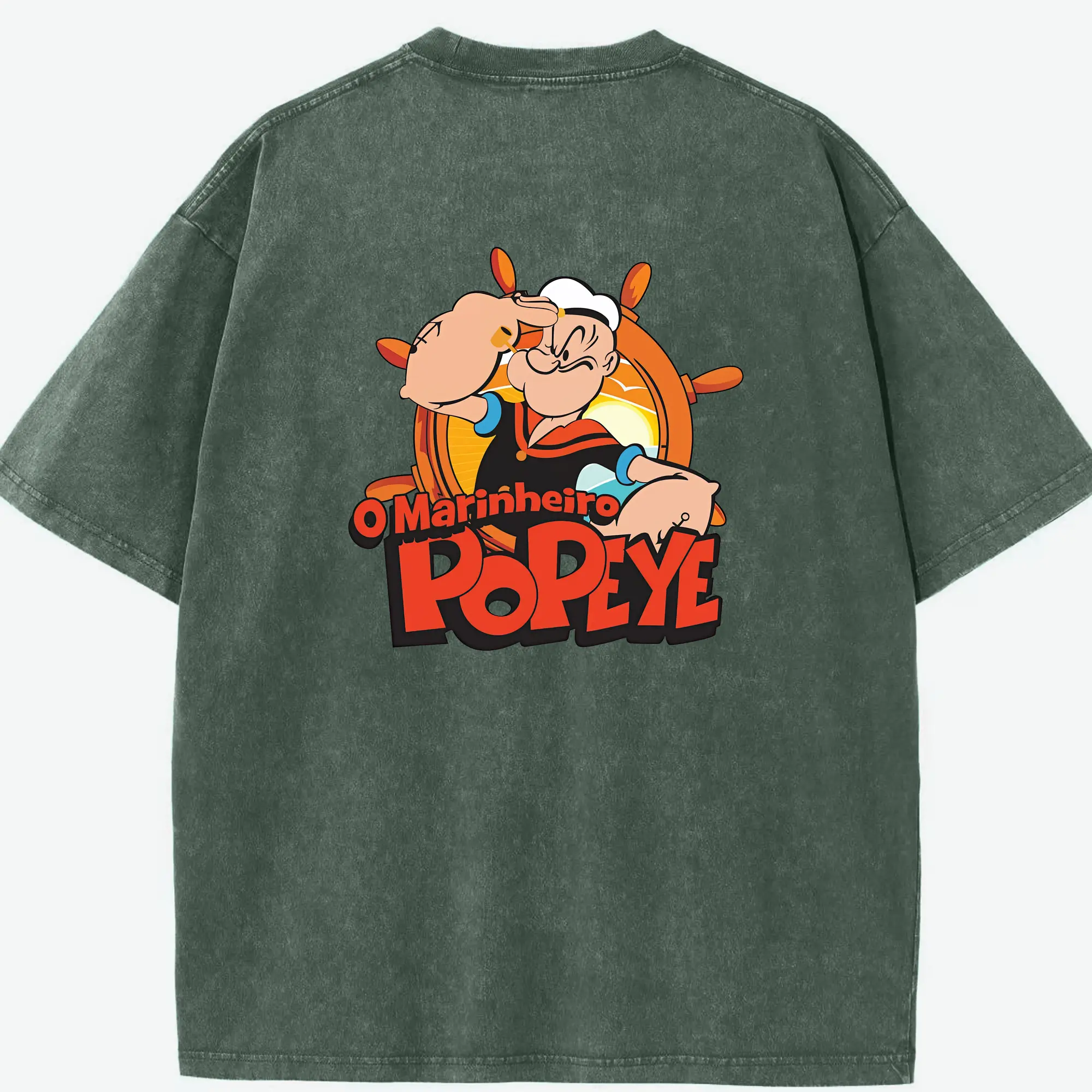 ポパイ グッズ ポパイ - 綿100% ヴィンテージ風 半袖Tシャツ ・ フロントプリント ・ 柔らか肌触り ・ 通気性 快適 ・ スポーツ カジュアル 外出用