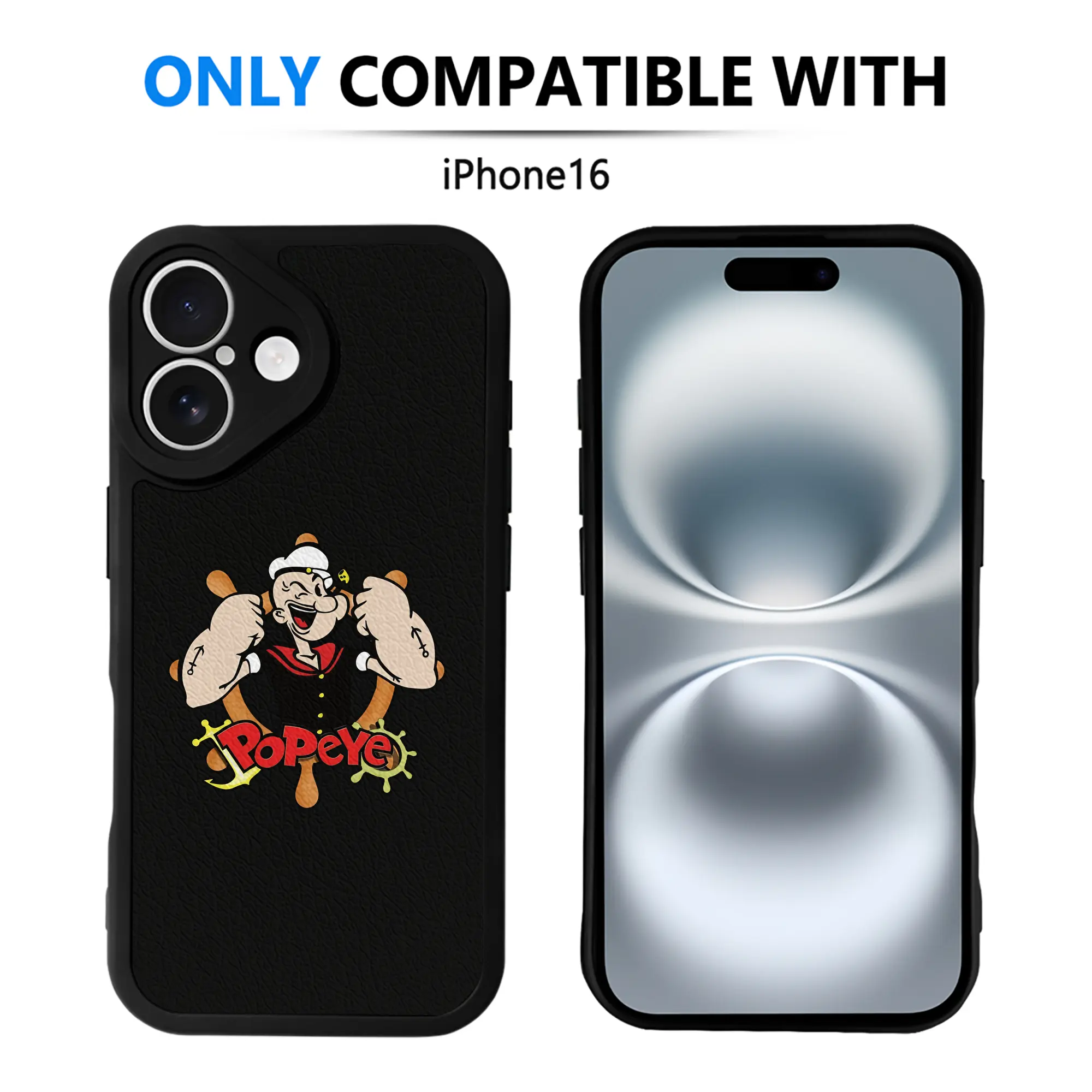 ポパイ グッズ ポパイ - IPhone 16シリーズ対応 ・ シリコンスマホケース ・ レザー調 ・ 高精度フィット ・ 耐衝撃 ・ ワイヤレス充電対応 ・ 精密カット