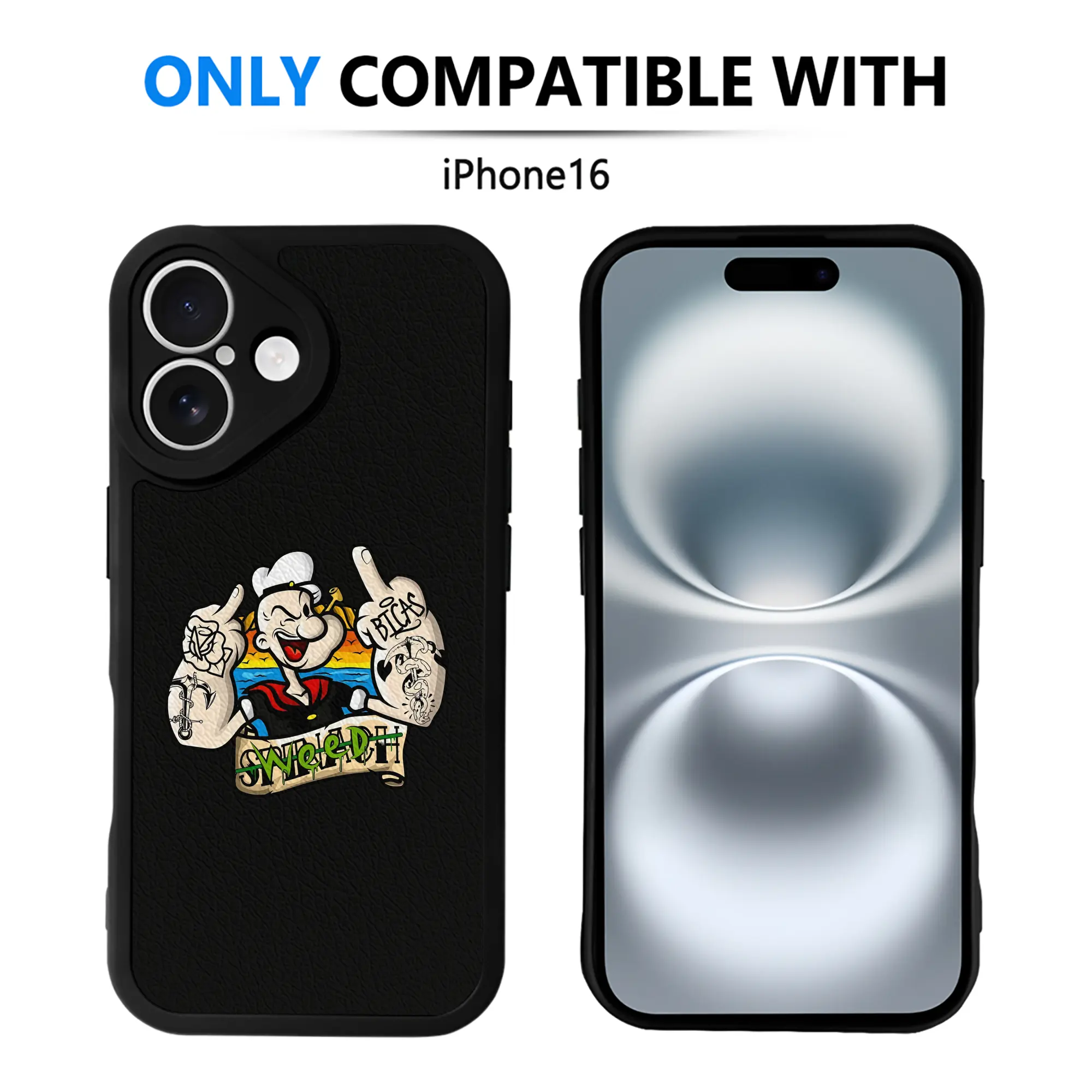 ポパイ グッズ ポパイ - IPhone 16シリーズ対応 ・ シリコンスマホケース ・ レザー調 ・ 高精度フィット ・ 耐衝撃 ・ ワイヤレス充電対応 ・ 精密カット
