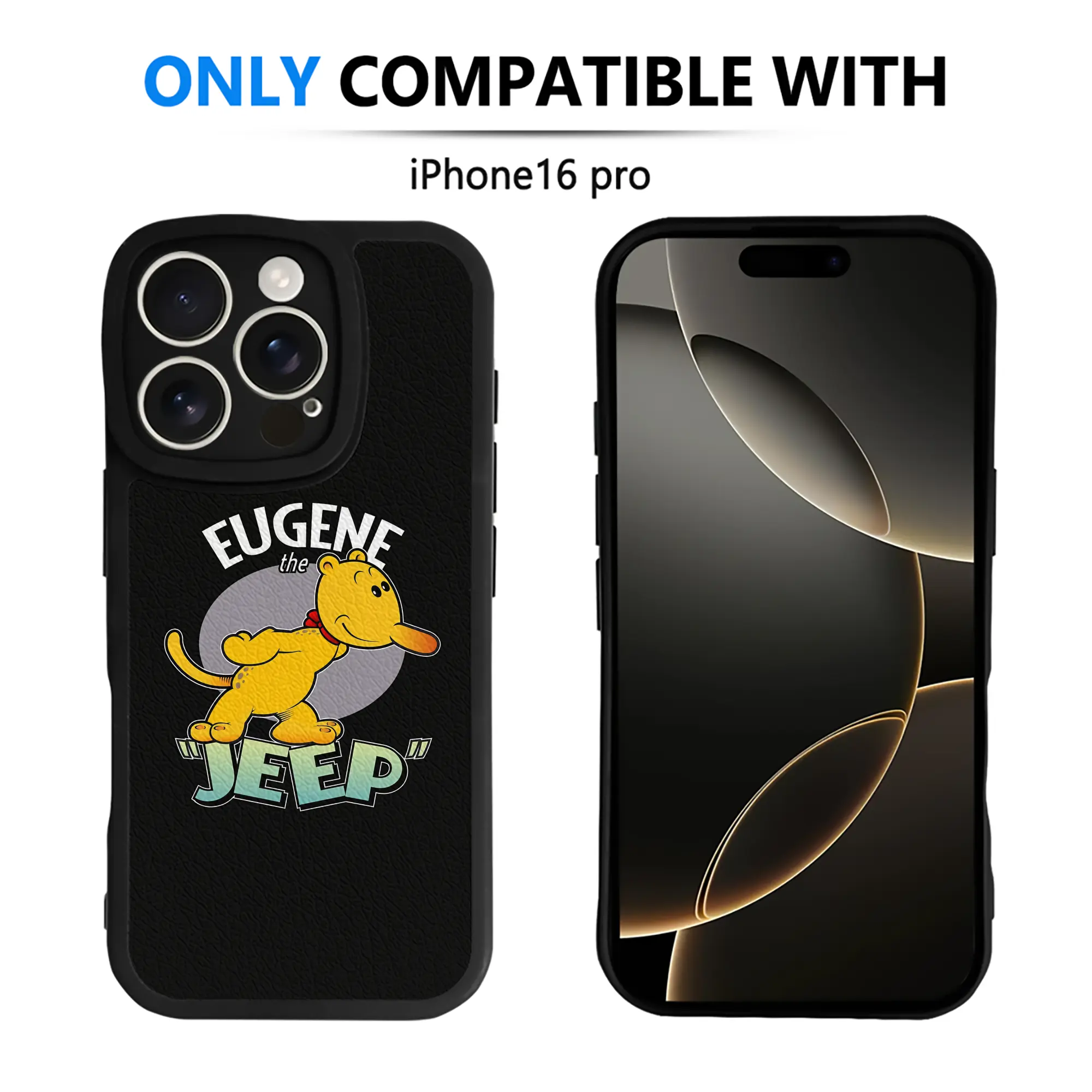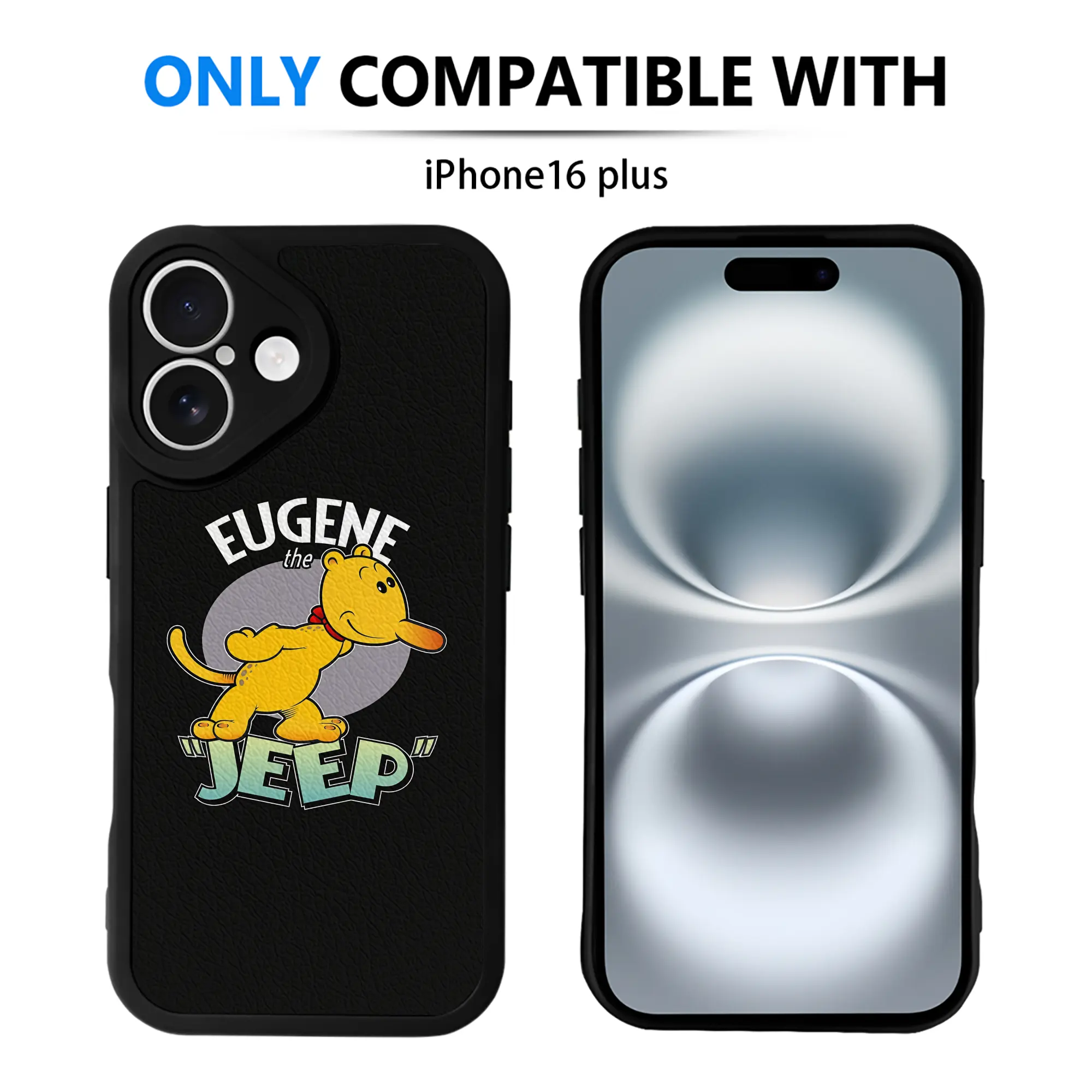 ポパイ グッズ ユージーン・ザ・ジープ - IPhone 16シリーズ対応 ・ シリコンスマホケース ・ レザー調 ・ 高精度フィット ・ 耐衝撃 ・ ワイヤレス充電対応 ・ 精密カット