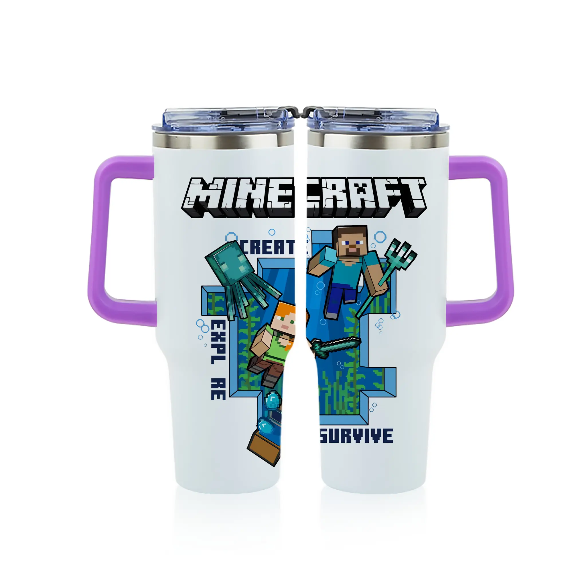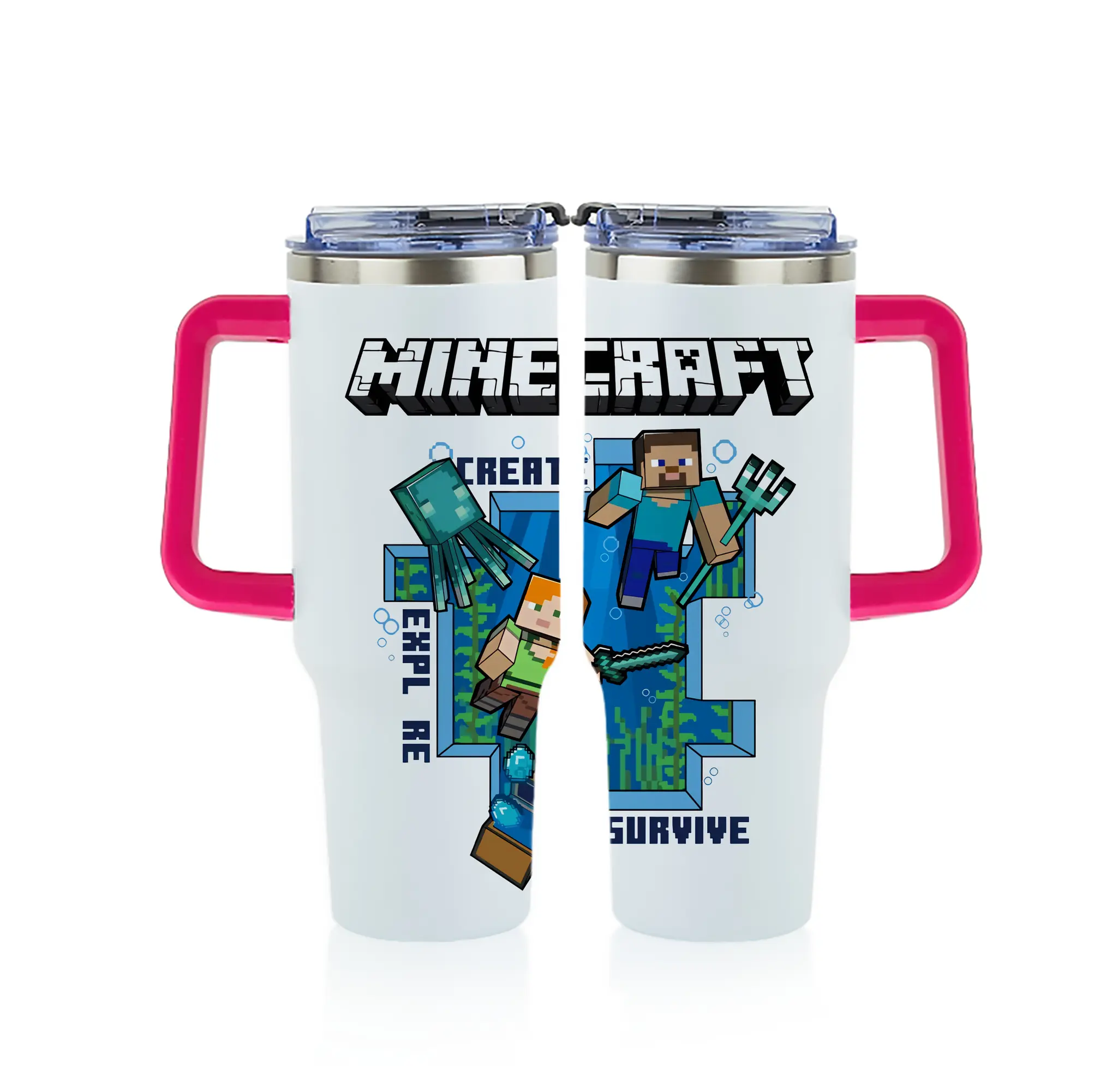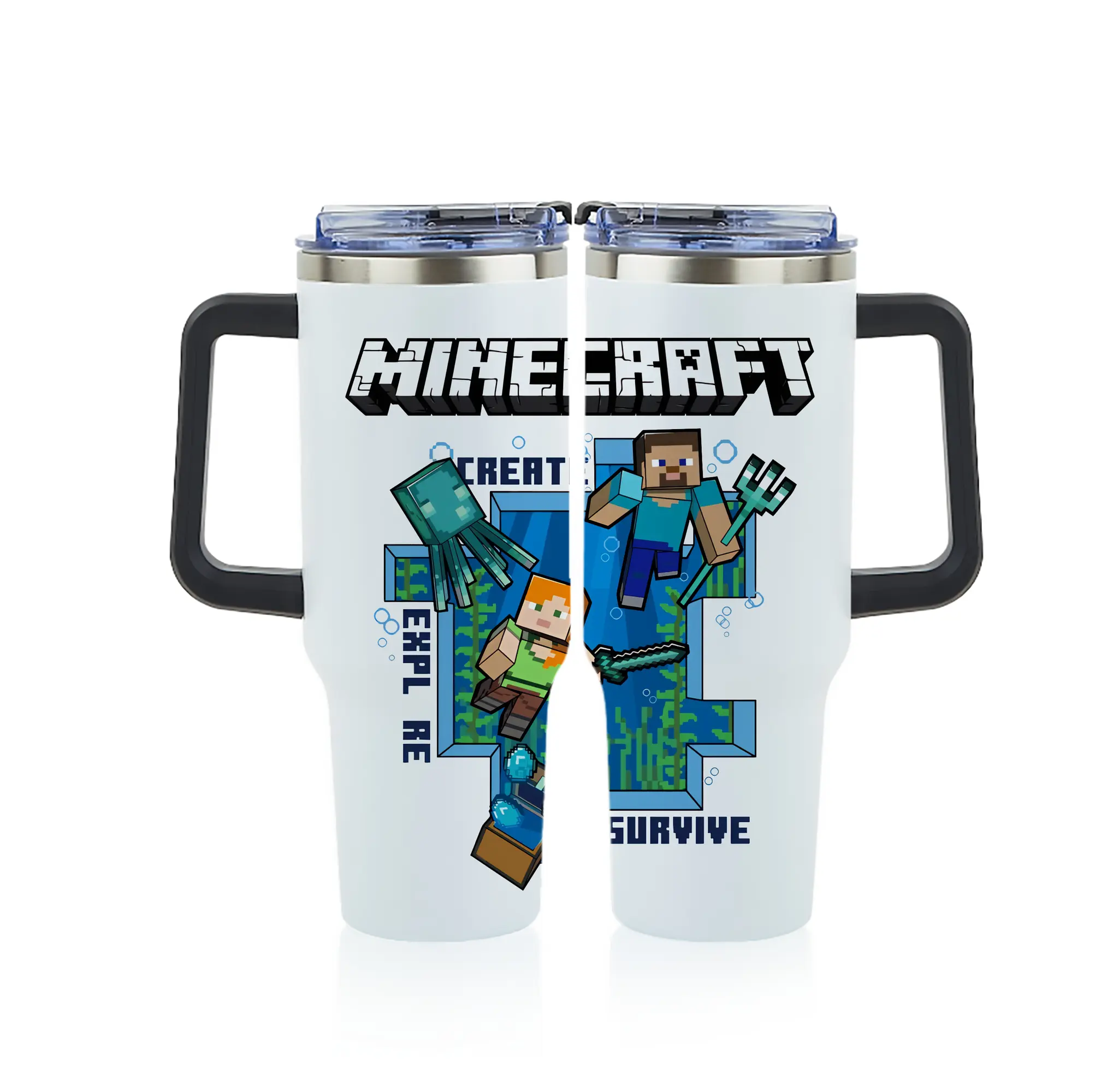 マイクラ グッズ マイクラ - 1200mL フルプリント車用タンブラー ・ 304ステンレス 内側 ・ 201ステンレス 外側 ・ 保温 保冷 ・ 通勤 ドライブ アウトドア用