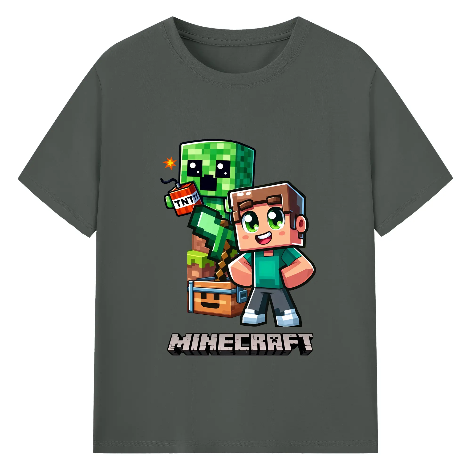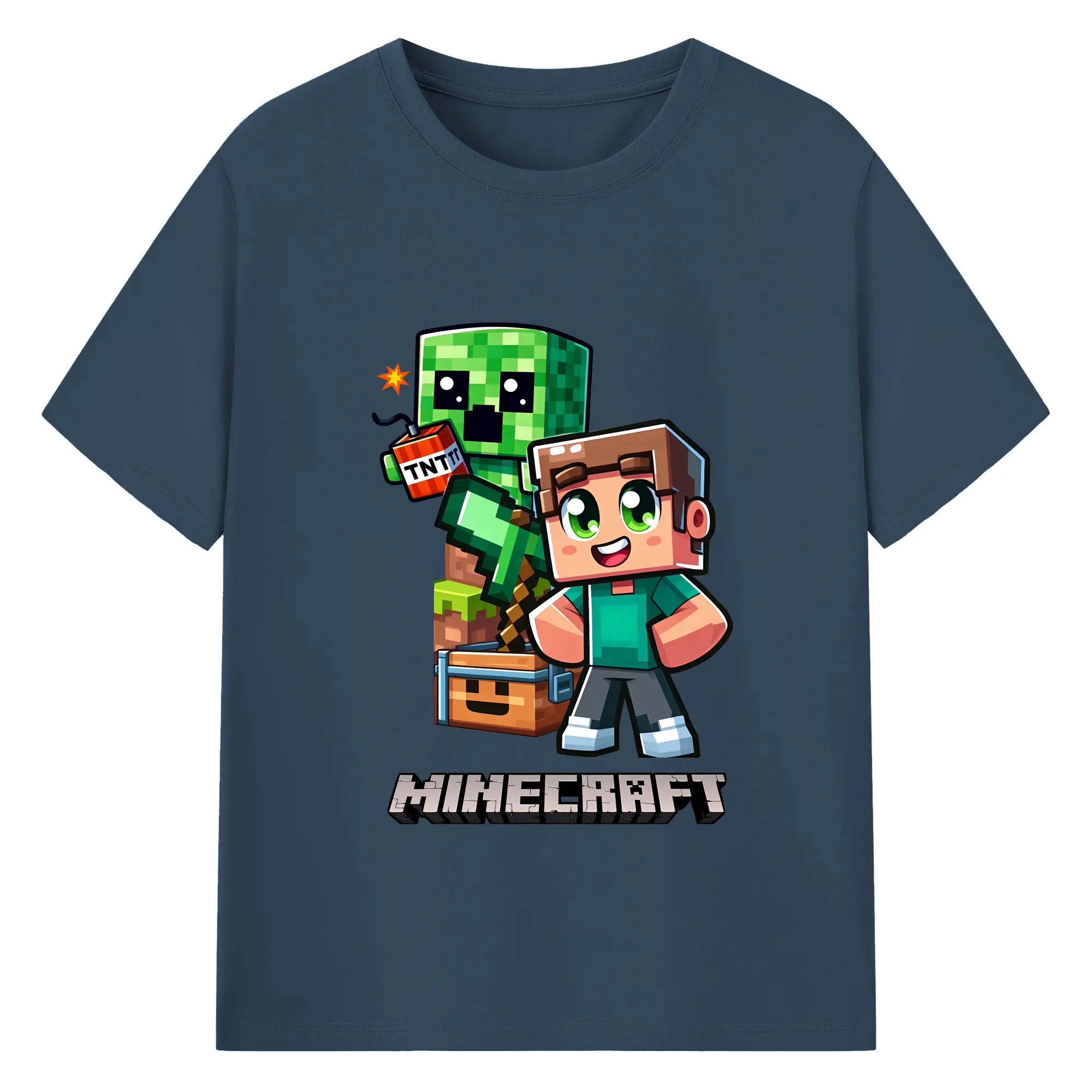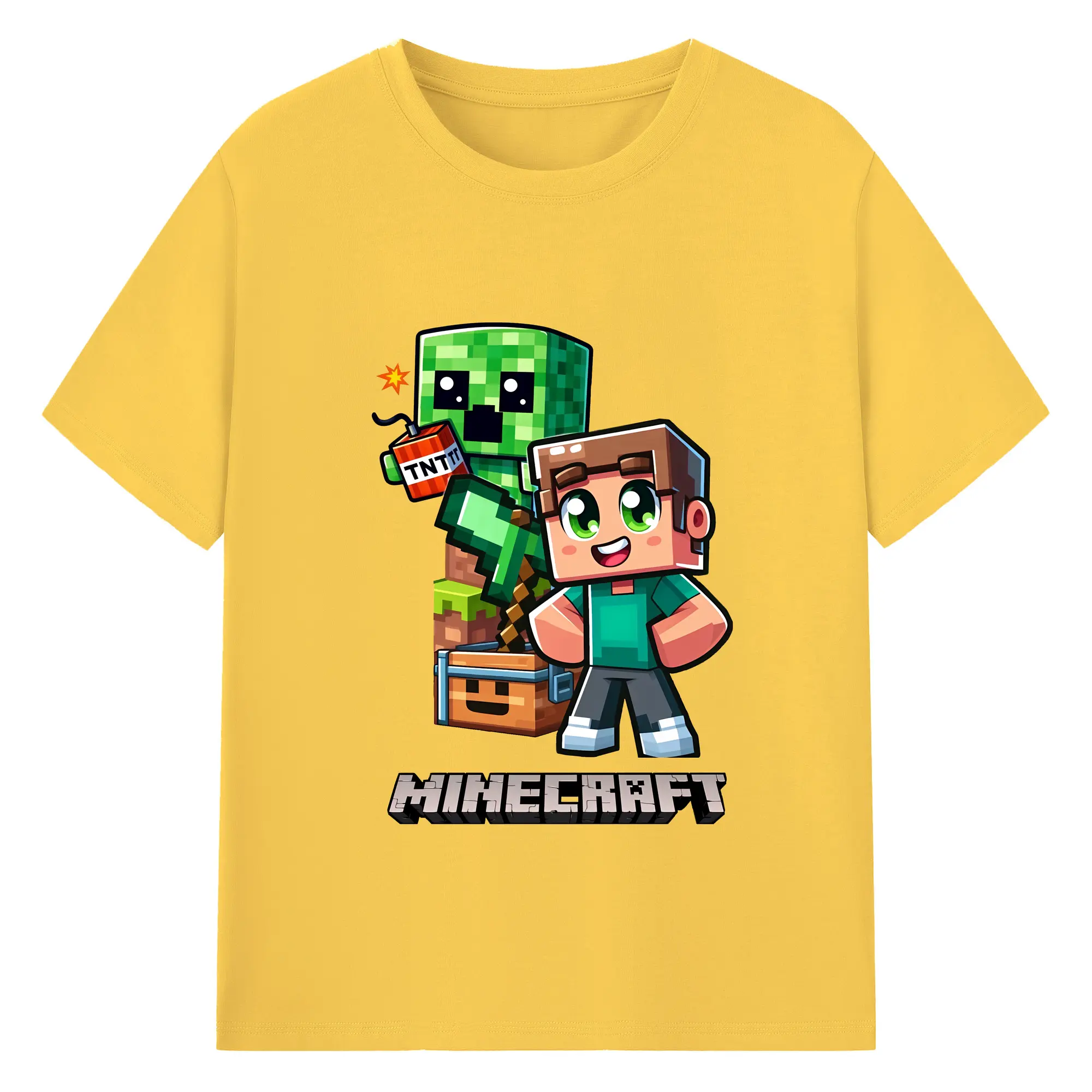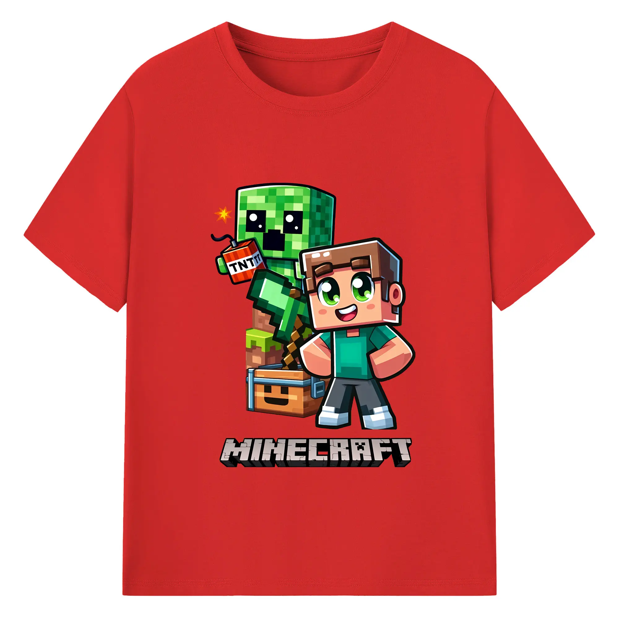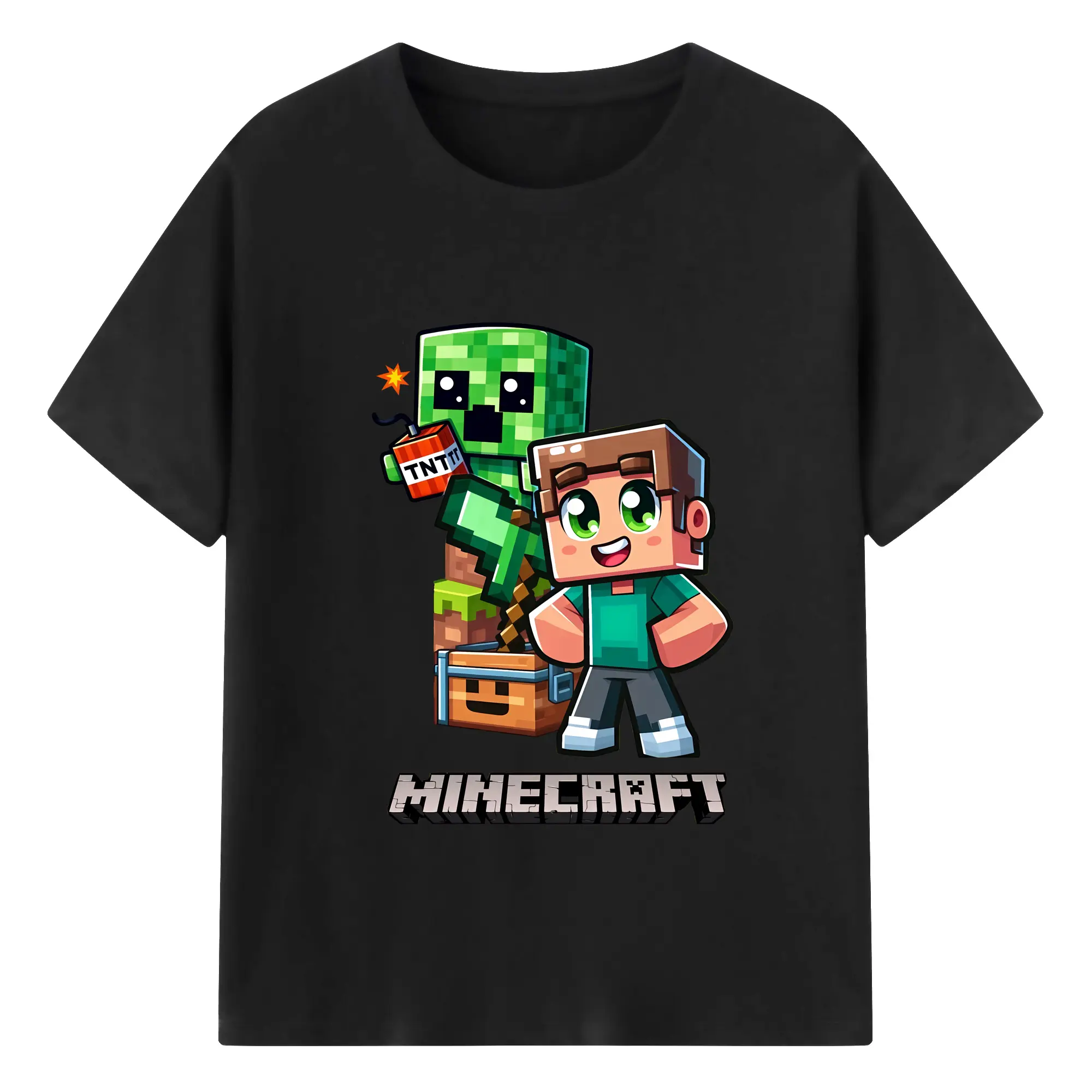 マイクラ グッズ マイクラ - 綿100% キッズTシャツ ・ フロントプリント ・ 快適 通気性 ・ スポーツ カジュアル 散歩用