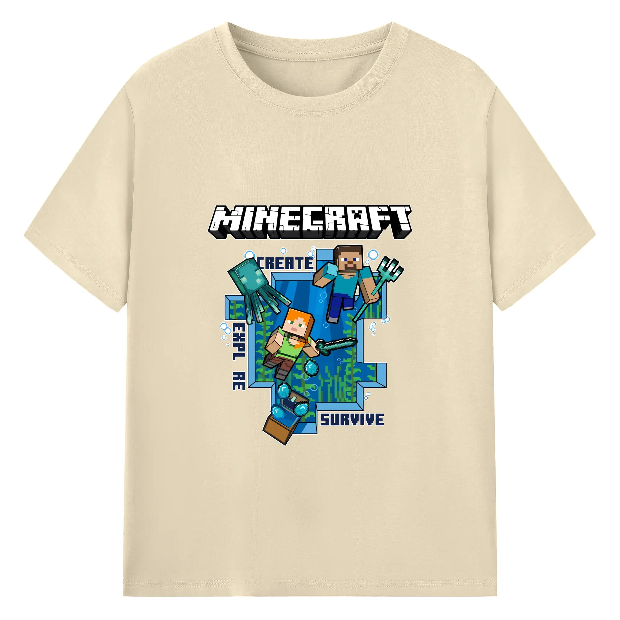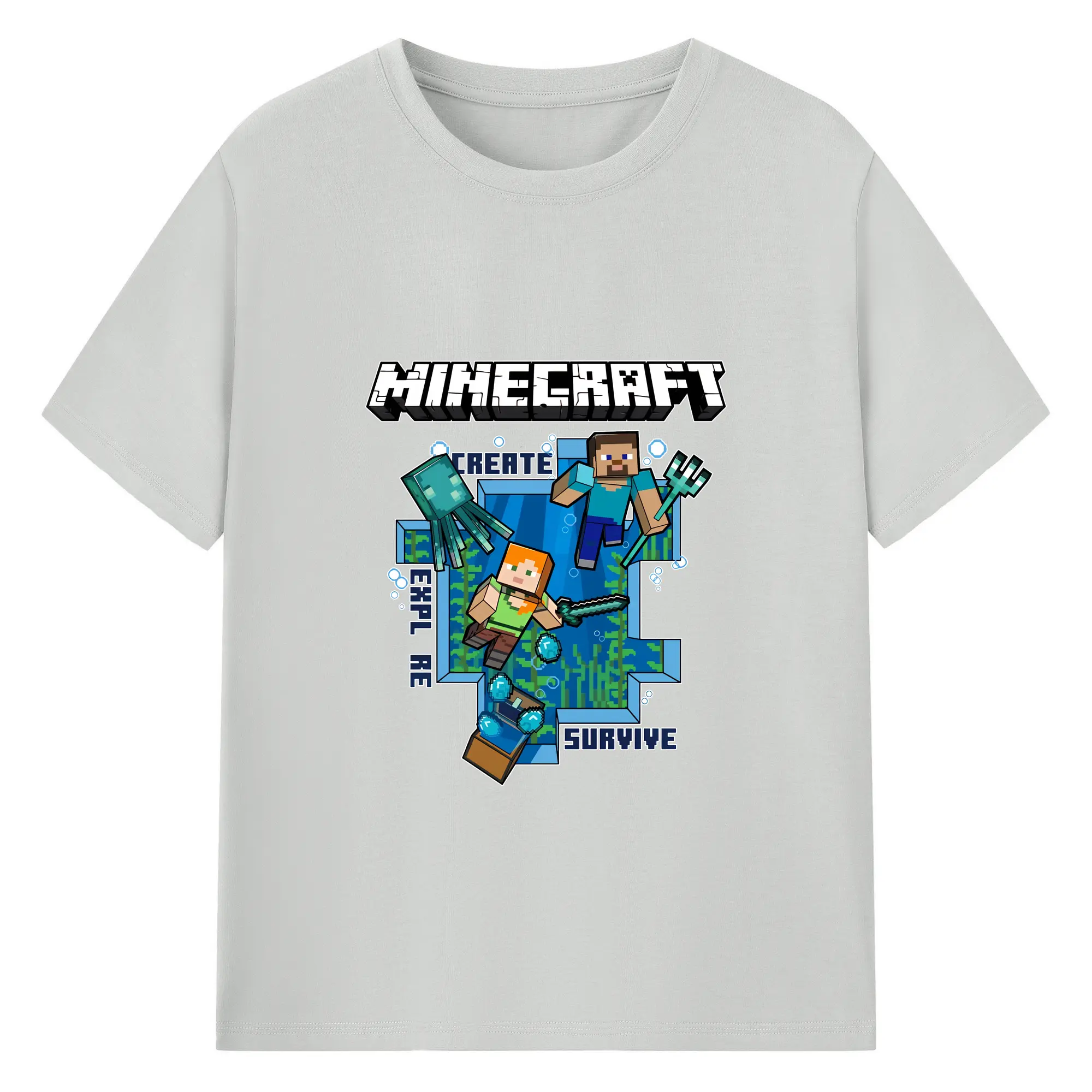 マイクラ グッズ マイクラ - 綿100% 半袖Tシャツ ・ バックプリント ・ 快適 通気性 ・ 日常使い 散歩 スポーツ用