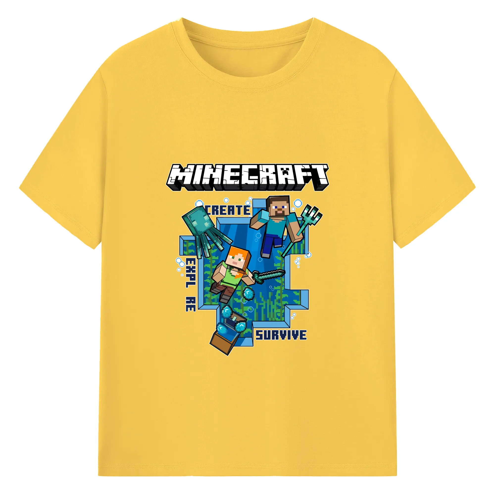 マイクラ グッズ マイクラ - 綿100% キッズTシャツ ・ フロントプリント ・ 快適 通気性 ・ スポーツ カジュアル 散歩用