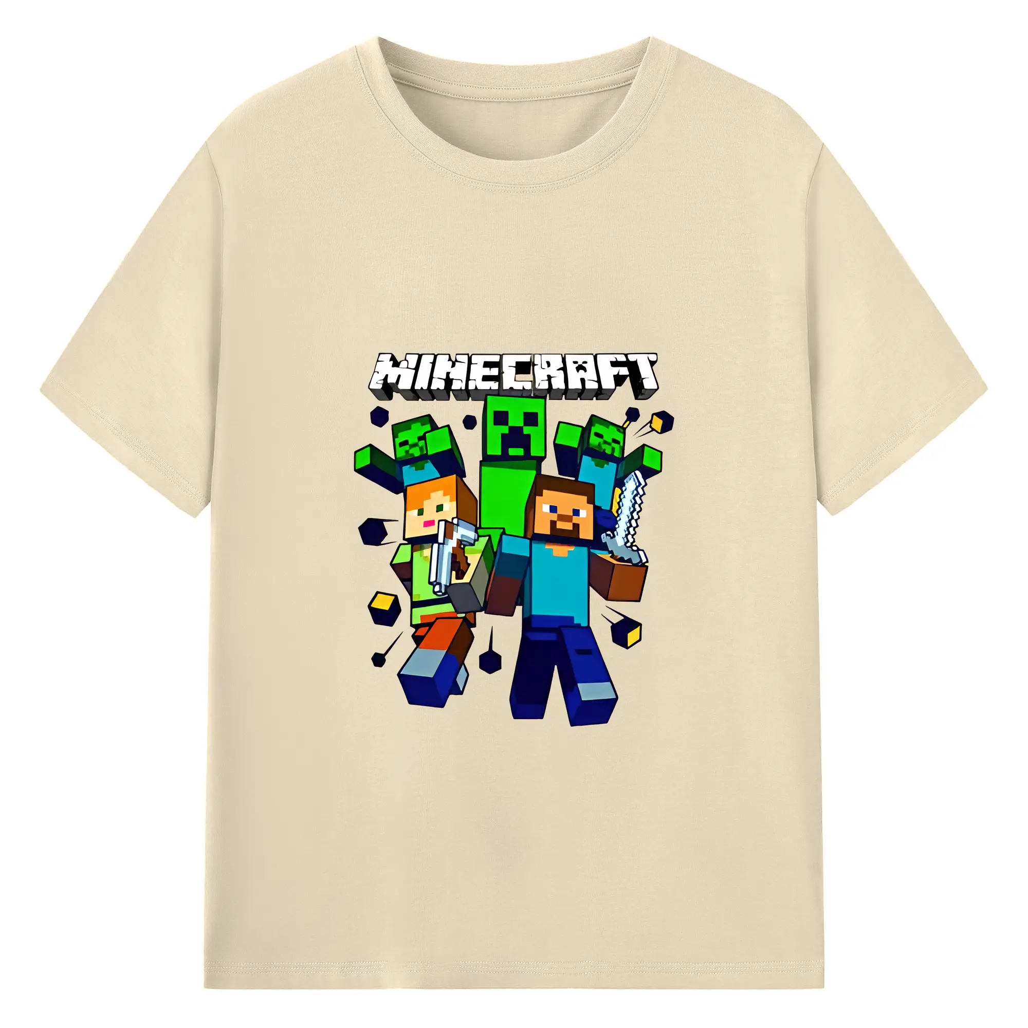 マイクラ グッズ マイクラ - 綿100% ヴィンテージ風 半袖Tシャツ ・ フロントプリント ・ 柔らか肌触り ・ 通気性 快適 ・ スポーツ カジュアル 外出用