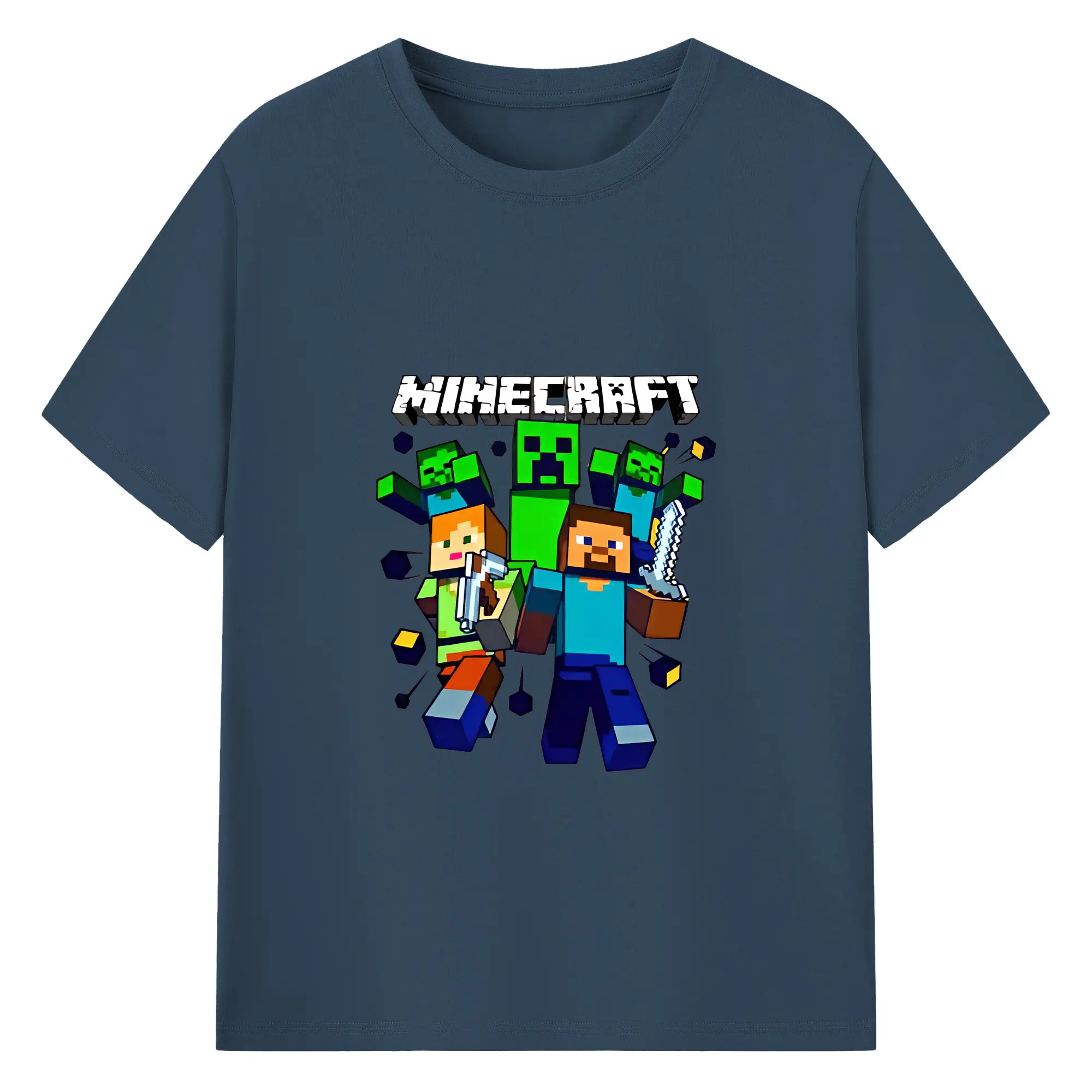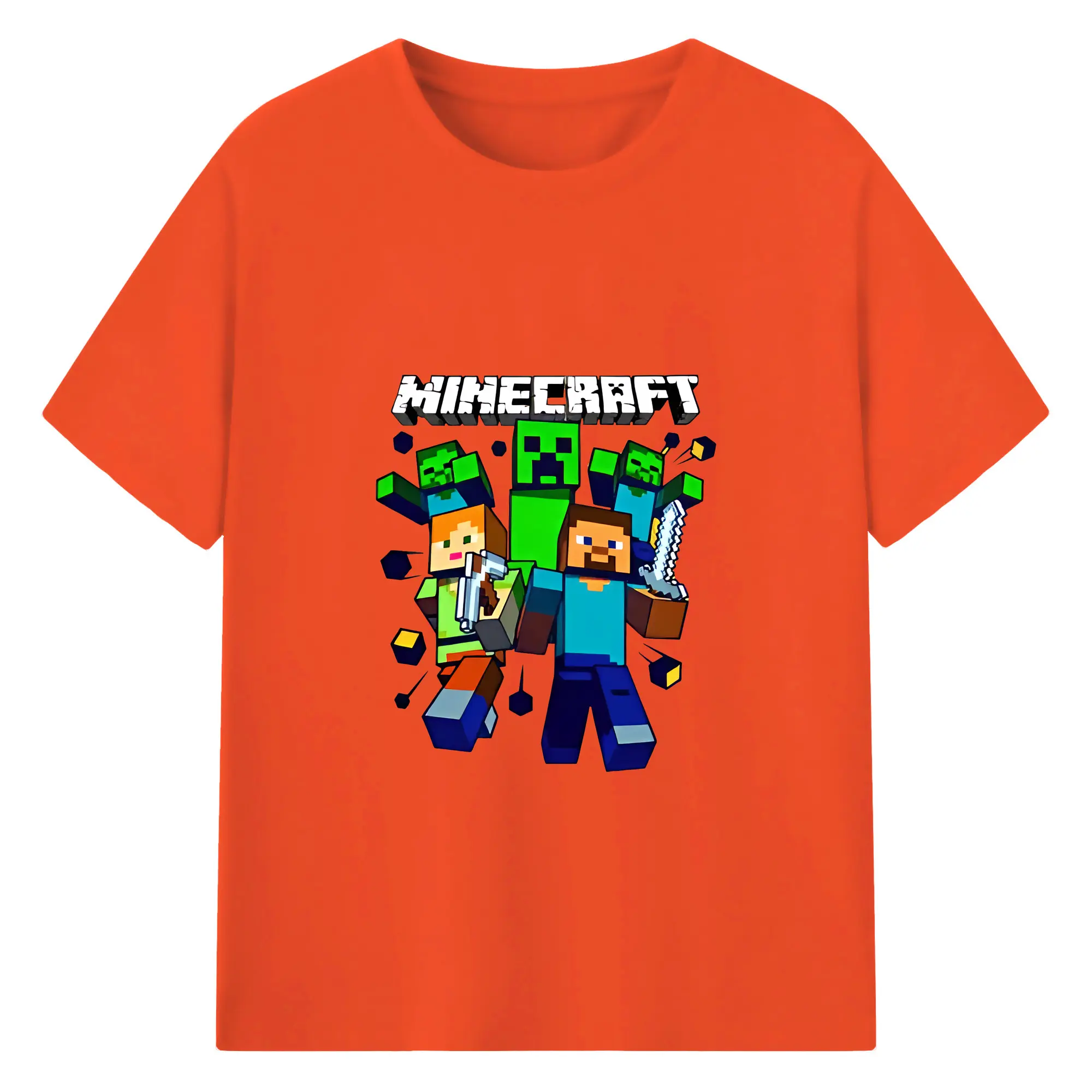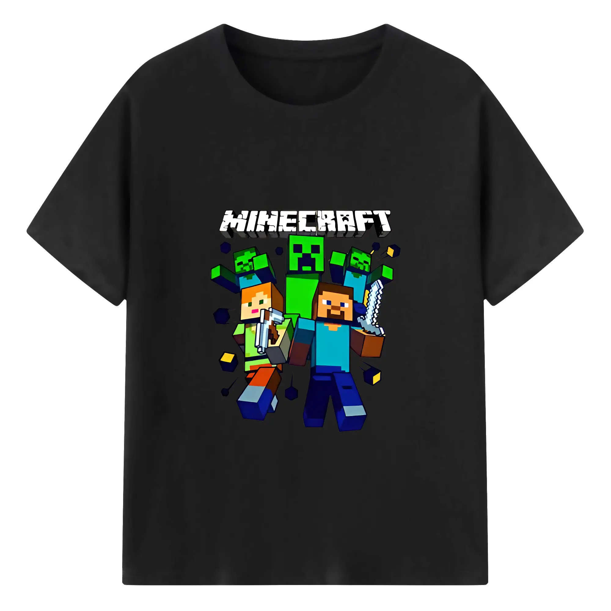 マイクラ グッズ マイクラ - 綿100% キッズTシャツ ・ フロントプリント ・ 快適 通気性 ・ スポーツ カジュアル 散歩用