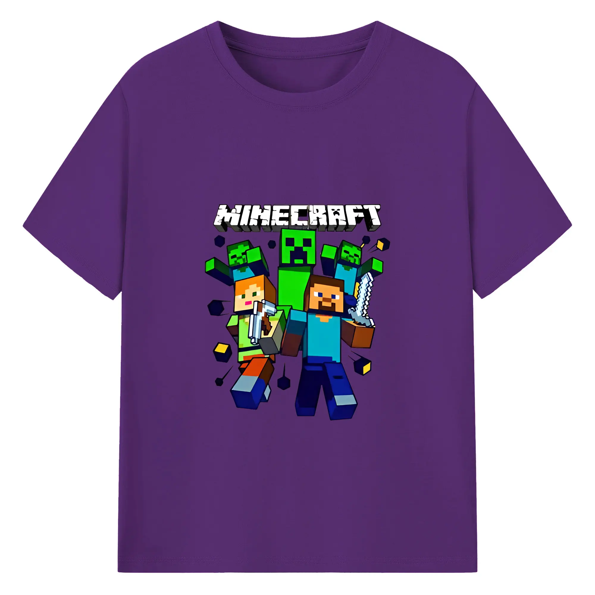 マイクラ グッズ マイクラ - 綿100% 半袖Tシャツ ・ バックプリント ・ 快適 通気性 ・ 日常使い 散歩 スポーツ用
