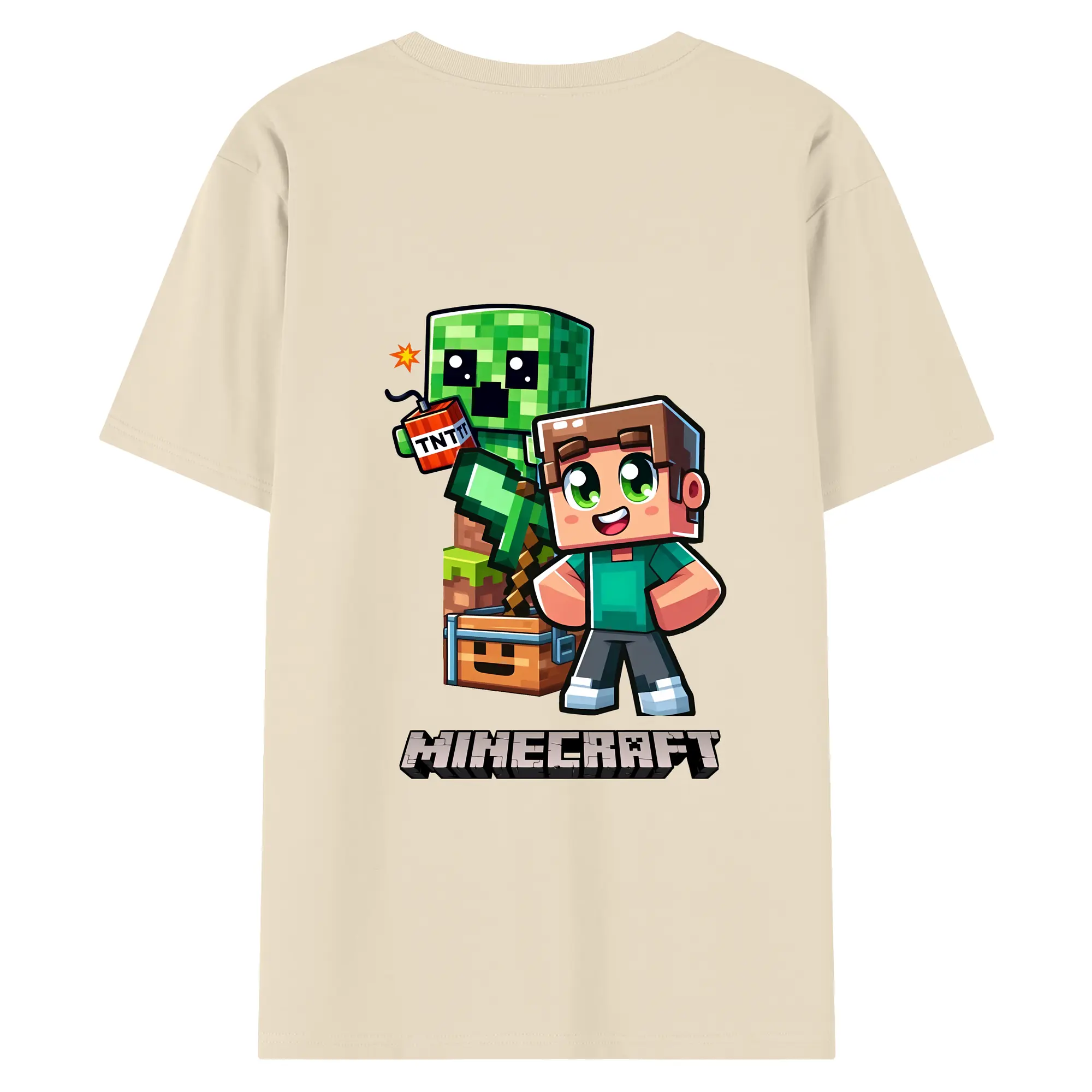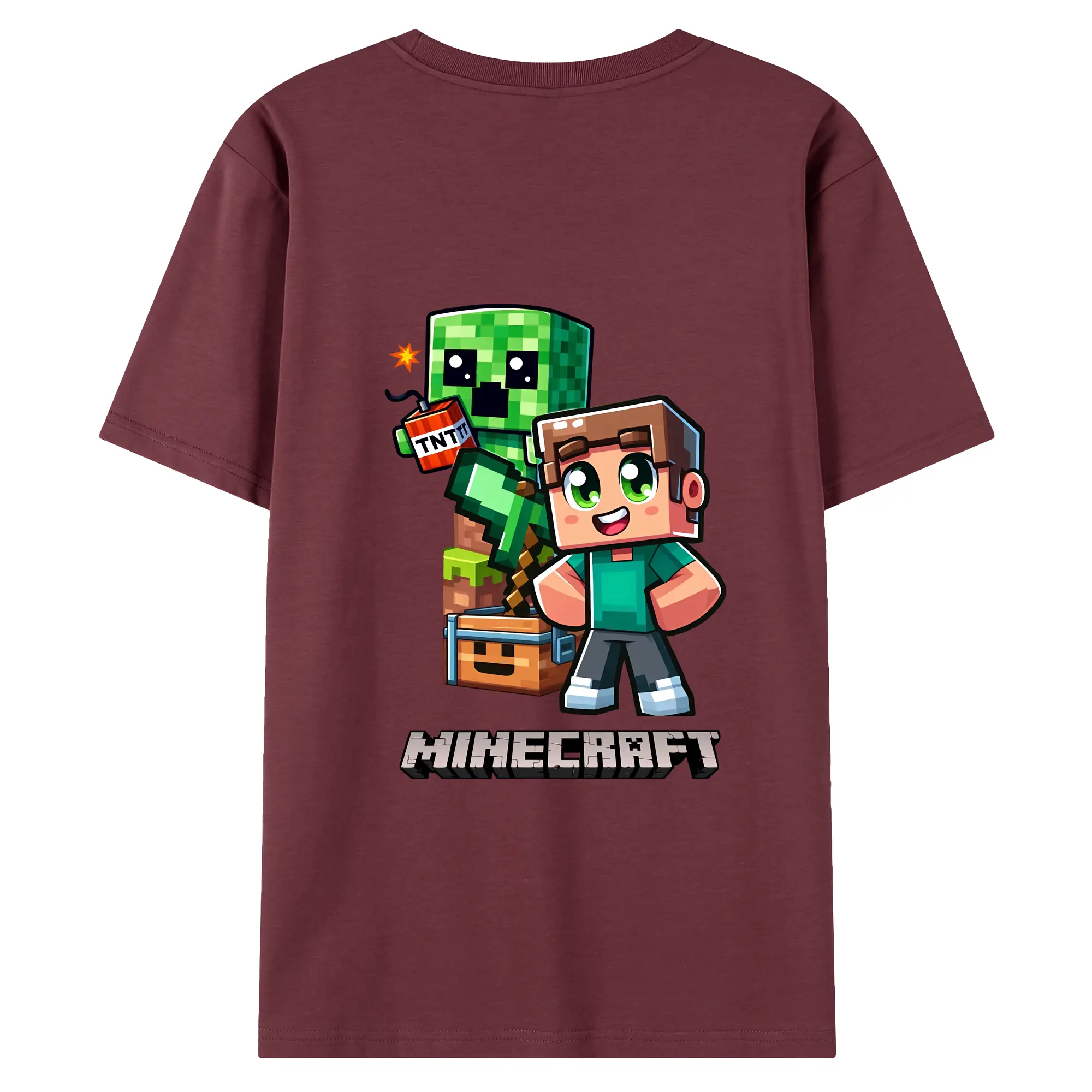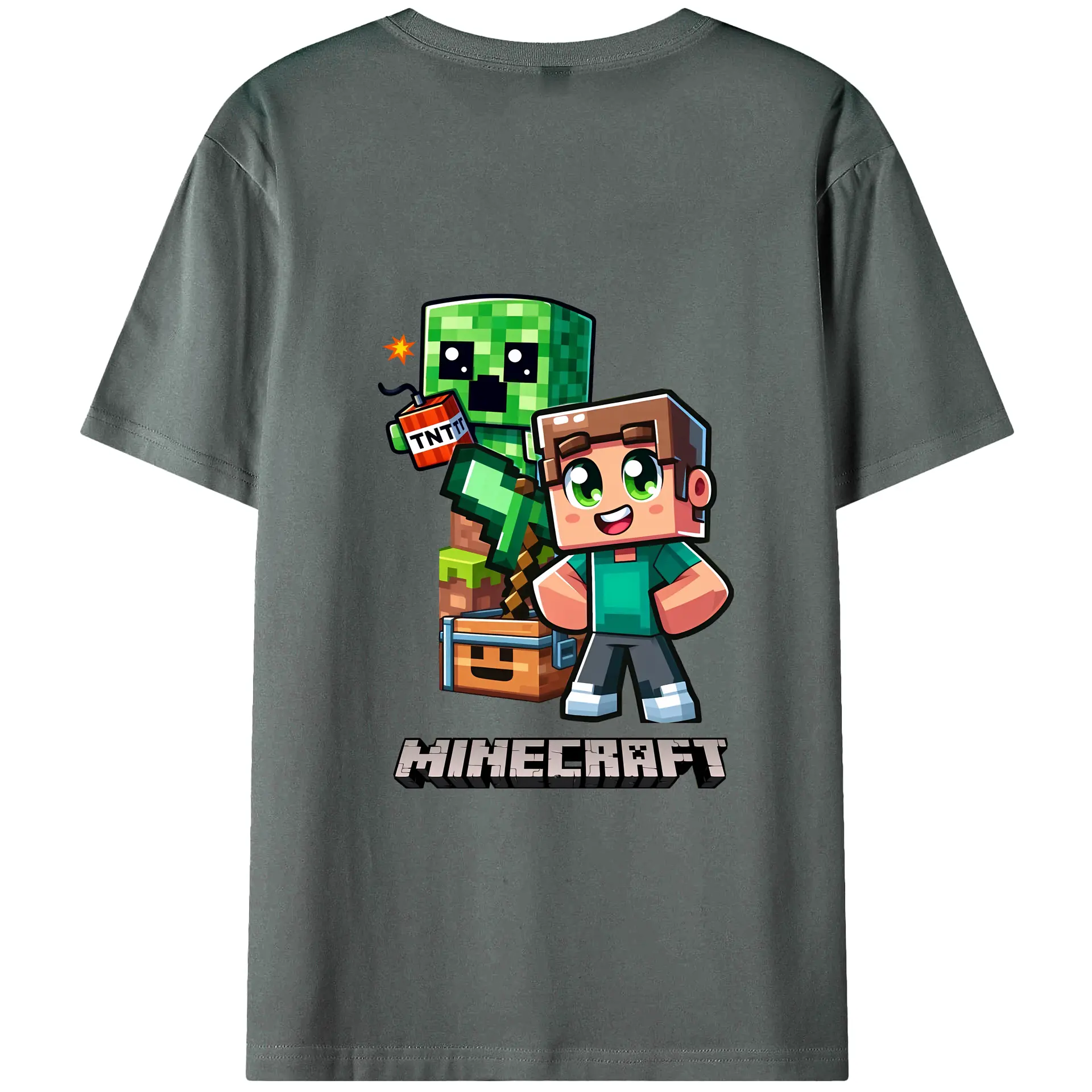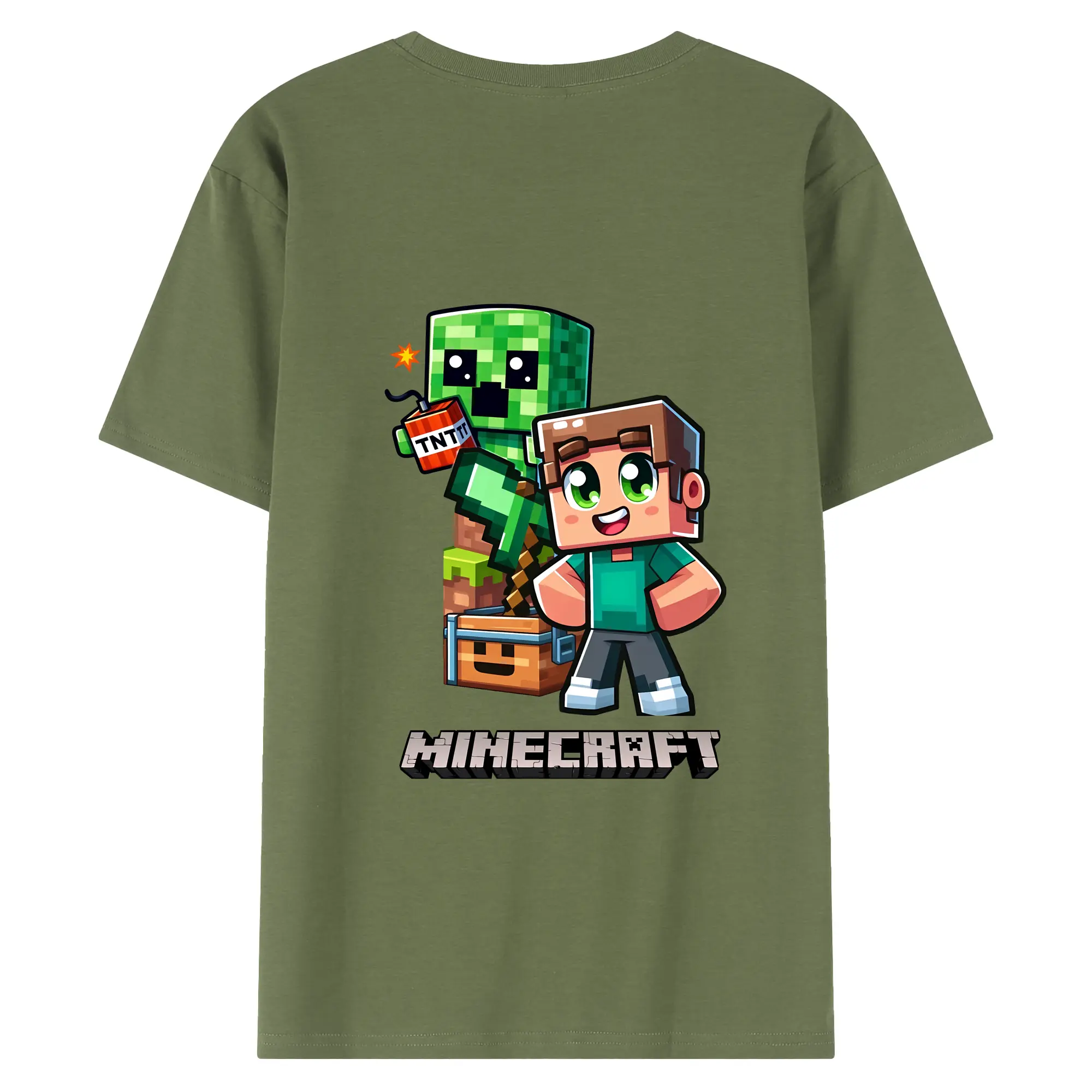 マイクラ グッズ マイクラ - 綿100% 半袖Tシャツ ・ フロントプリント ・ 快適 通気性 ・ 日常使い 散歩 スポーツ用