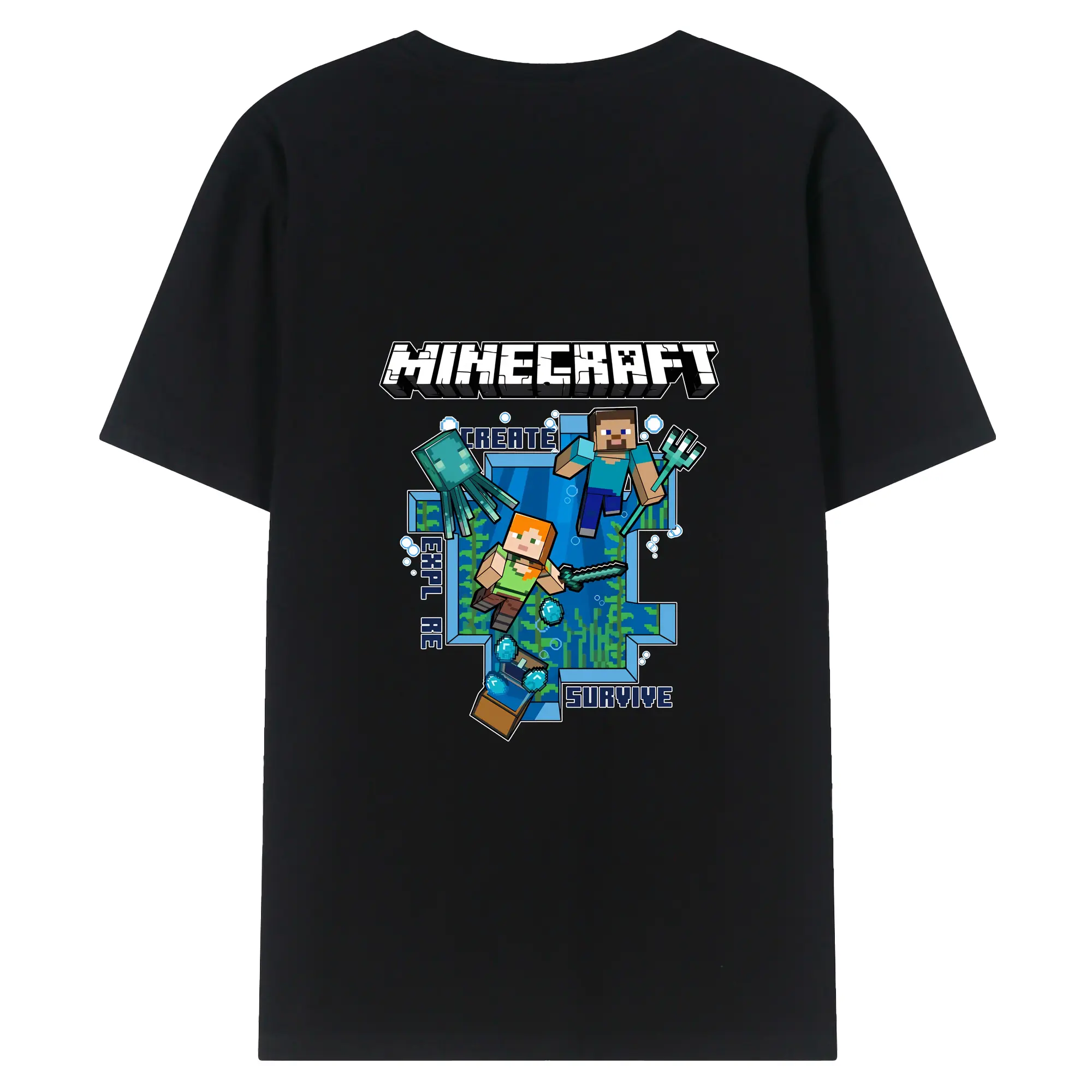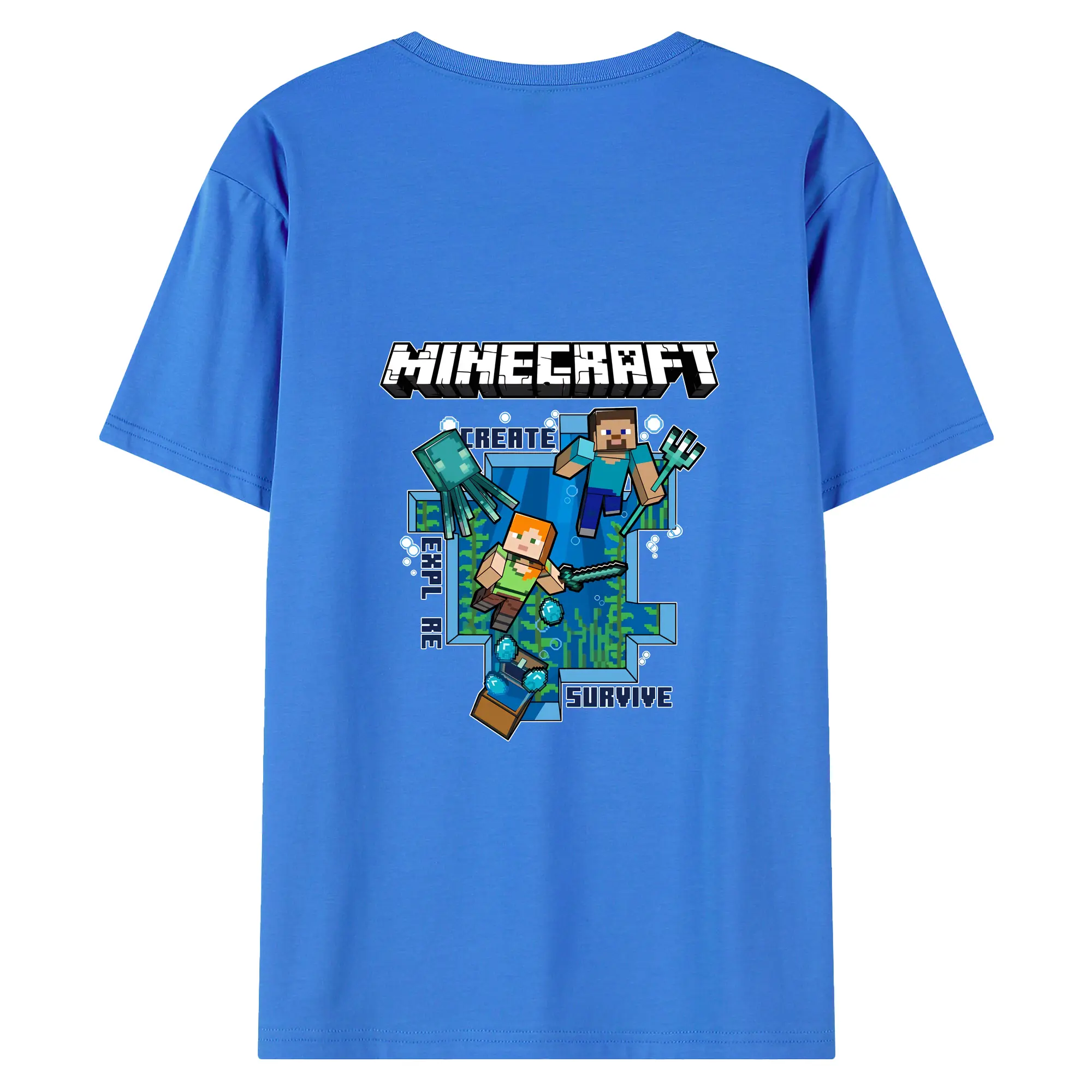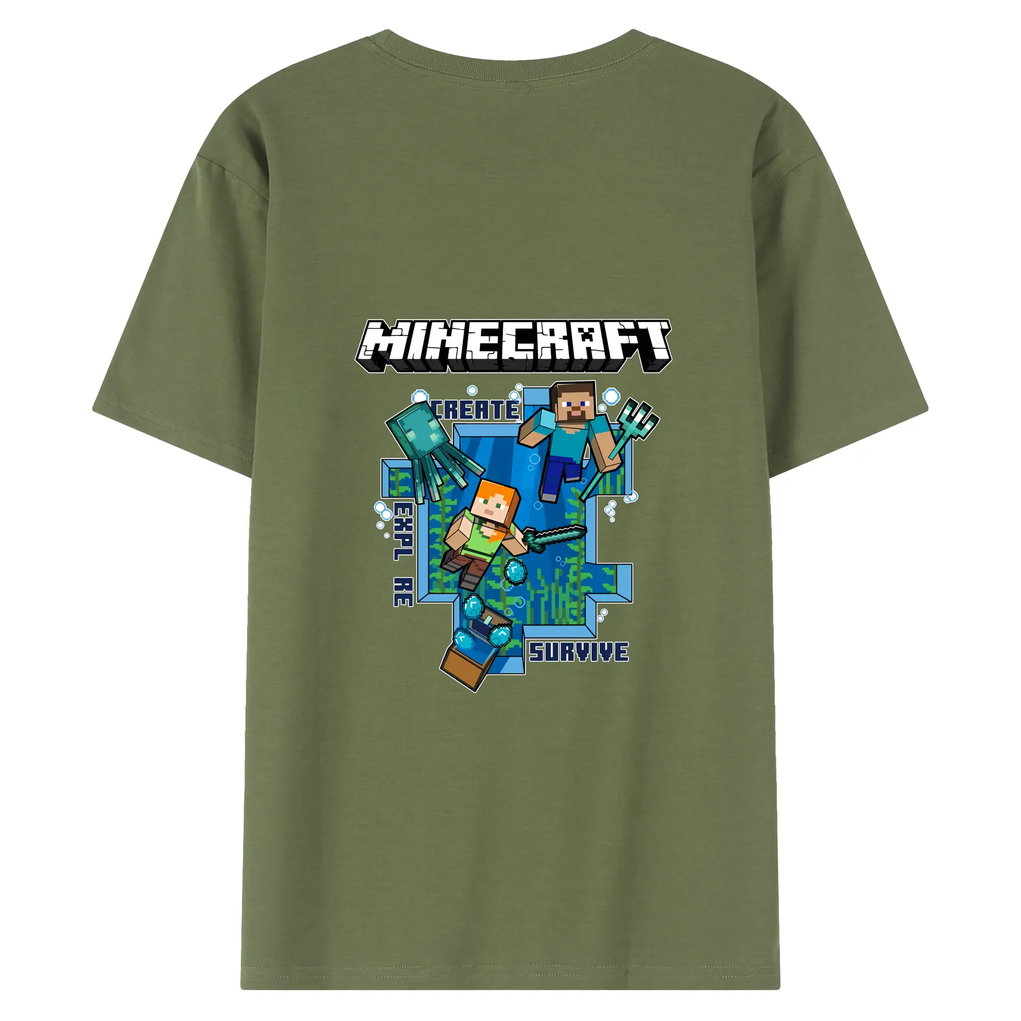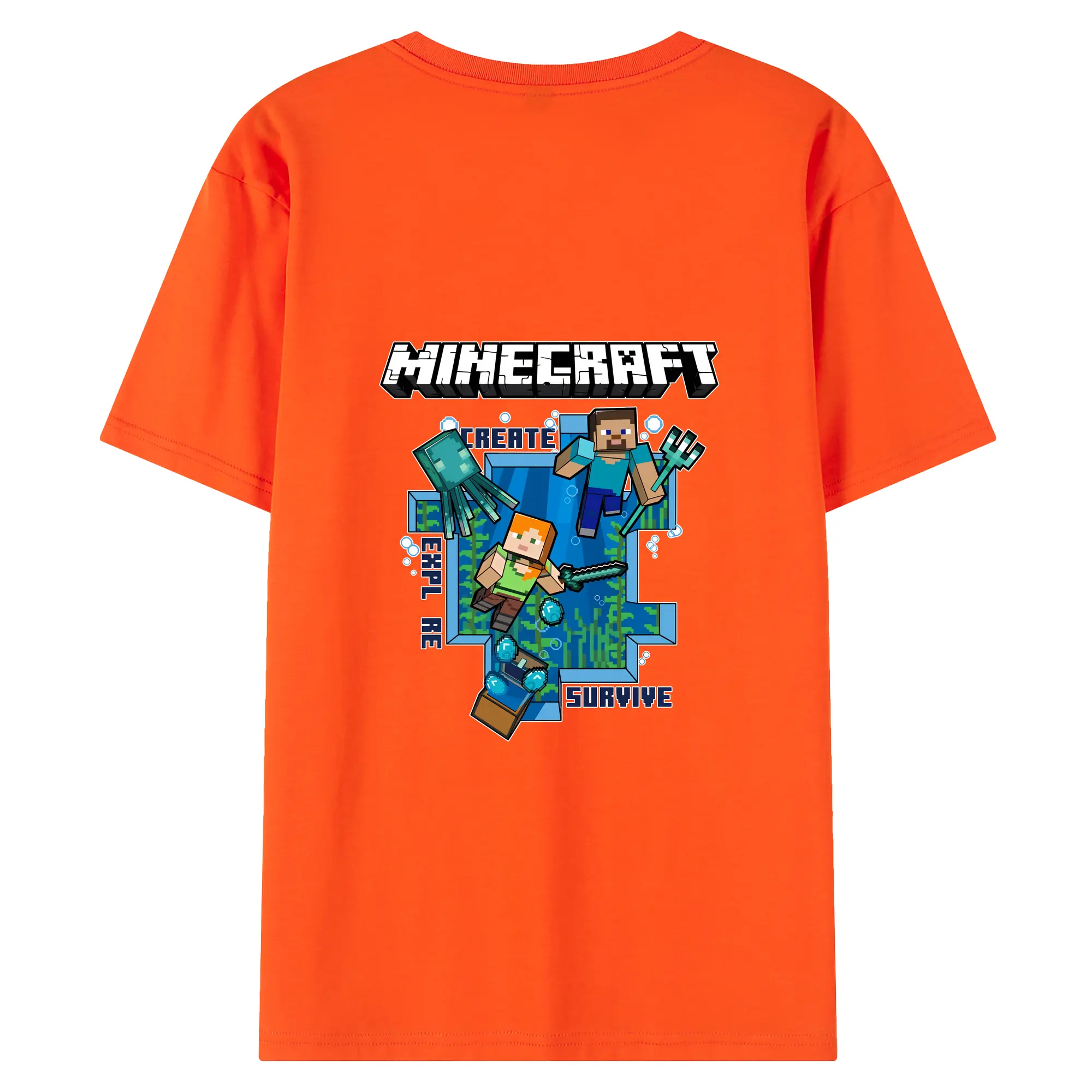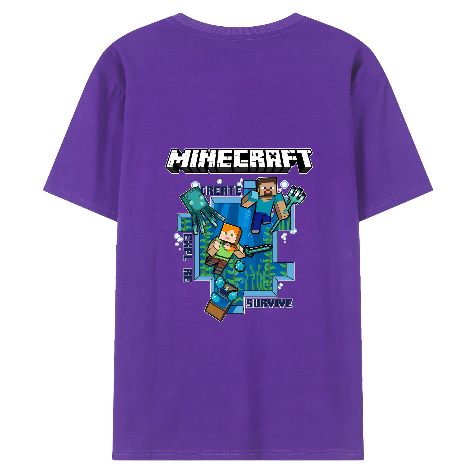 マイクラ グッズ マイクラ - 綿100% ヴィンテージ風 半袖Tシャツ ・ 背面プリント ・ 柔らか肌触り ・ 通気性 快適 ・ スポーツ カジュアル 外出用