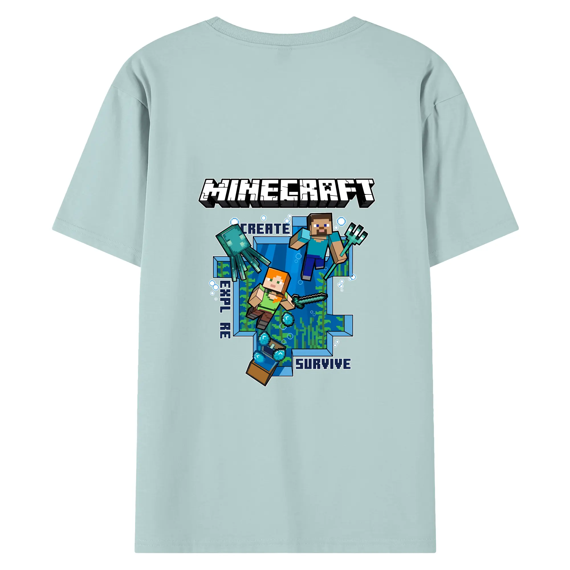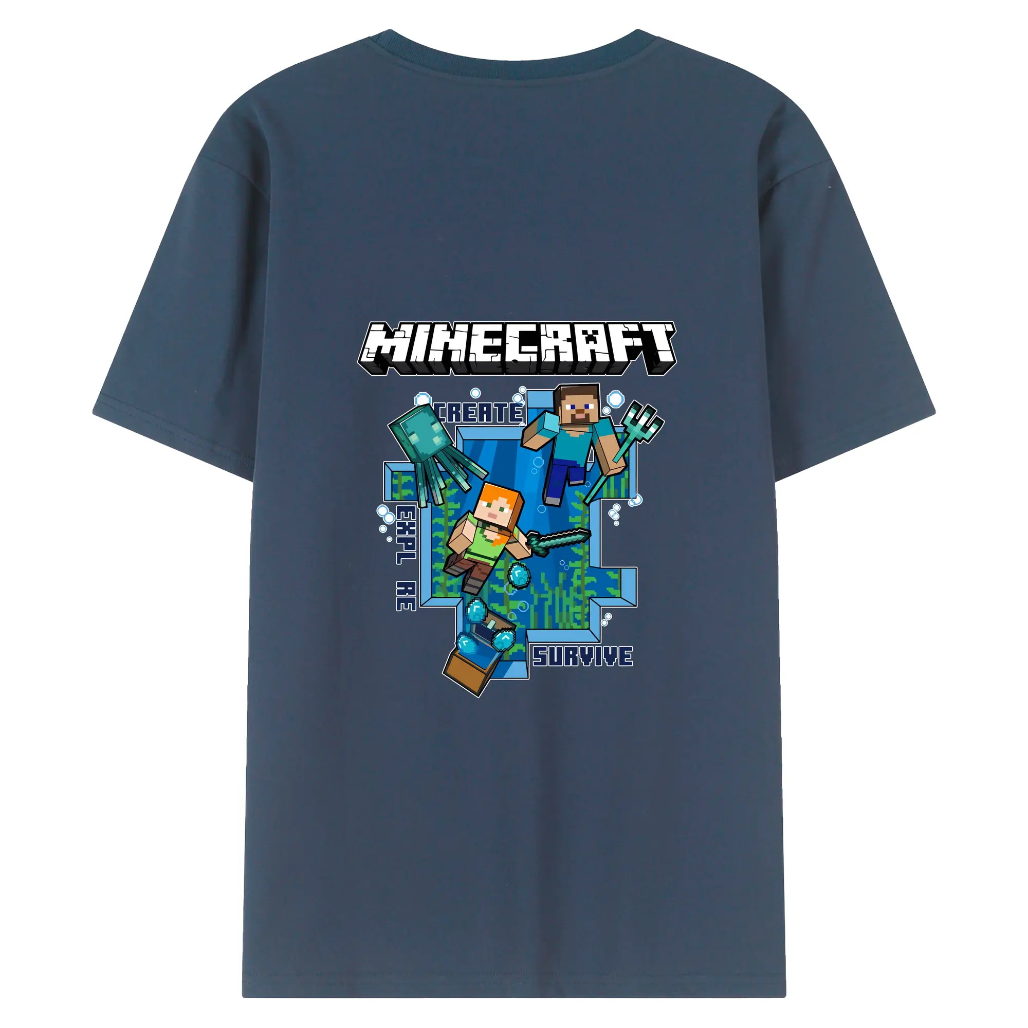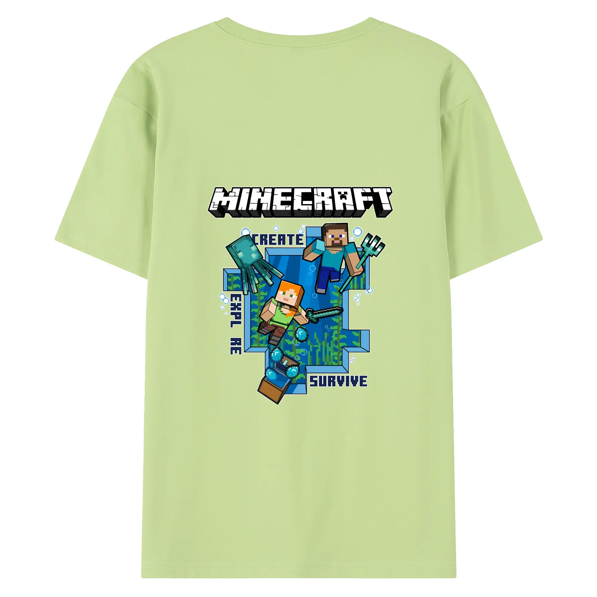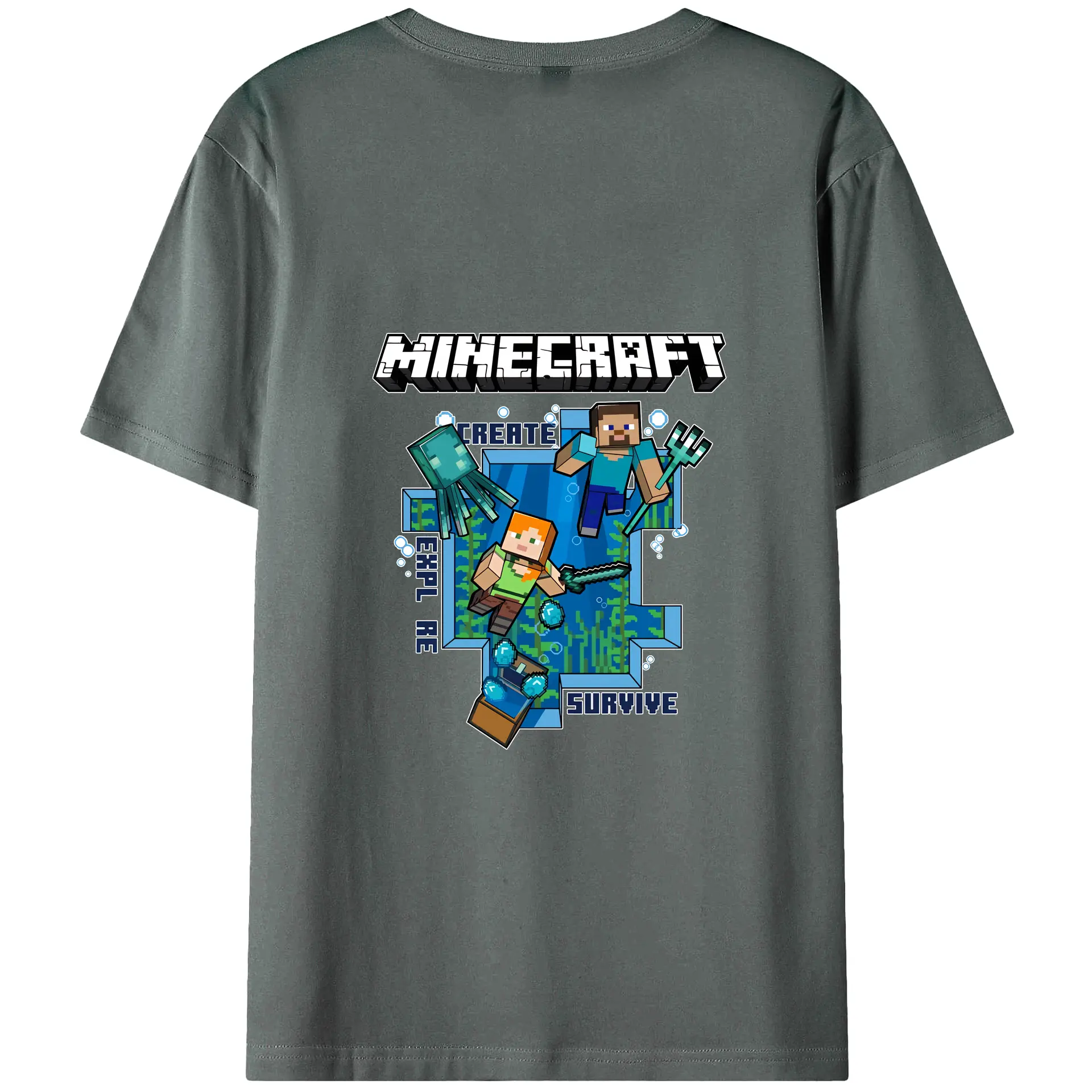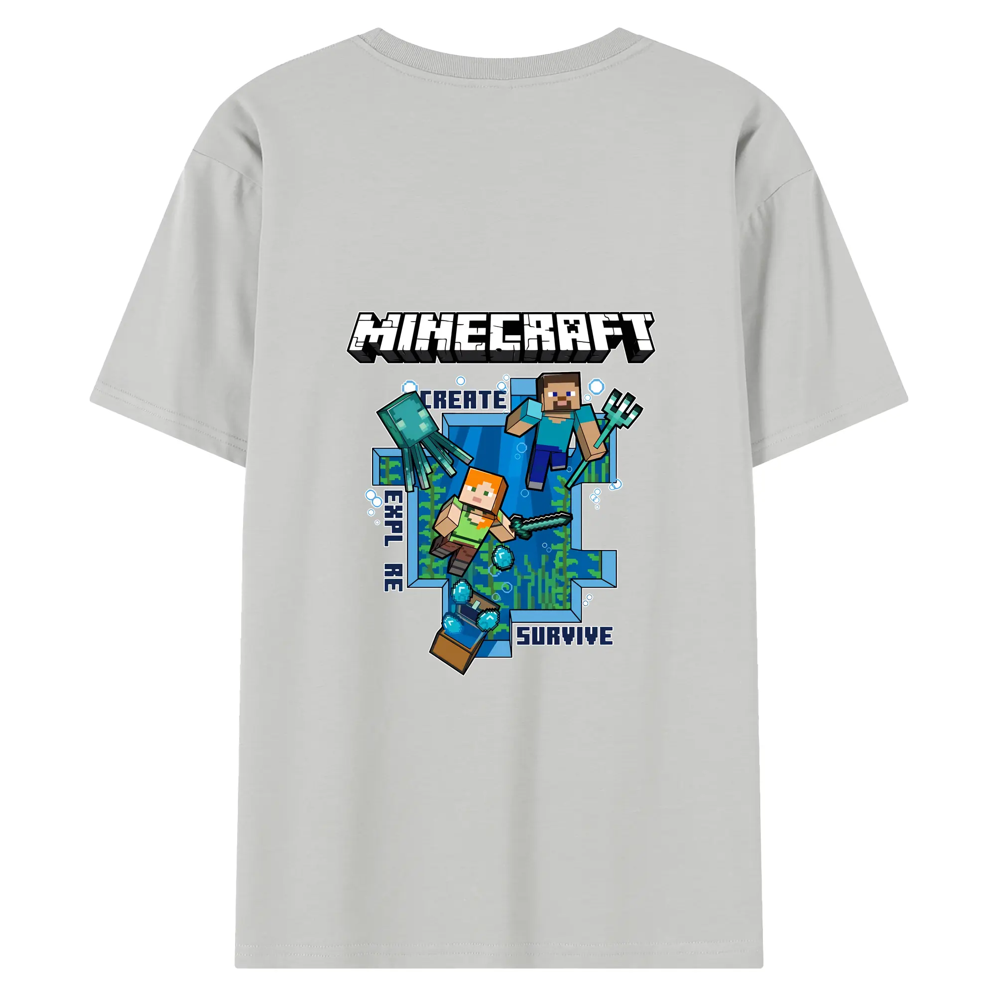 マイクラ グッズ マイクラ - 綿100% ヴィンテージ風 半袖Tシャツ ・ 背面プリント ・ 柔らか肌触り ・ 通気性 快適 ・ スポーツ カジュアル 外出用
