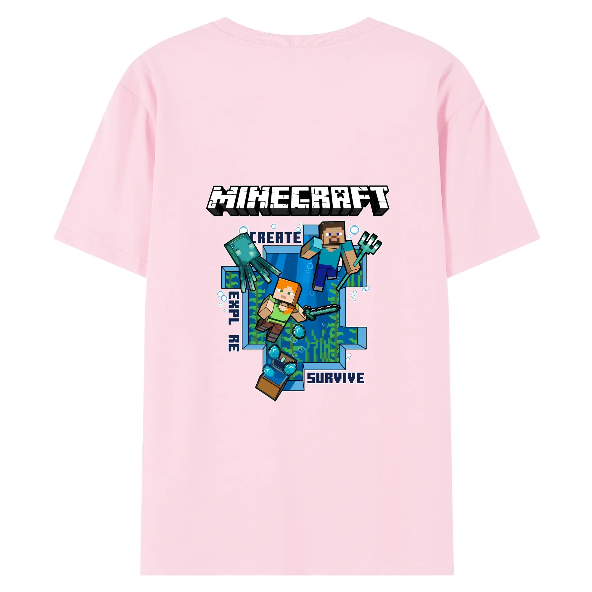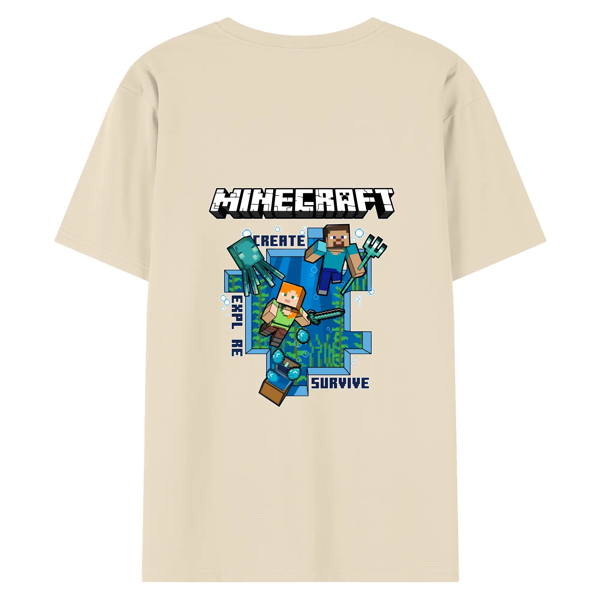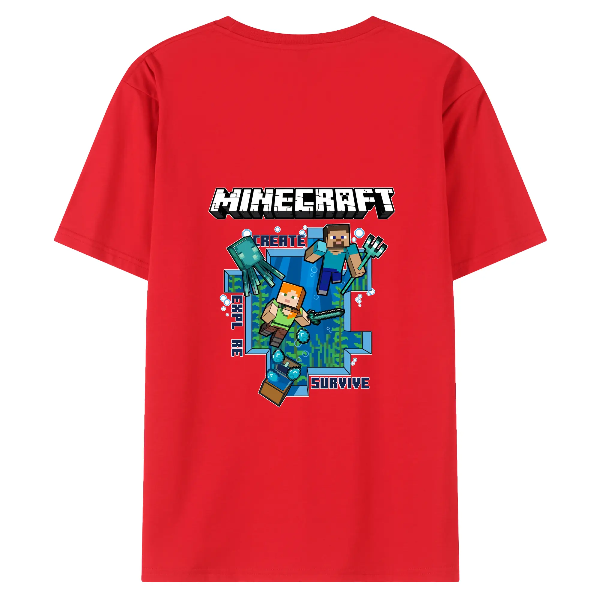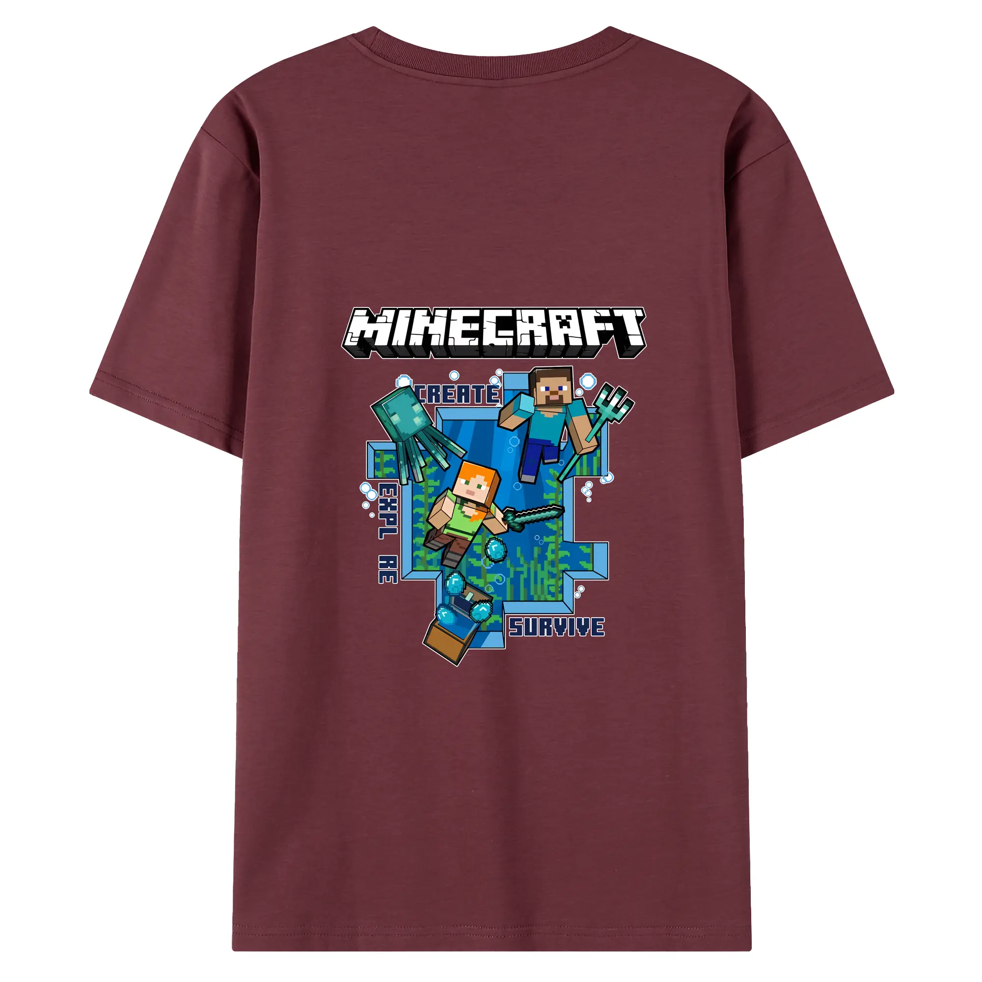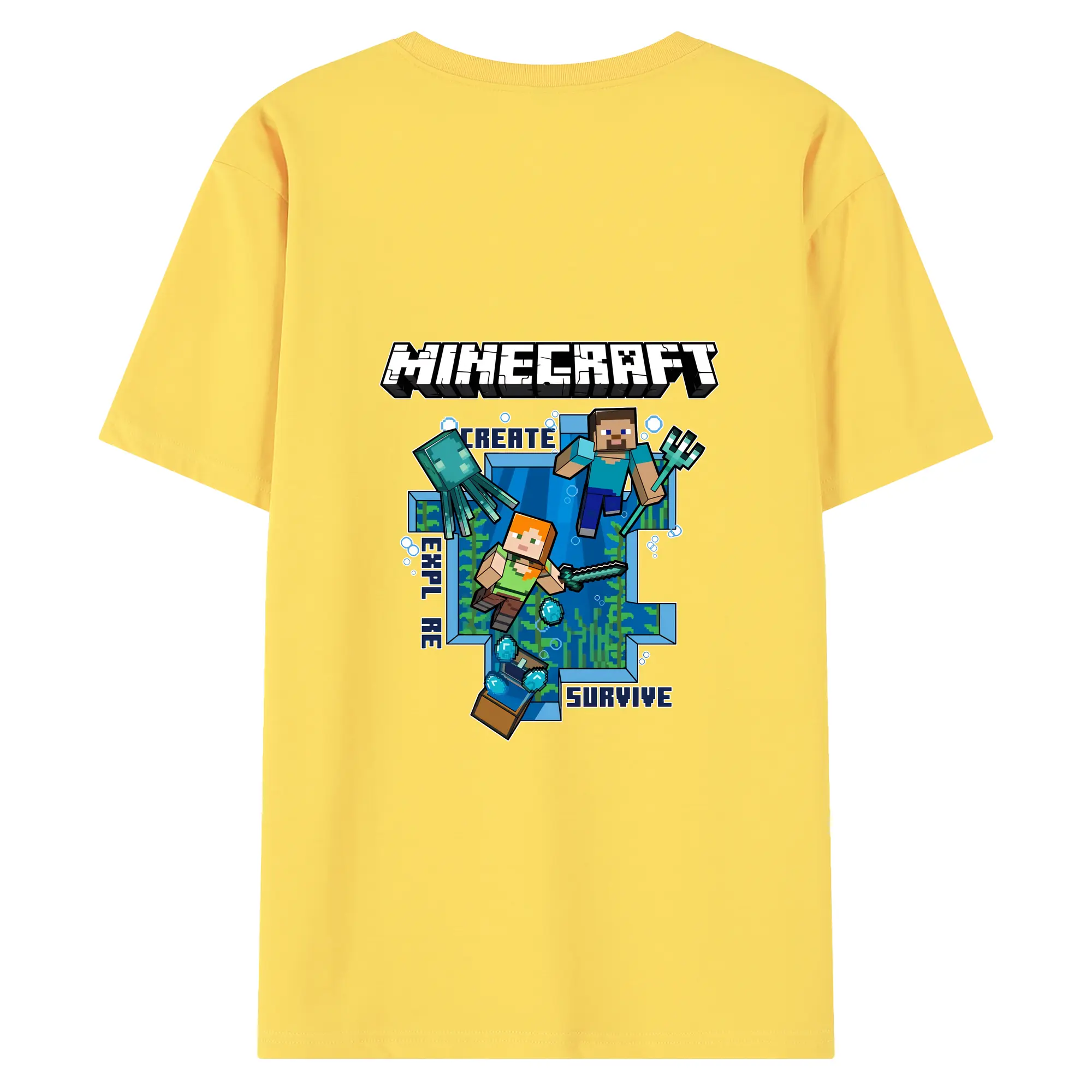 マイクラ グッズ マイクラ - 綿100% ヴィンテージ風 半袖Tシャツ ・ 背面プリント ・ 柔らか肌触り ・ 通気性 快適 ・ スポーツ カジュアル 外出用