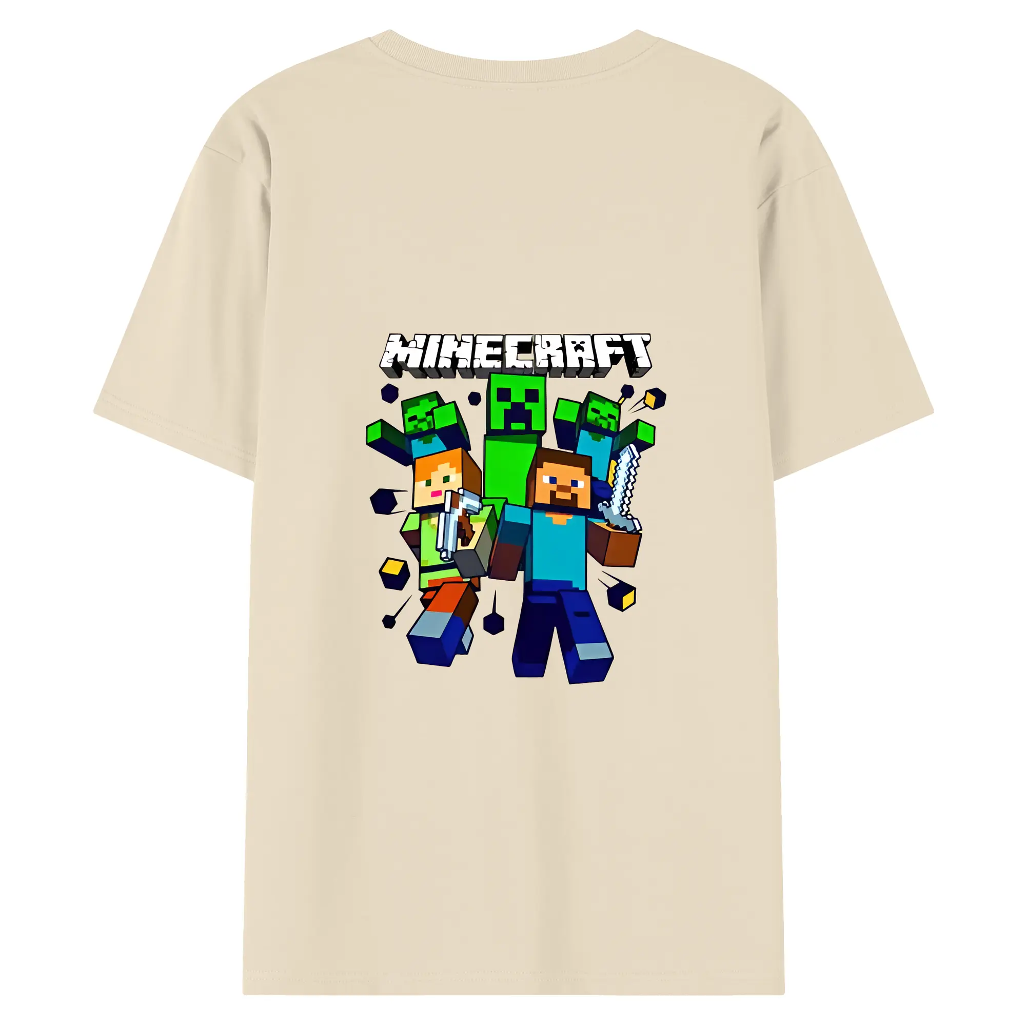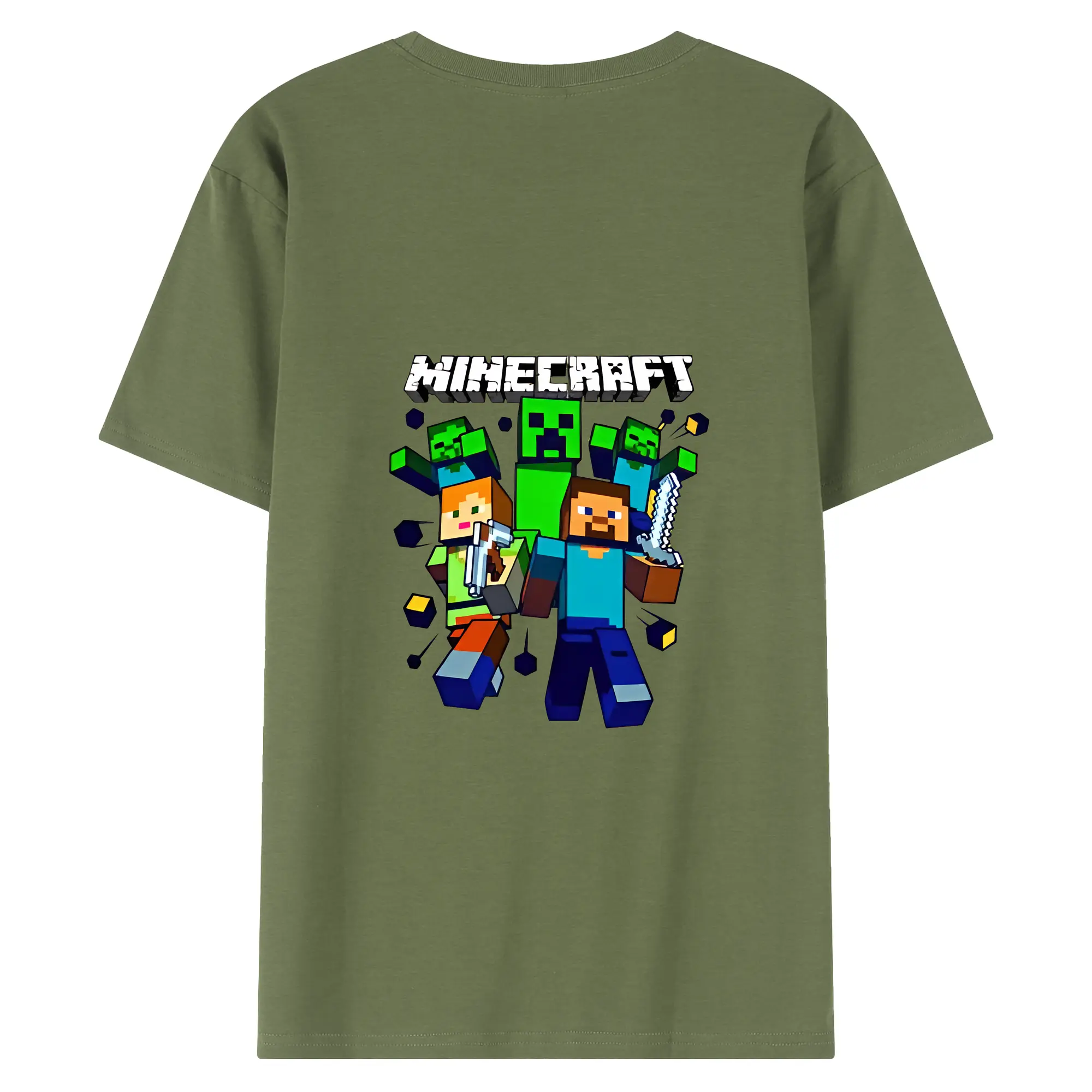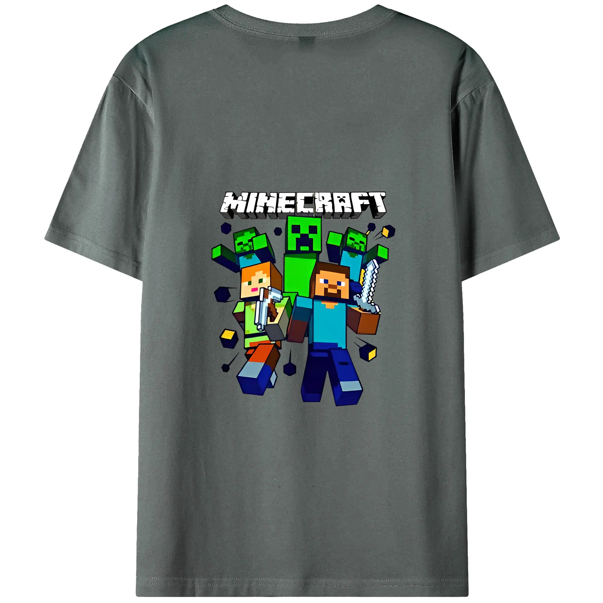 マイクラ グッズ マイクラ - 綿100% 半袖Tシャツ ・ フロントプリント ・ 快適 通気性 ・ 日常使い 散歩 スポーツ用