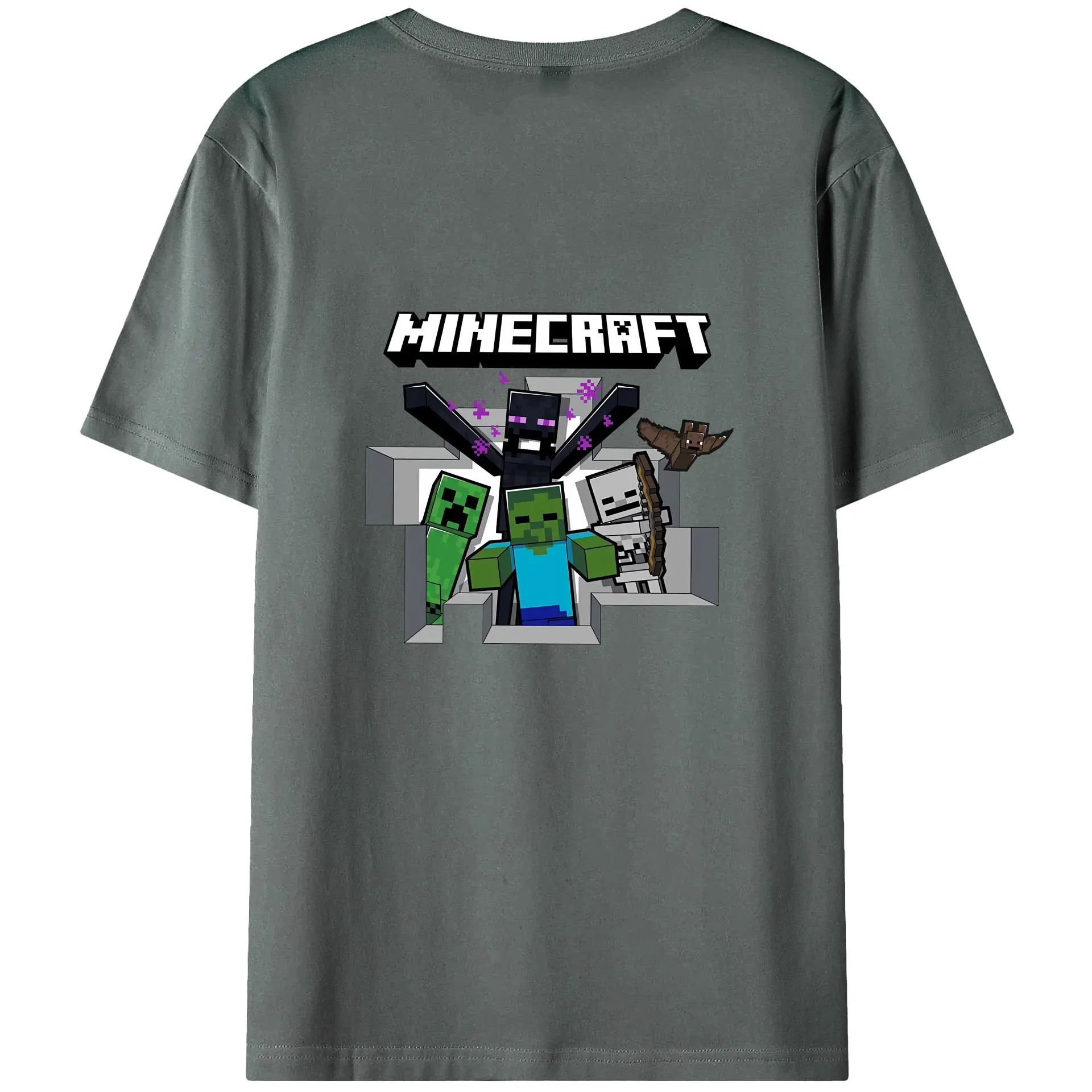 マイクラ グッズ マイクラ - 綿100% 半袖Tシャツ ・ フロントプリント ・ 快適 通気性 ・ 日常使い 散歩 スポーツ用