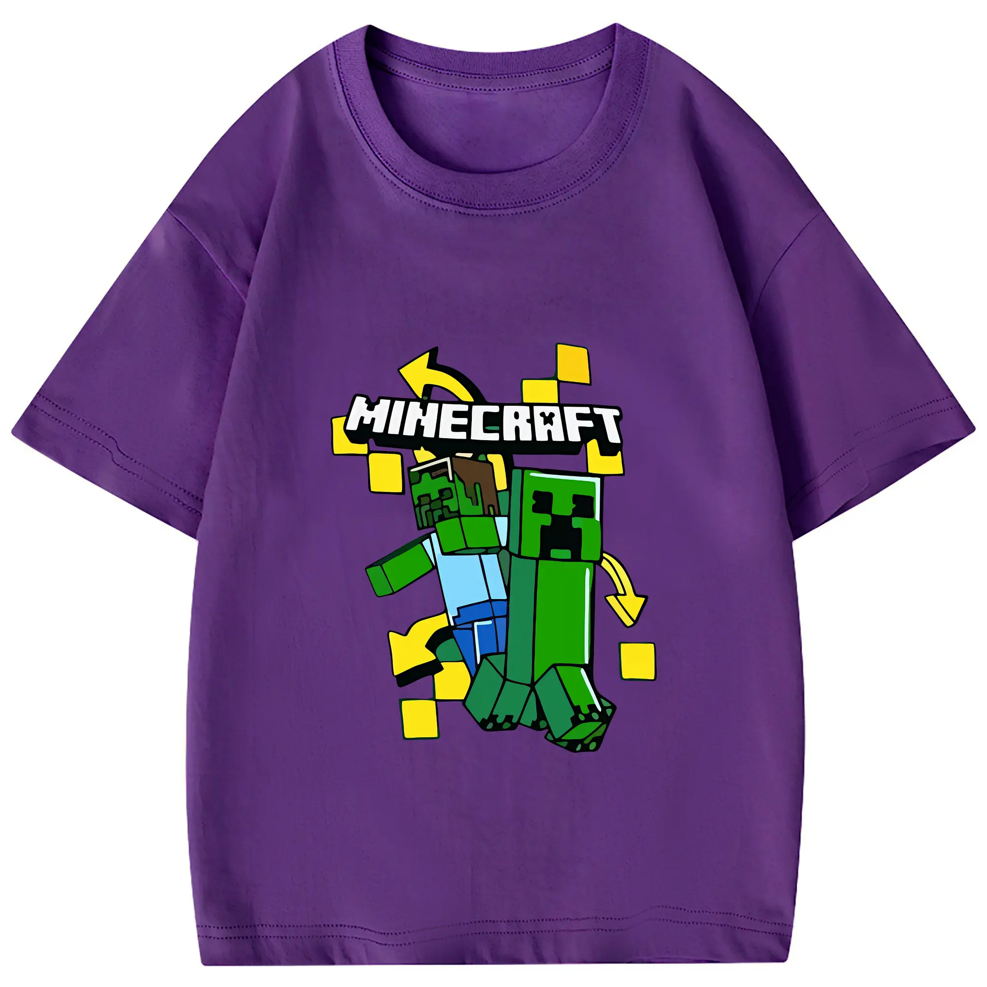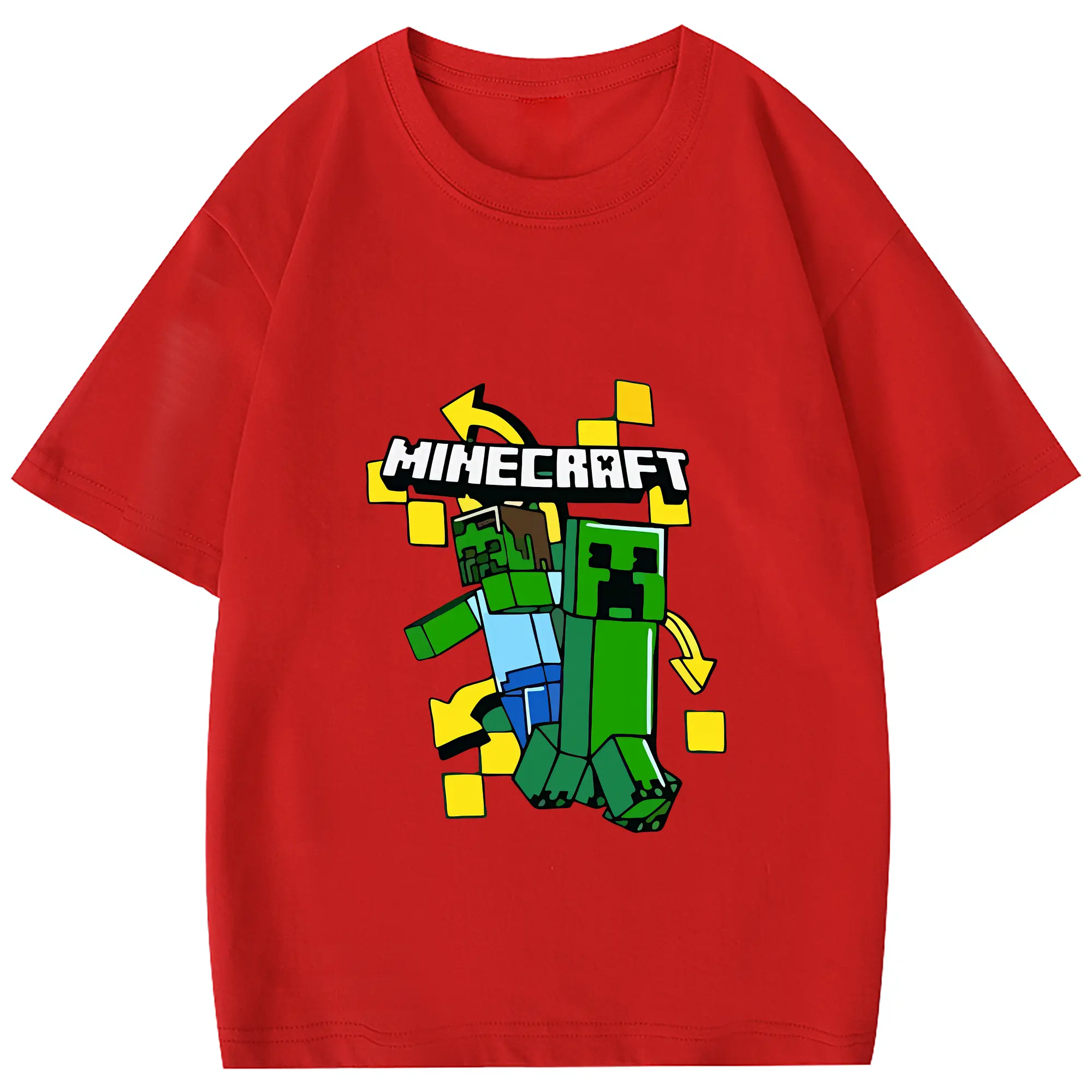 マイクラ グッズ マイクラ - 綿100% 半袖Tシャツ ・ フロントプリント ・ 快適 通気性 ・ 日常使い 散歩 スポーツ用
