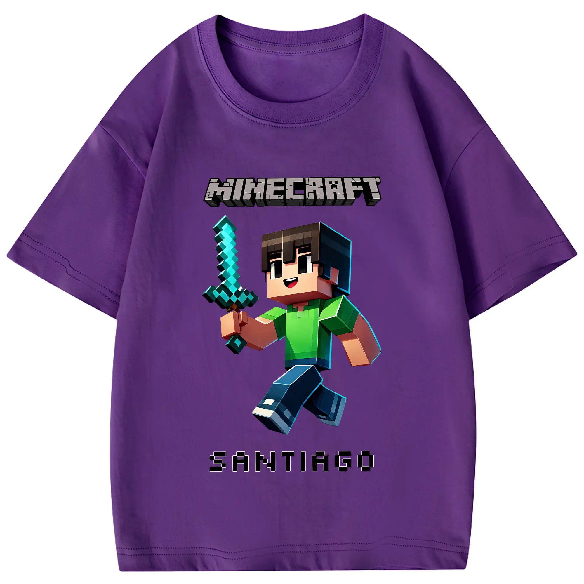 マイクラ グッズ マイクラ - 綿100% 半袖Tシャツ ・ フロントプリント ・ 快適 通気性 ・ 日常使い 散歩 スポーツ用