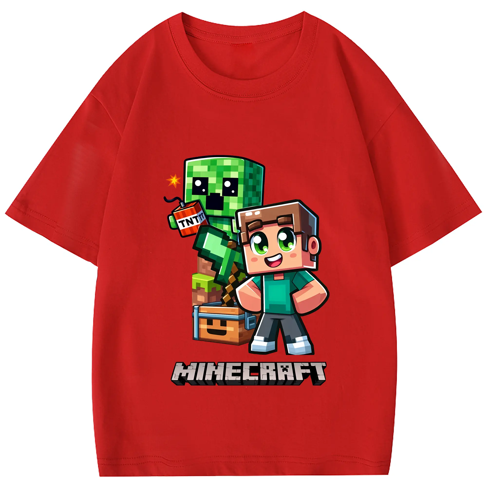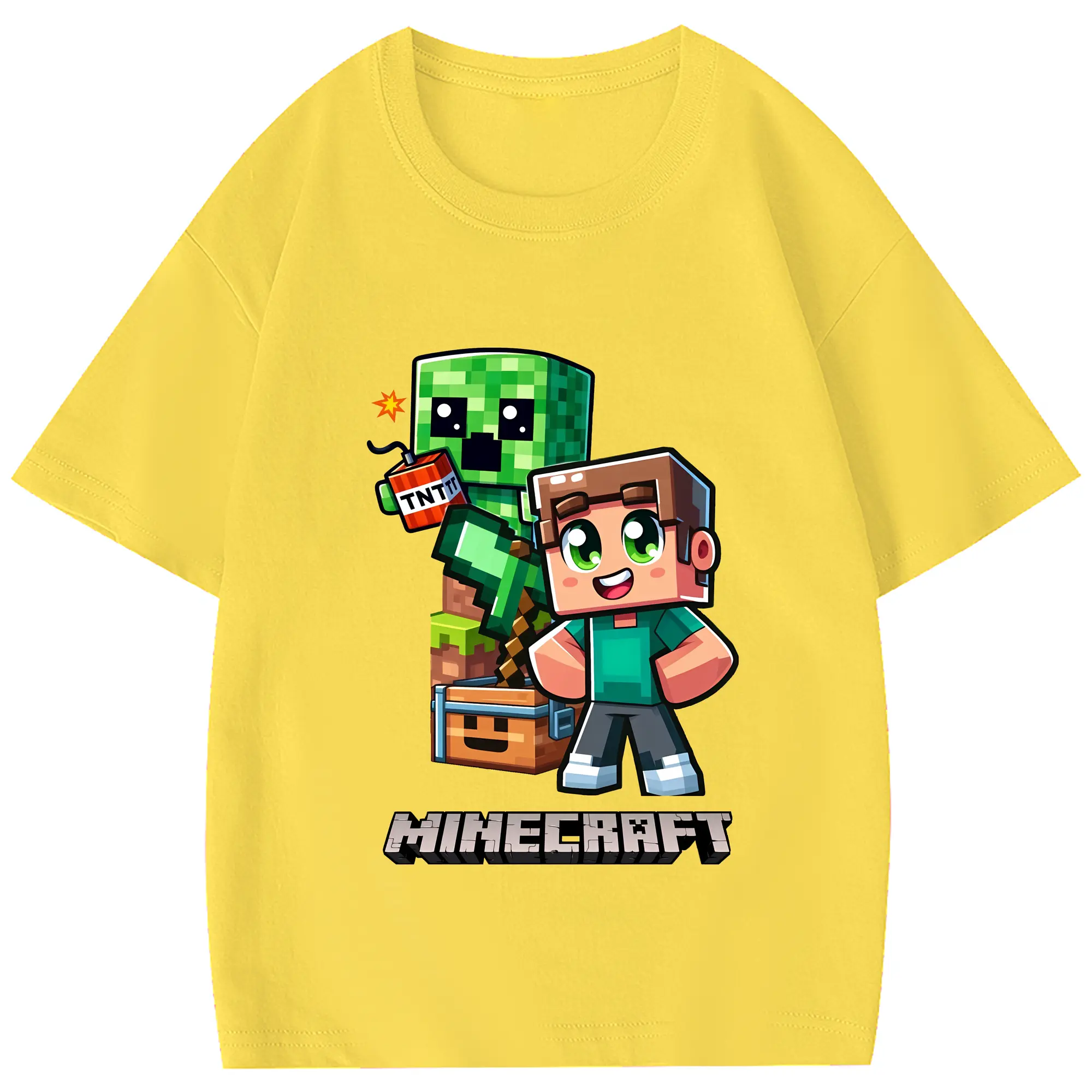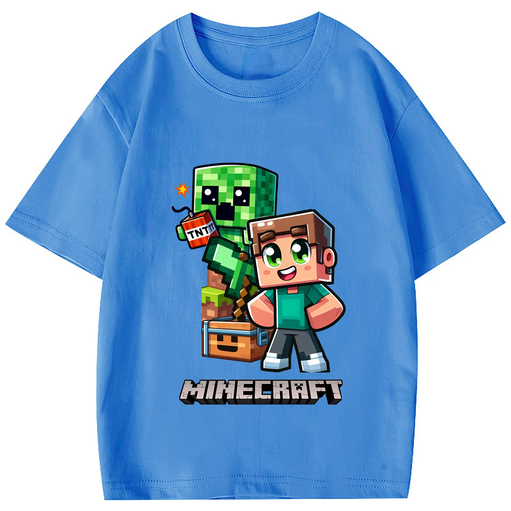 マイクラ グッズ マイクラ - 綿100% 半袖Tシャツ ・ フロントプリント ・ 快適 通気性 ・ 日常使い 散歩 スポーツ用