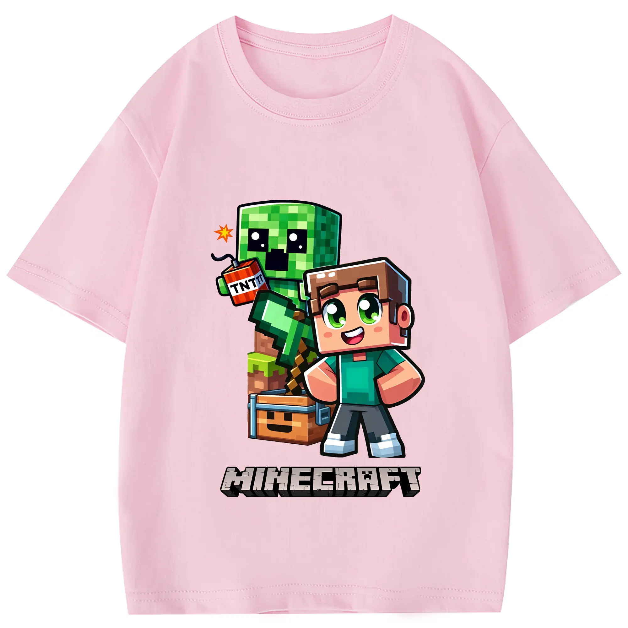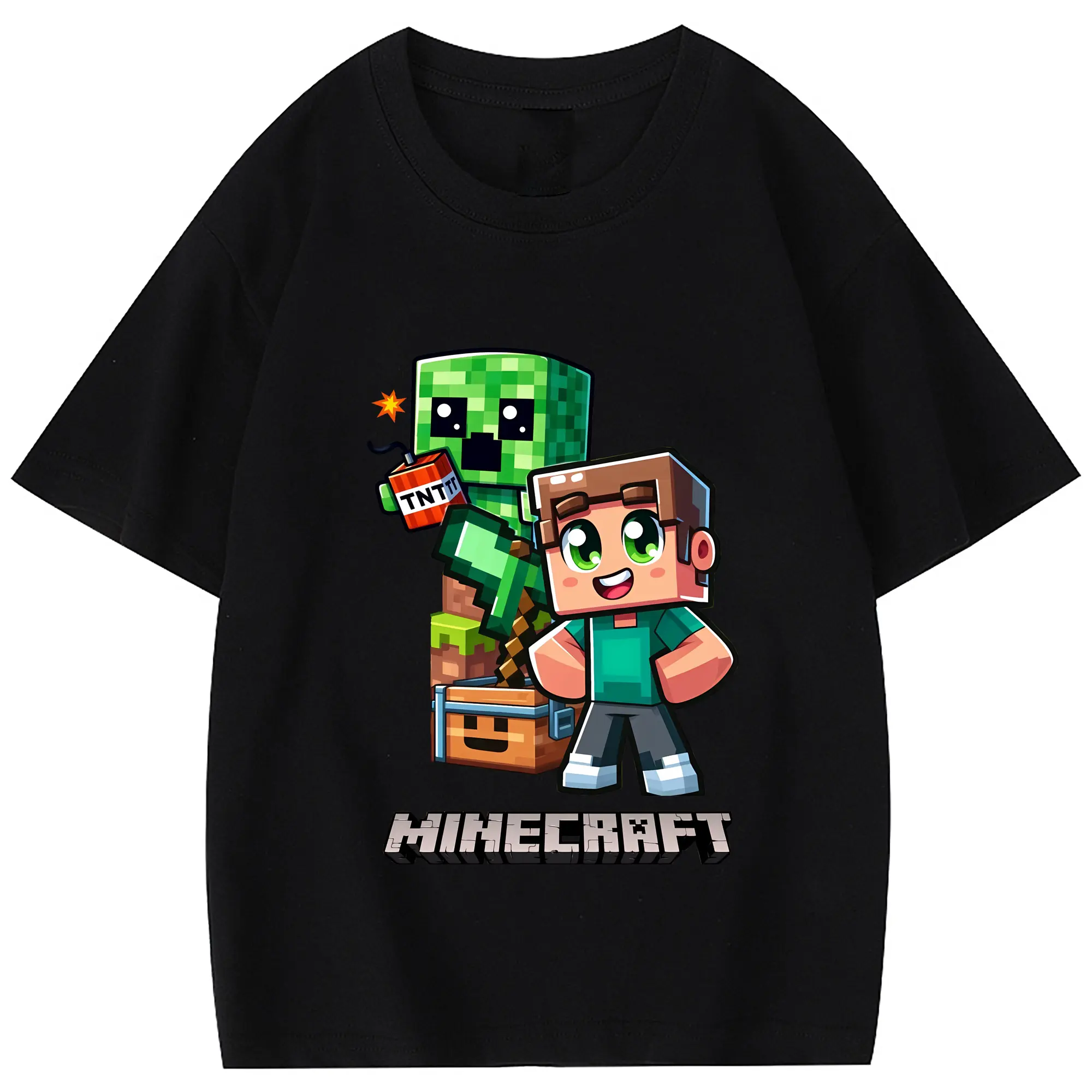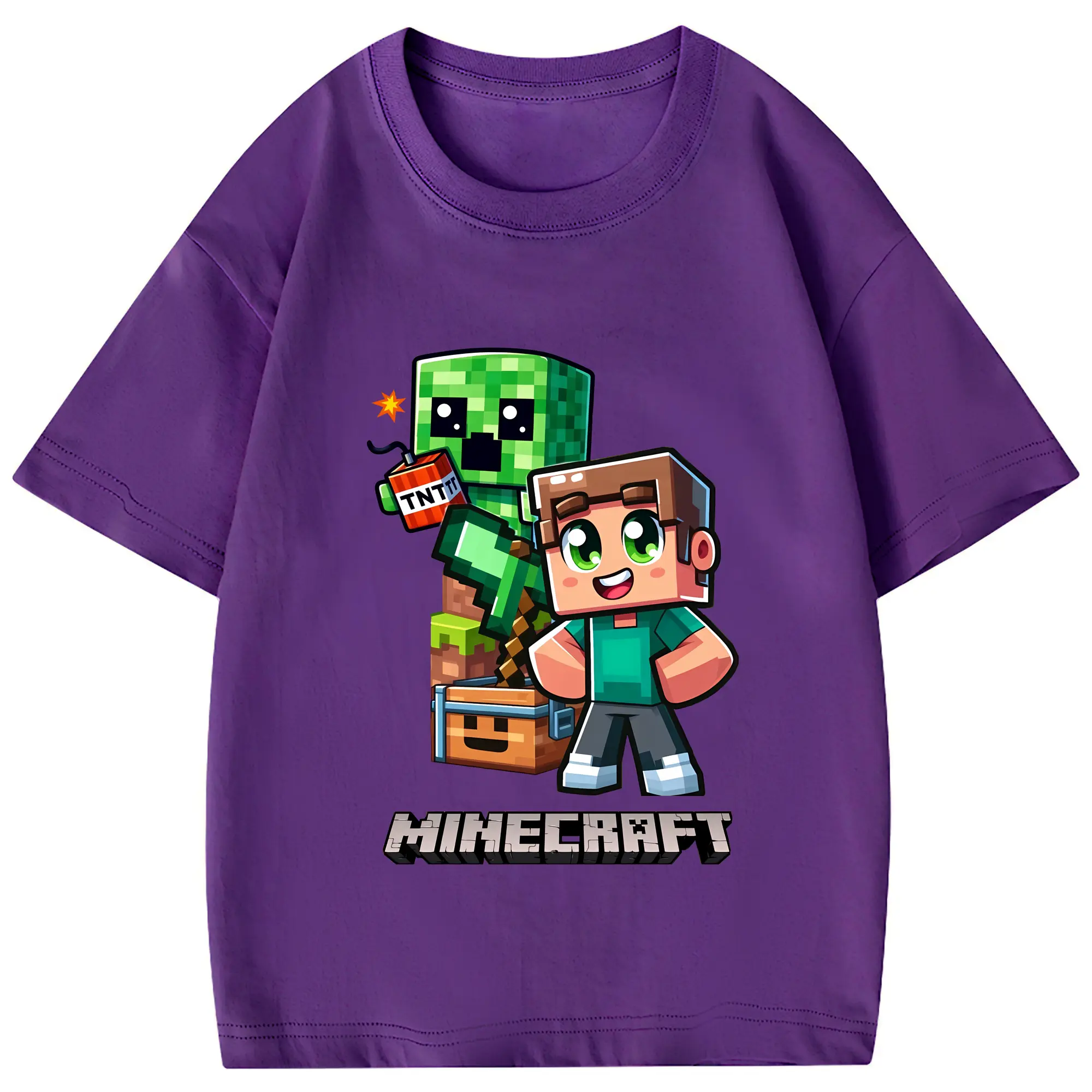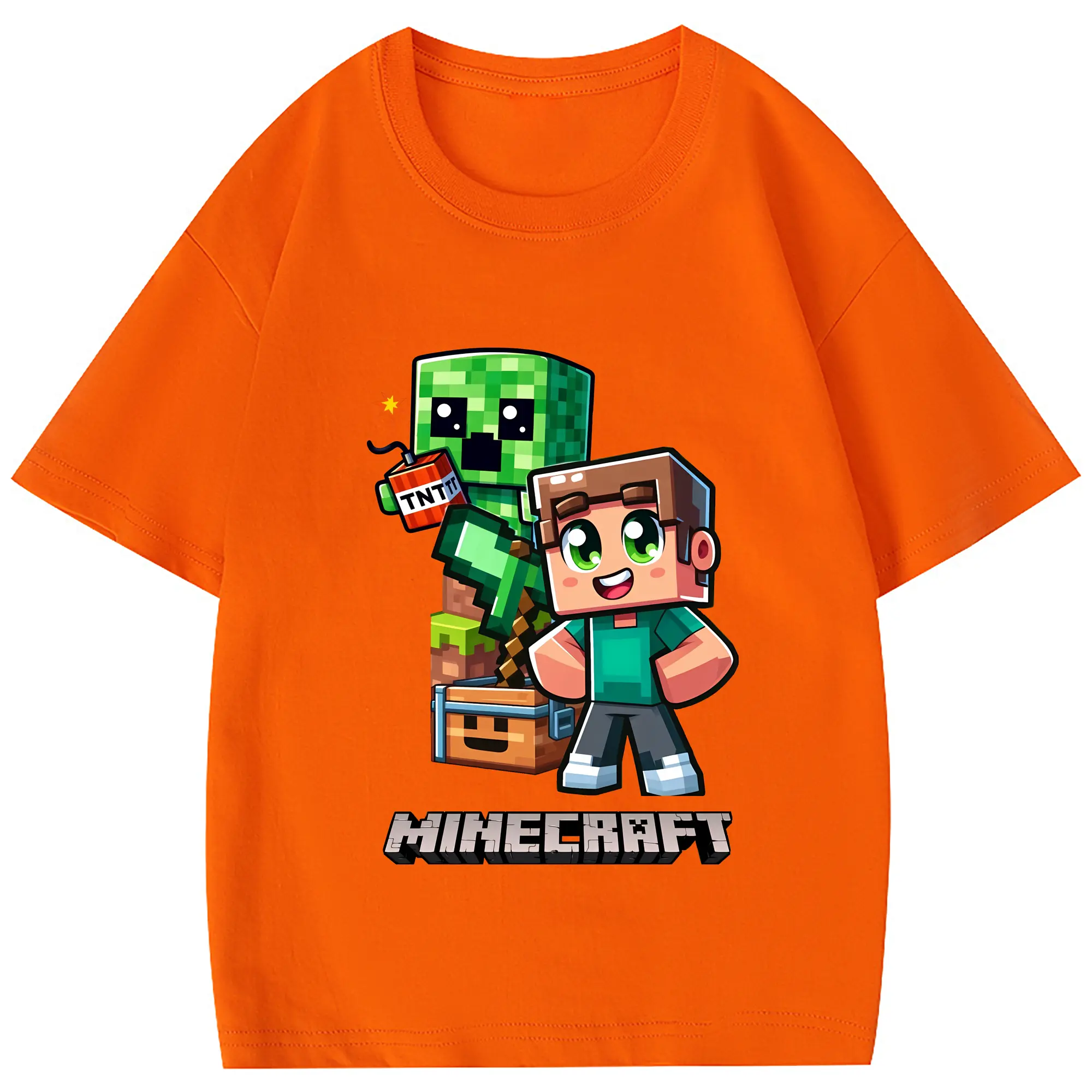 マイクラ グッズ マイクラ - 綿100% 半袖Tシャツ ・ フロントプリント ・ 快適 通気性 ・ 日常使い 散歩 スポーツ用