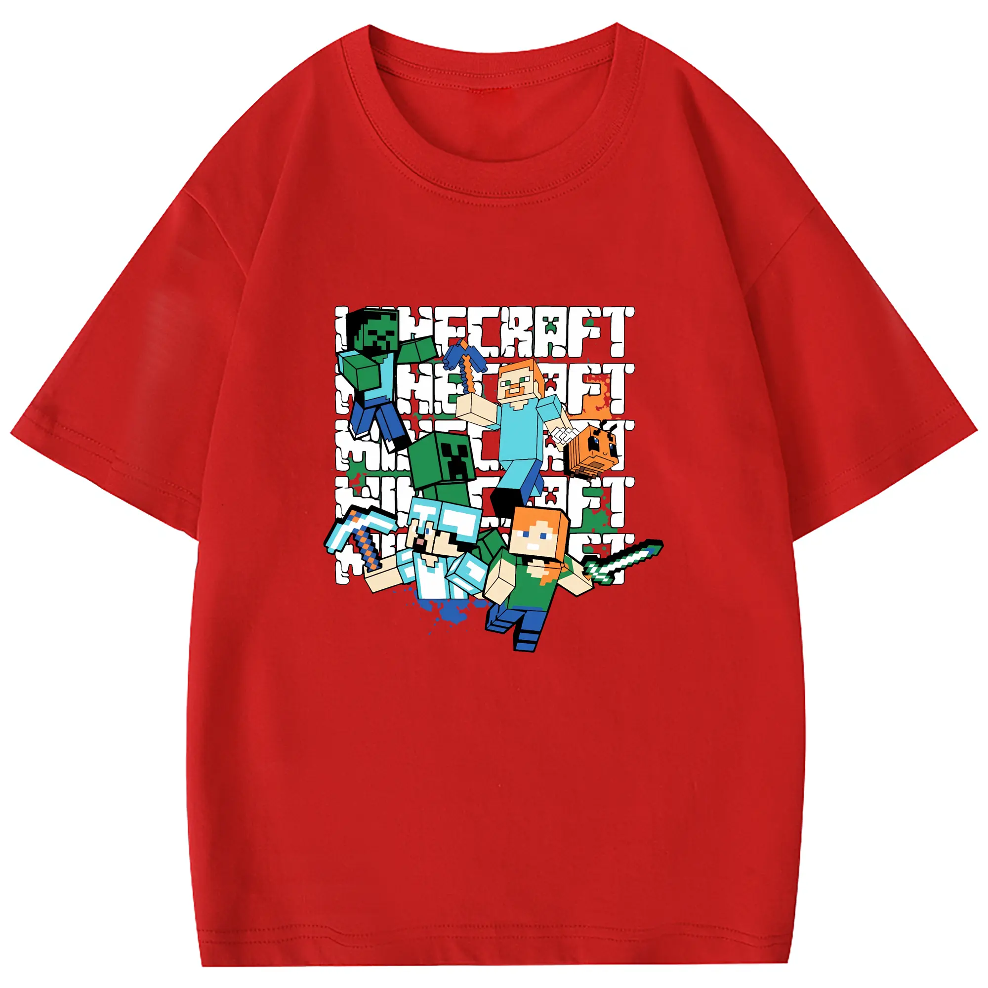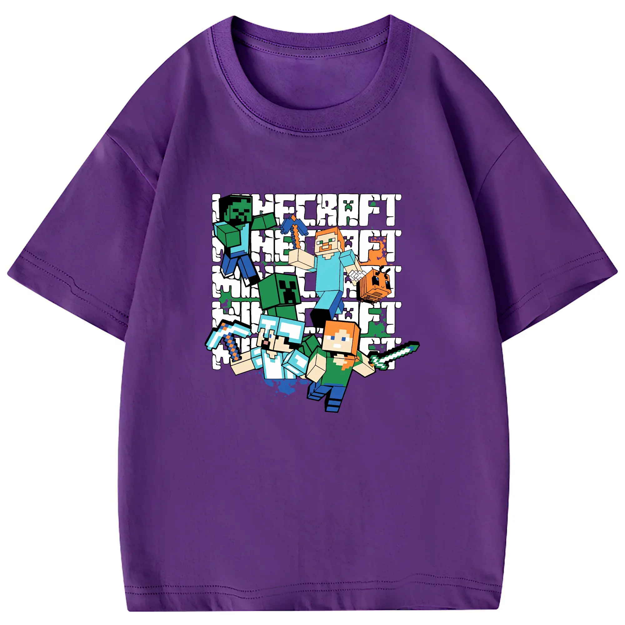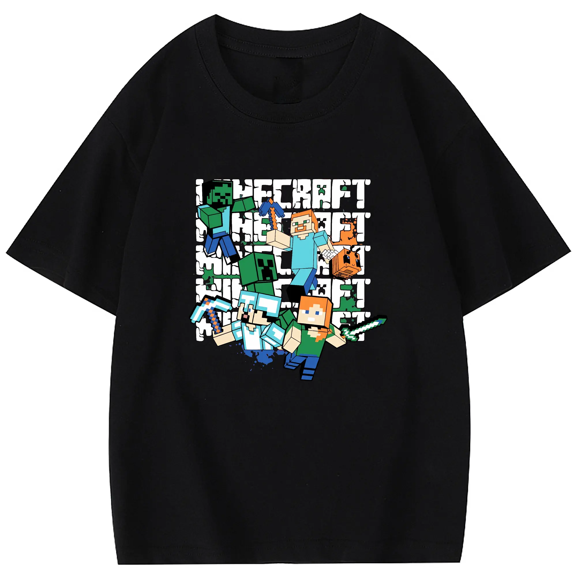 マイクラ グッズ マイクラ - 綿100% 半袖Tシャツ ・ フロントプリント ・ 快適 通気性 ・ 日常使い 散歩 スポーツ用