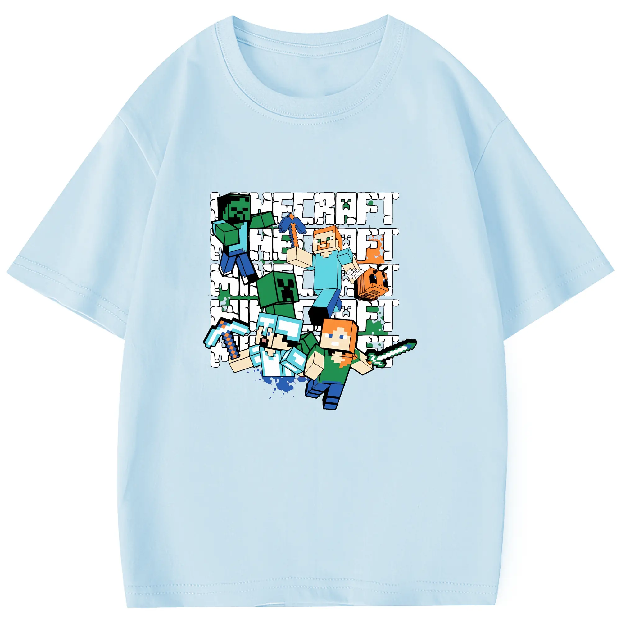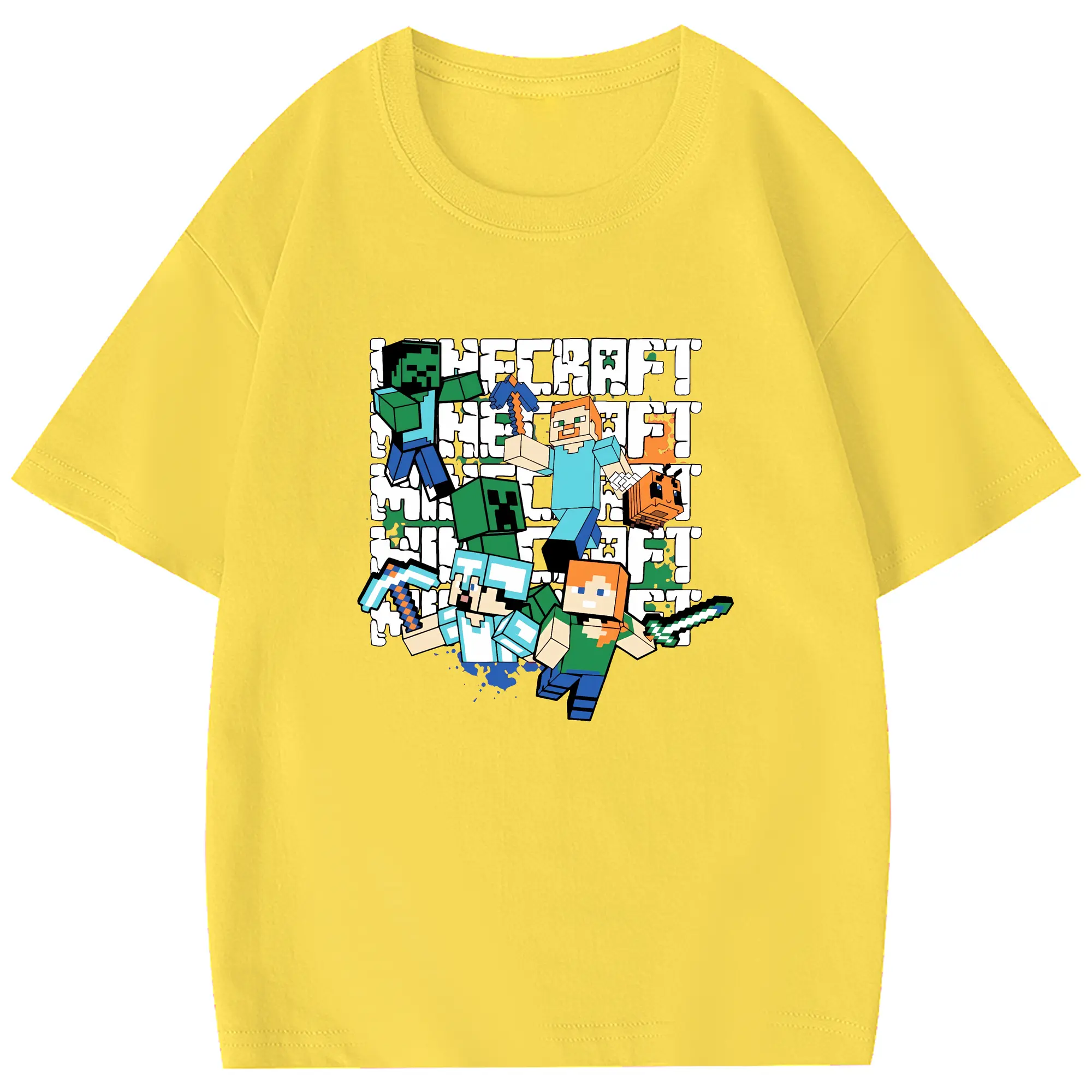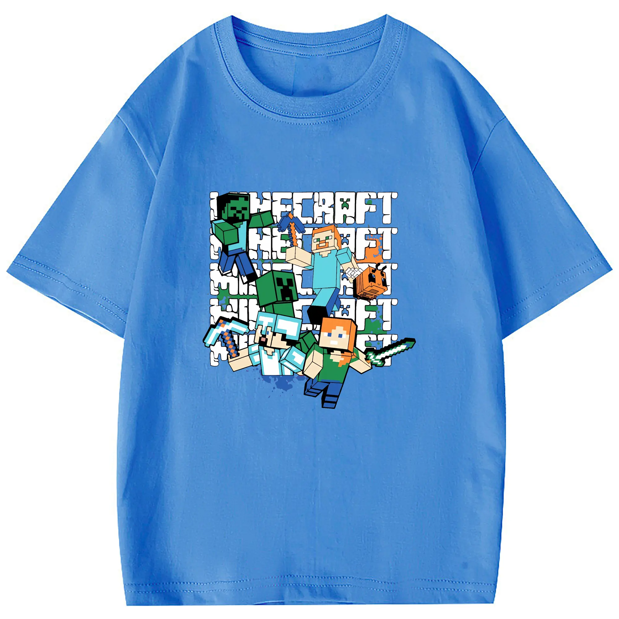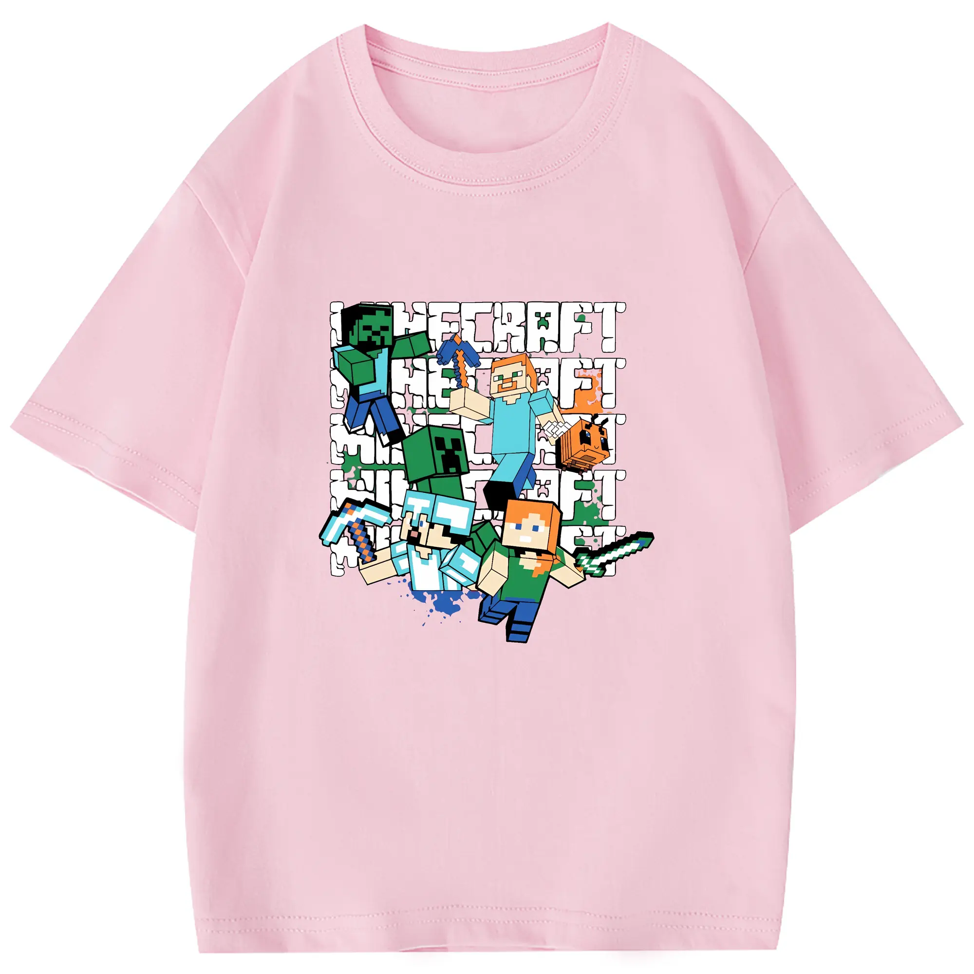 マイクラ グッズ マイクラ - 綿100% 半袖Tシャツ ・ フロントプリント ・ 快適 通気性 ・ 日常使い 散歩 スポーツ用