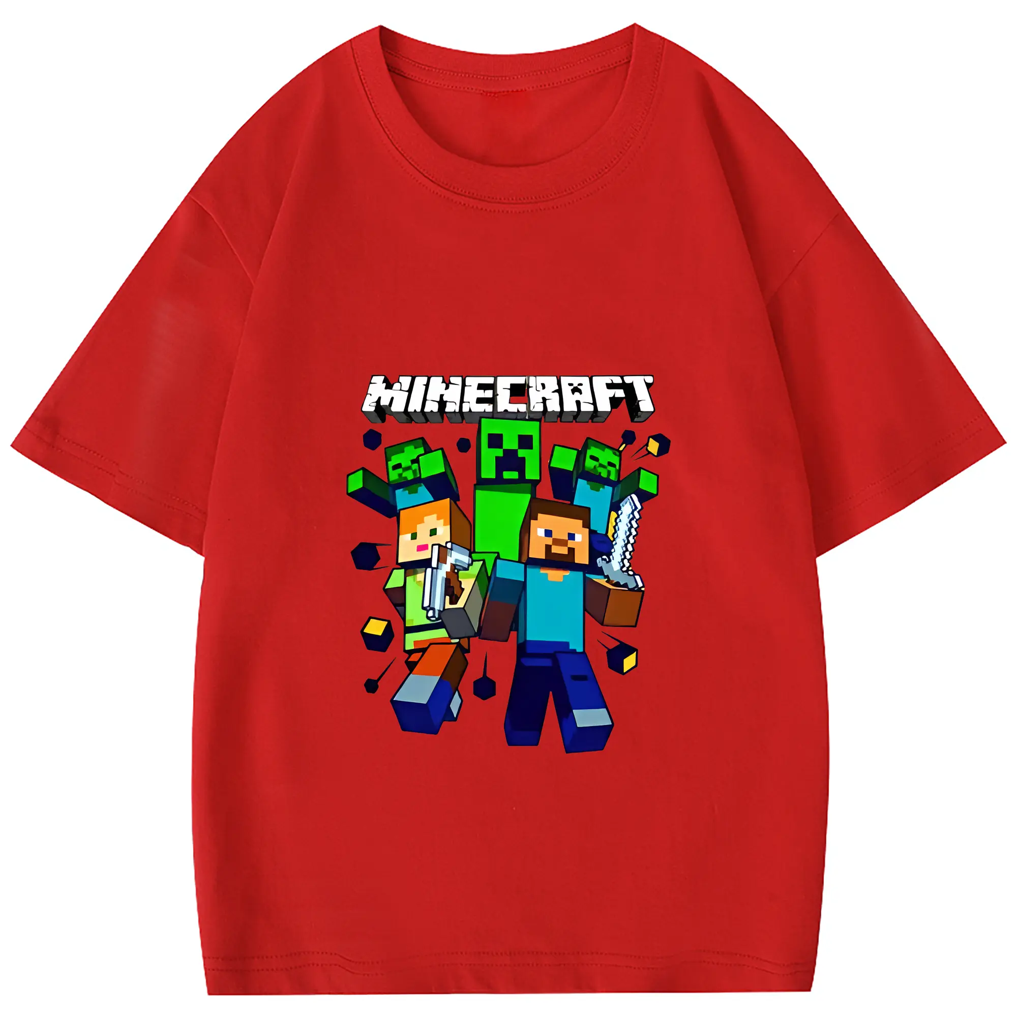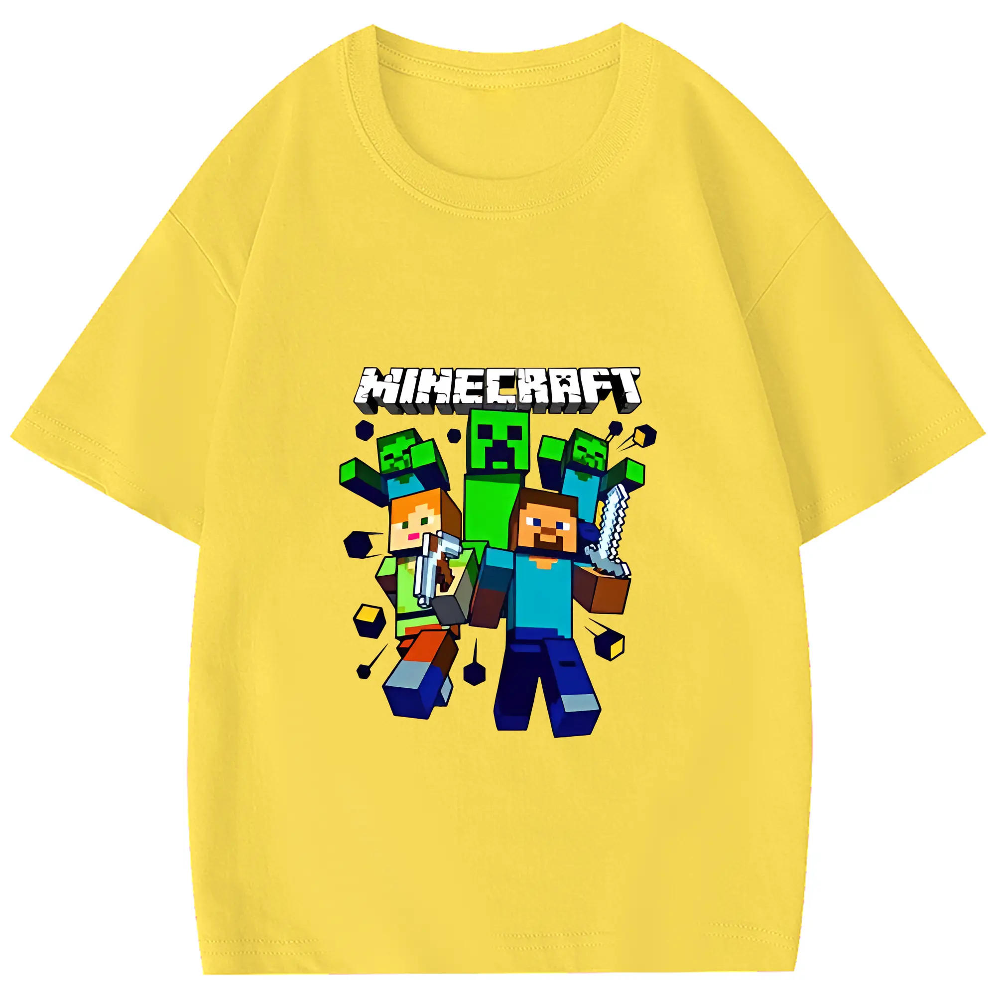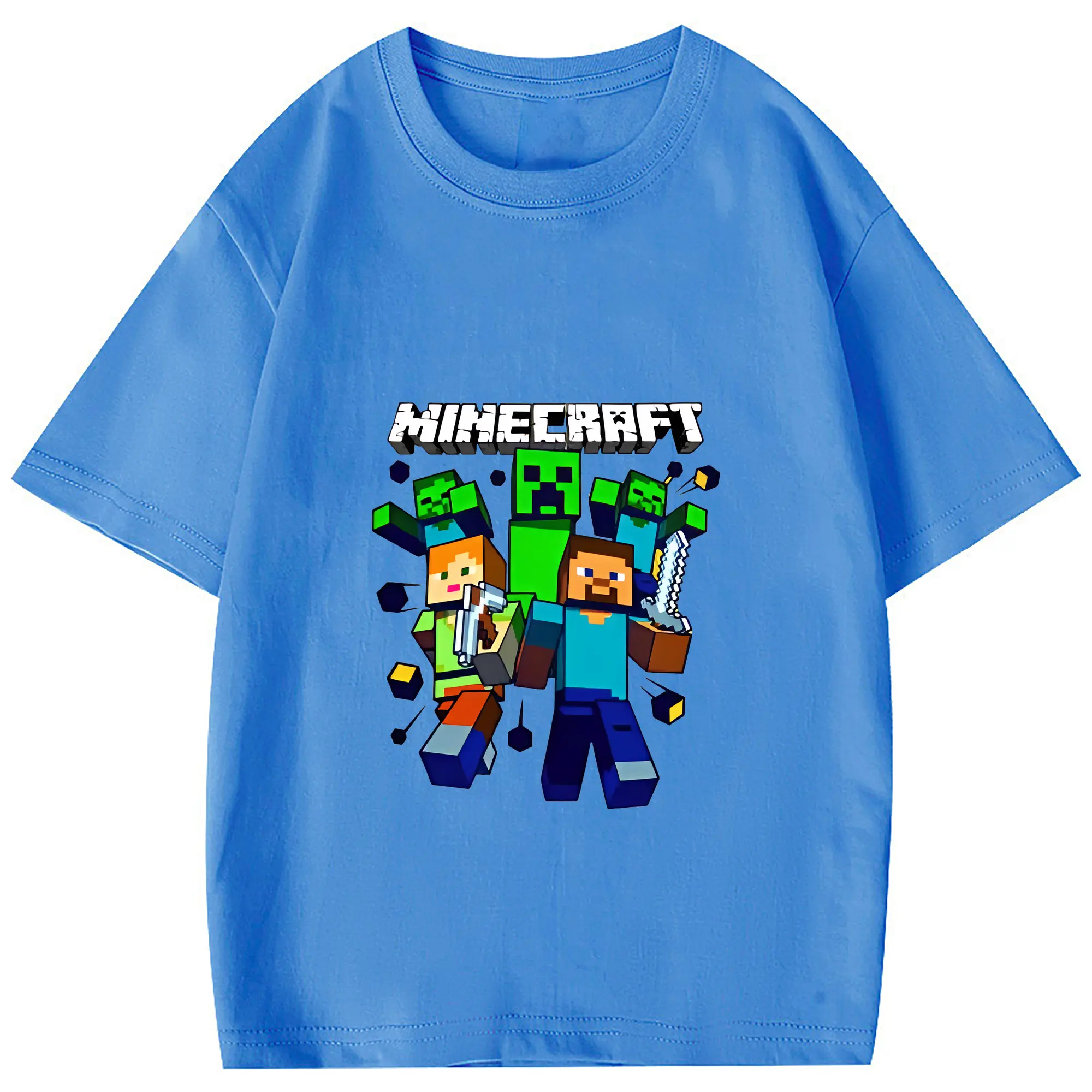 マイクラ グッズ マイクラ - 綿100% 半袖Tシャツ ・ フロントプリント ・ 快適 通気性 ・ 日常使い 散歩 スポーツ用